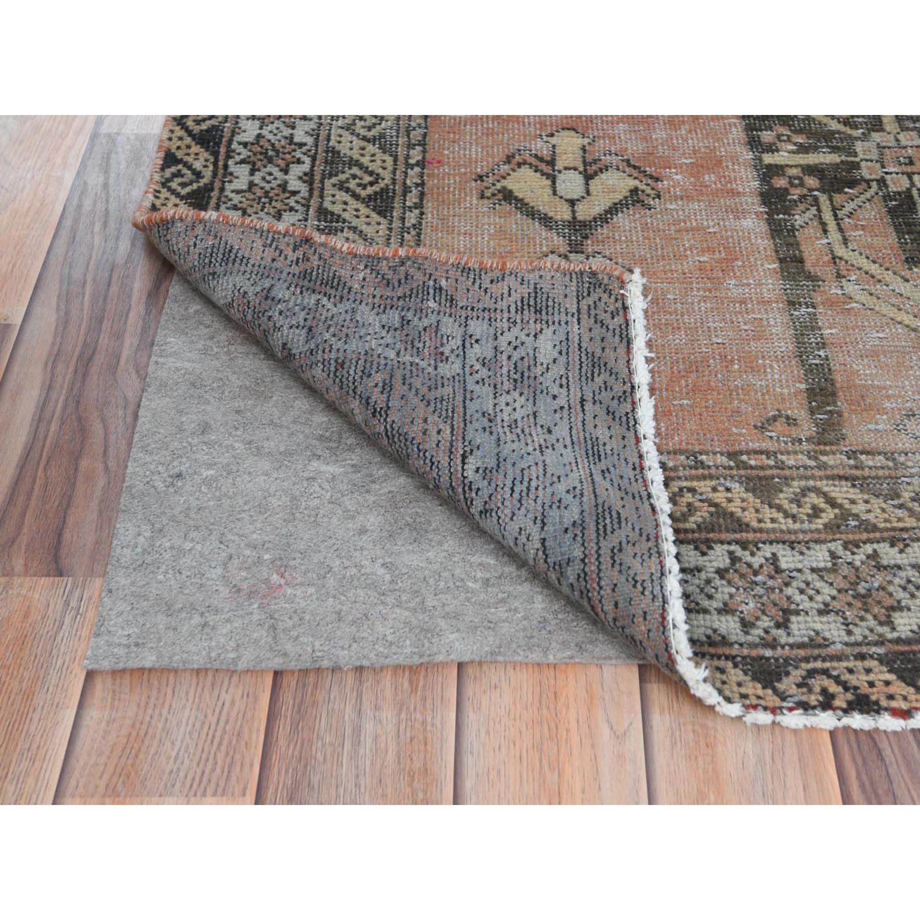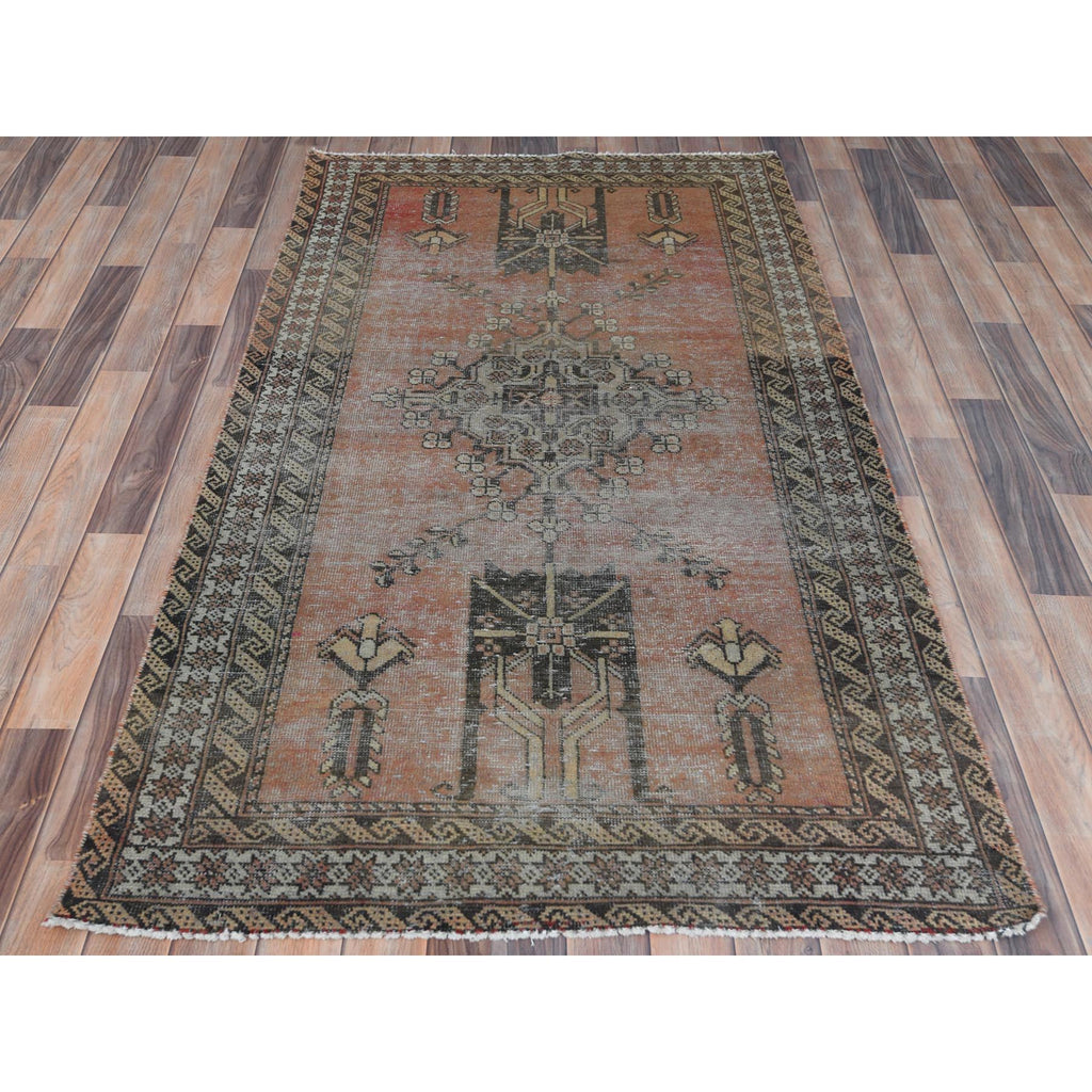 3'7"x6'6" Brick Red, Worn Wool Hand Knotted, Vintage Persian Baluch Sheared Low Distressed Look, Oriental Rug FWR486930