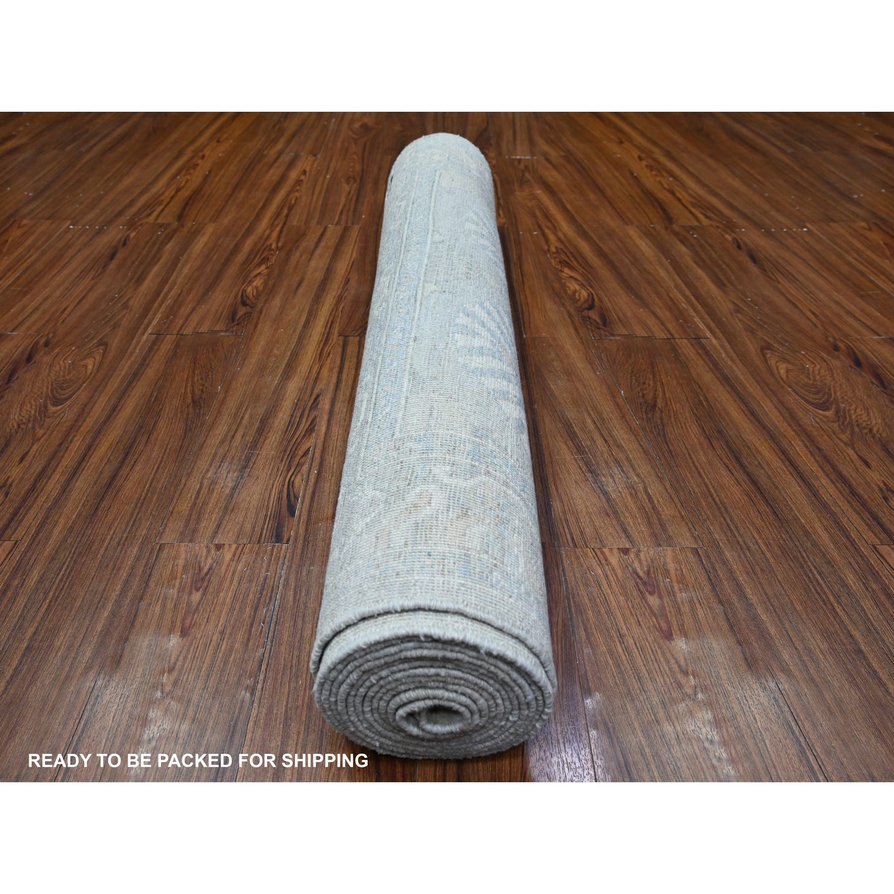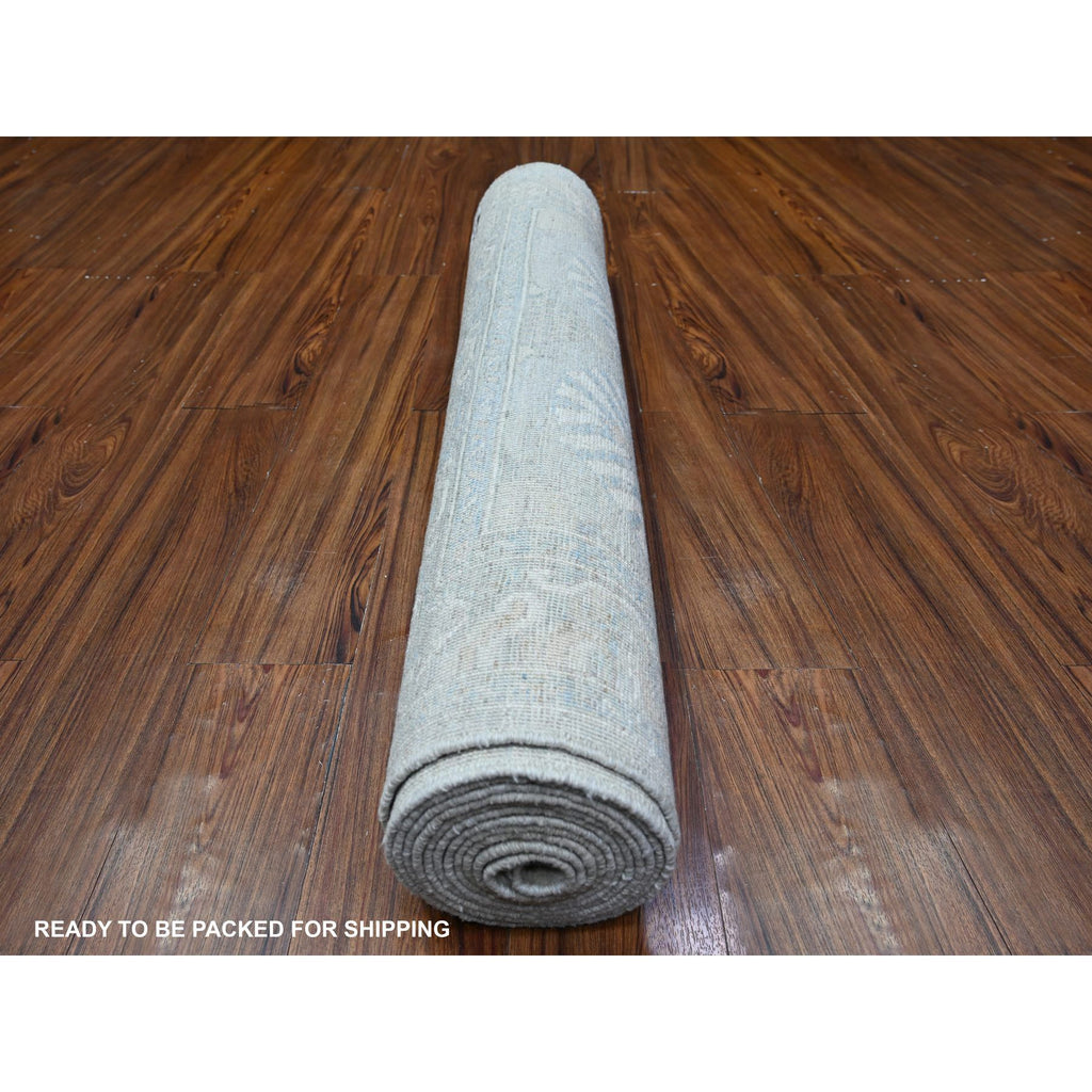 3'8"x15' Silver Gray, White Wash Peshawar, Organic Wool, Hand Knotted, Vegetables Dyes, Xl Runner Oriental Rug FWR530514