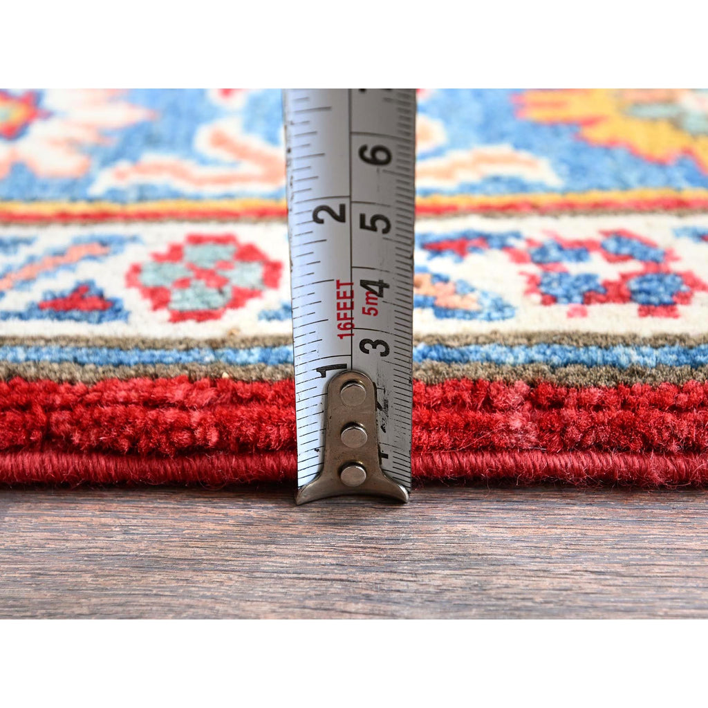 3'8"x4'10" Crimson Red, Kazak With All Over Tribal Motifs, Hand Knotted, Vegetable Dyes, Denser Weave, Pure Wool, Oriental Rug FWR2046
