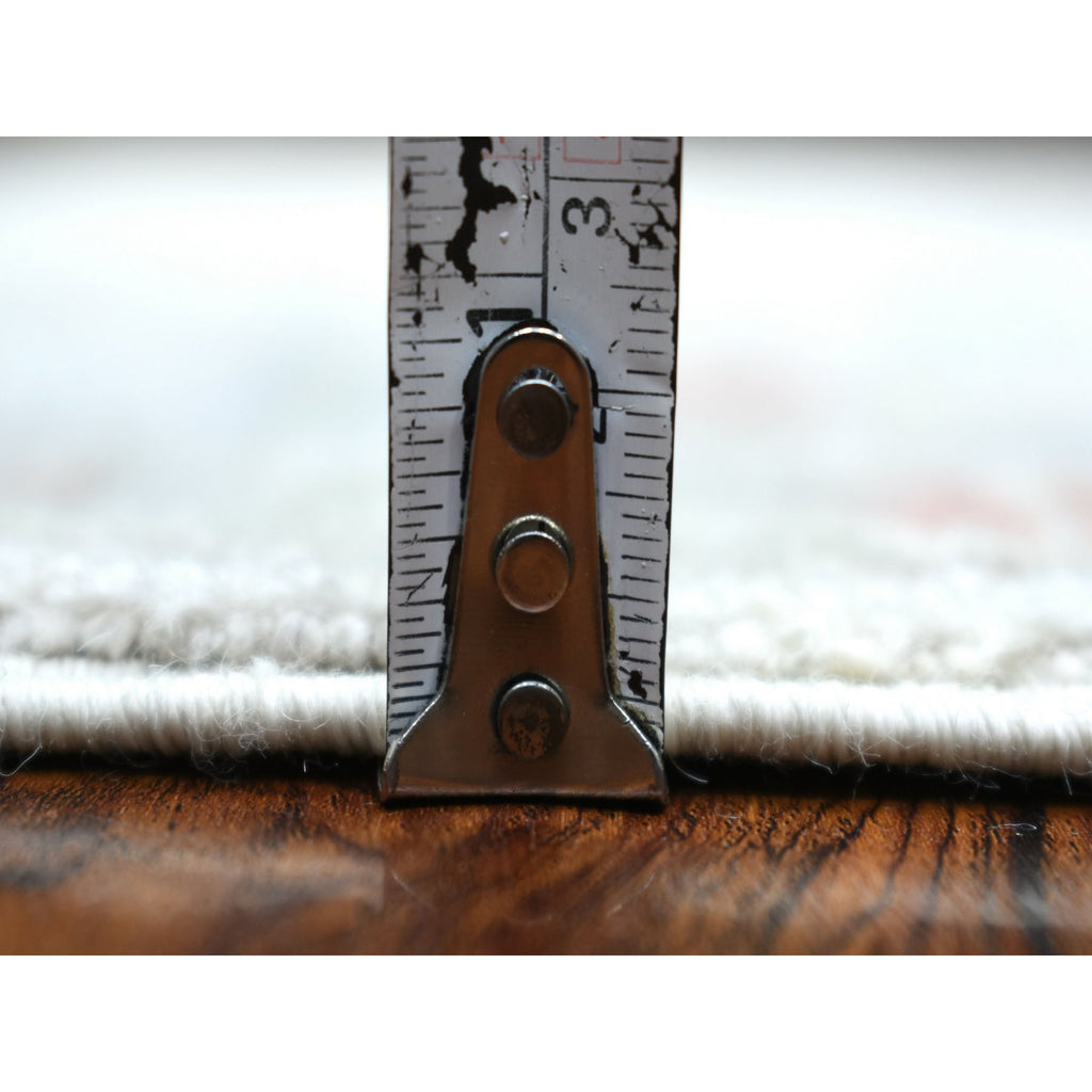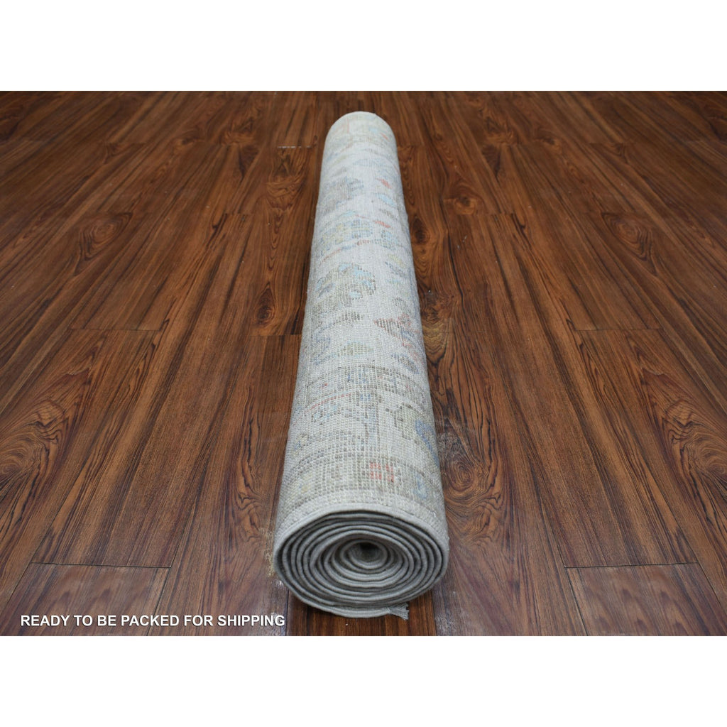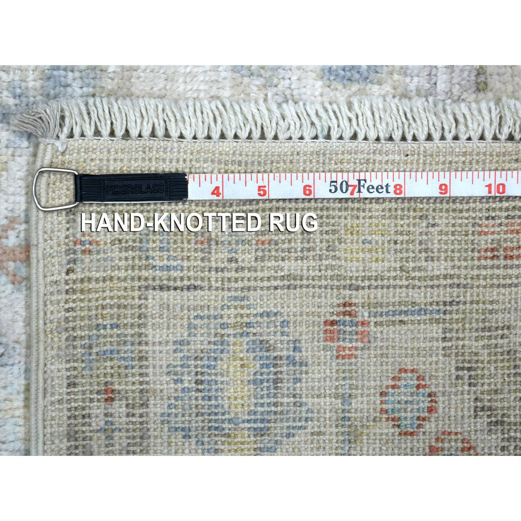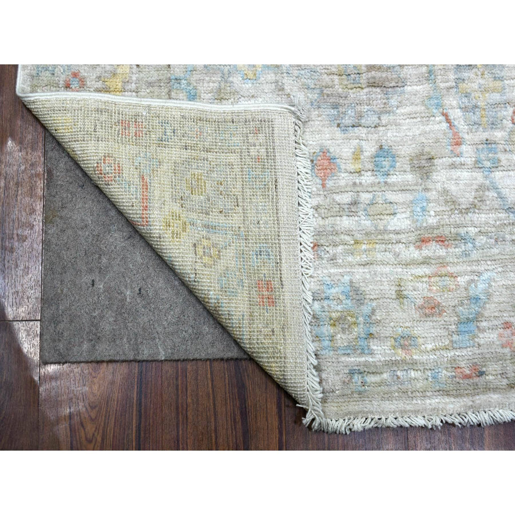 3'9"x11'2" Gray Hand Knotted, Afghan Angora Oushak With Floral Pattern, Soft And Velvety Wool Wide Runner Oriental Rug FWR426966