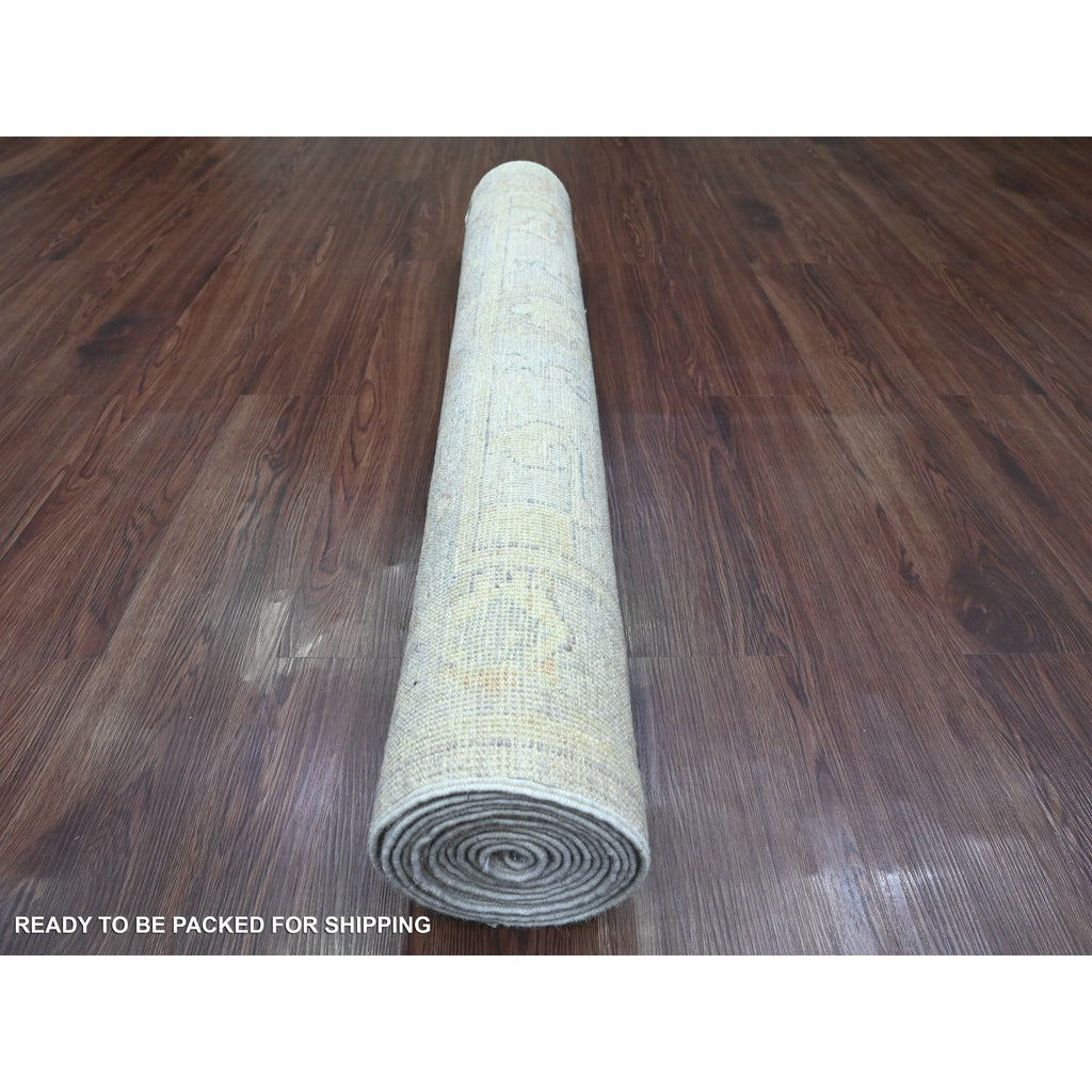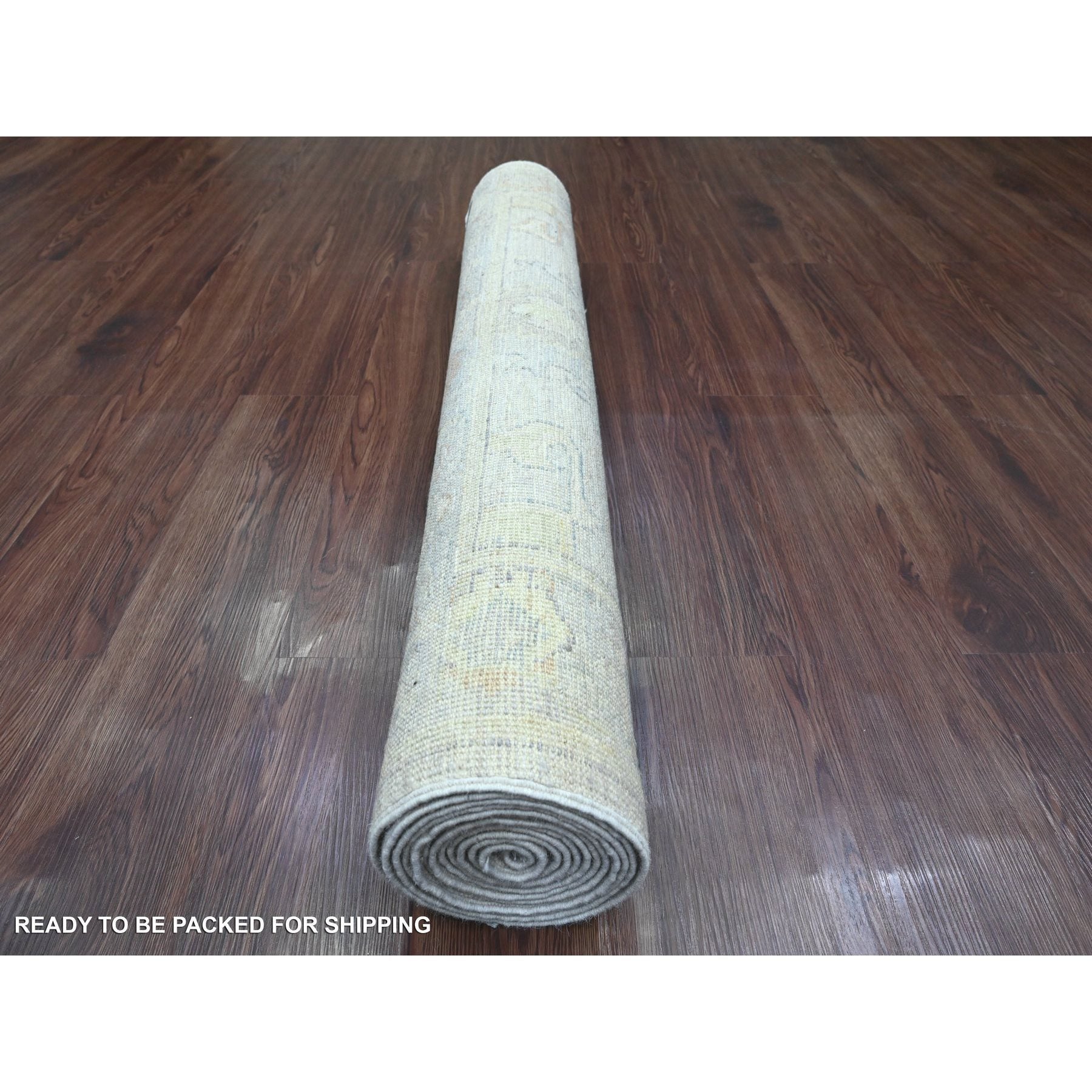 3'9"x12' Alabaster White, Afghan Angora Oushak With Soft Colors Leaf Design, Hand Knotted, Vegetable Dyes, Pure Wool, Runner, Oriental Rug FWR122970