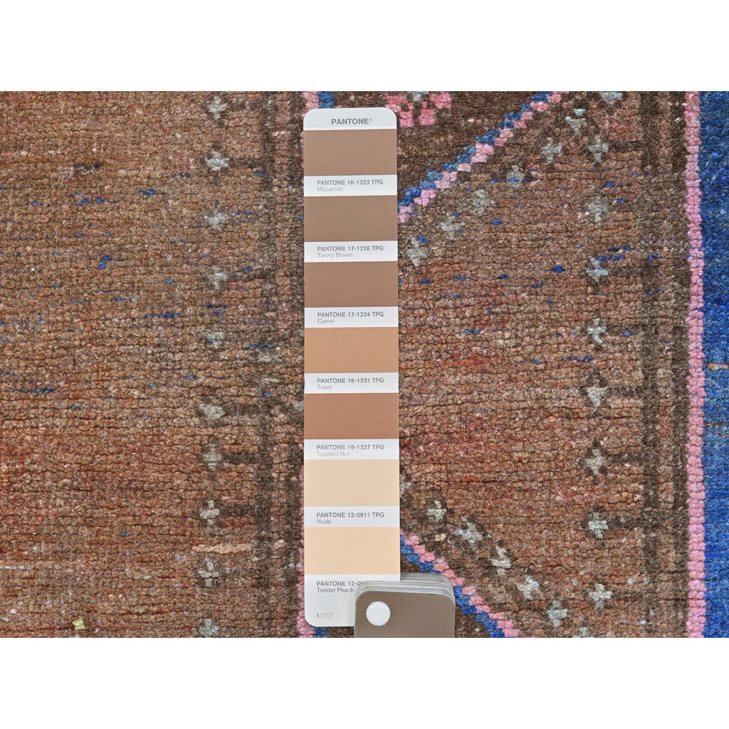 3'9"x13' Honey Brown, Bohemian Vintage Persian Mazlaghan With Unique Design, Distinct Abrash, Cropped Thin, Pure Wool Hand Knotted, Clean Wide Runner Oriental Rug FWR491220