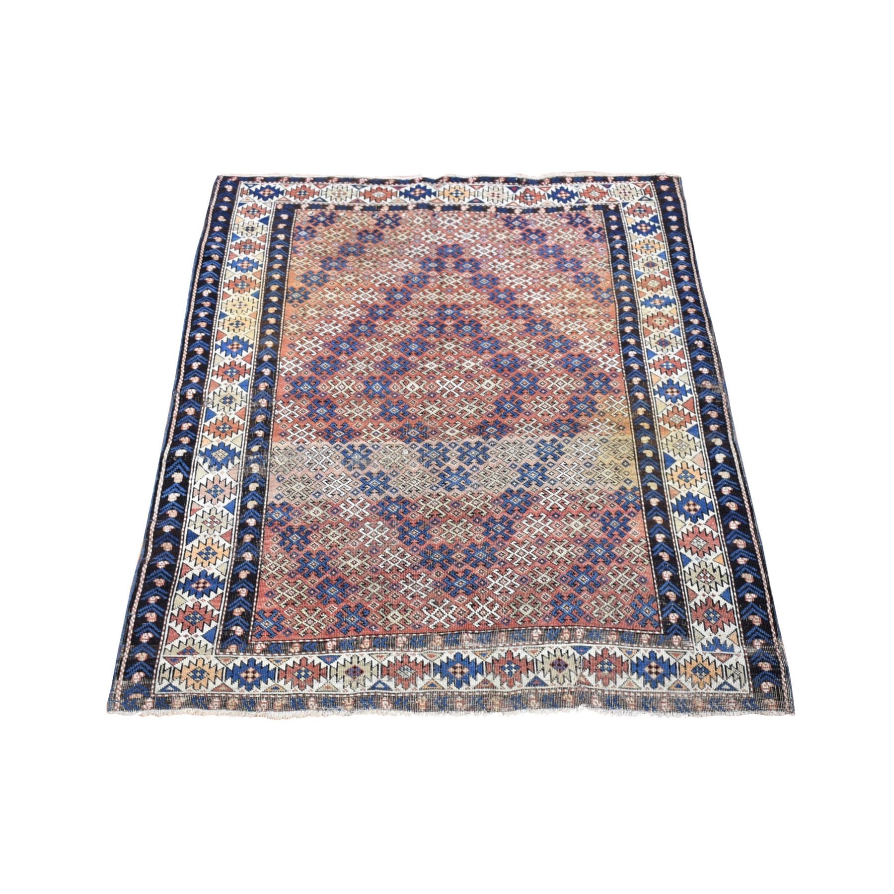 3'9"x4'8" Honey Brown, Antique Caucasian Kazak Geometric Triangle Design, Pure Wool Hand Knotted, Good Condition Even Wear Clean Sides And Ends Professionally Secured, Oriental Rug FWR480828