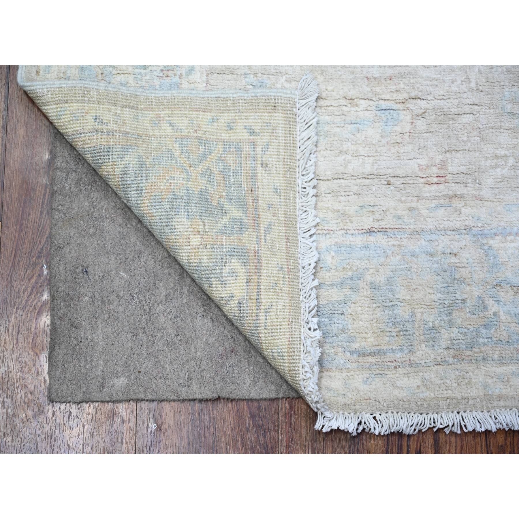 3'9"x6' Gainsboro And Glaucous Gray, Shiny Wool, Vegetable Dyes, Hand Knotted, White Wash Peshawar With Faded Design, Oriental Rug FWR446778