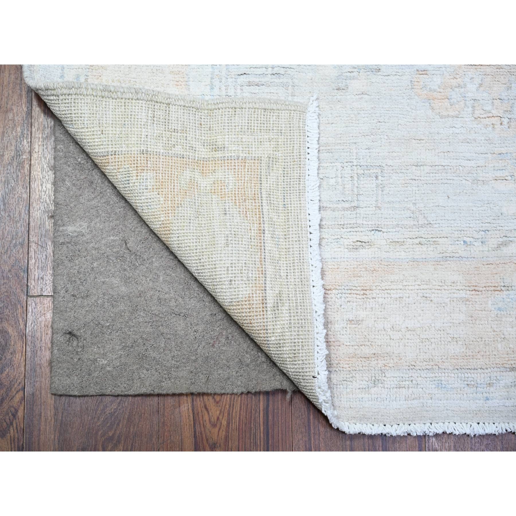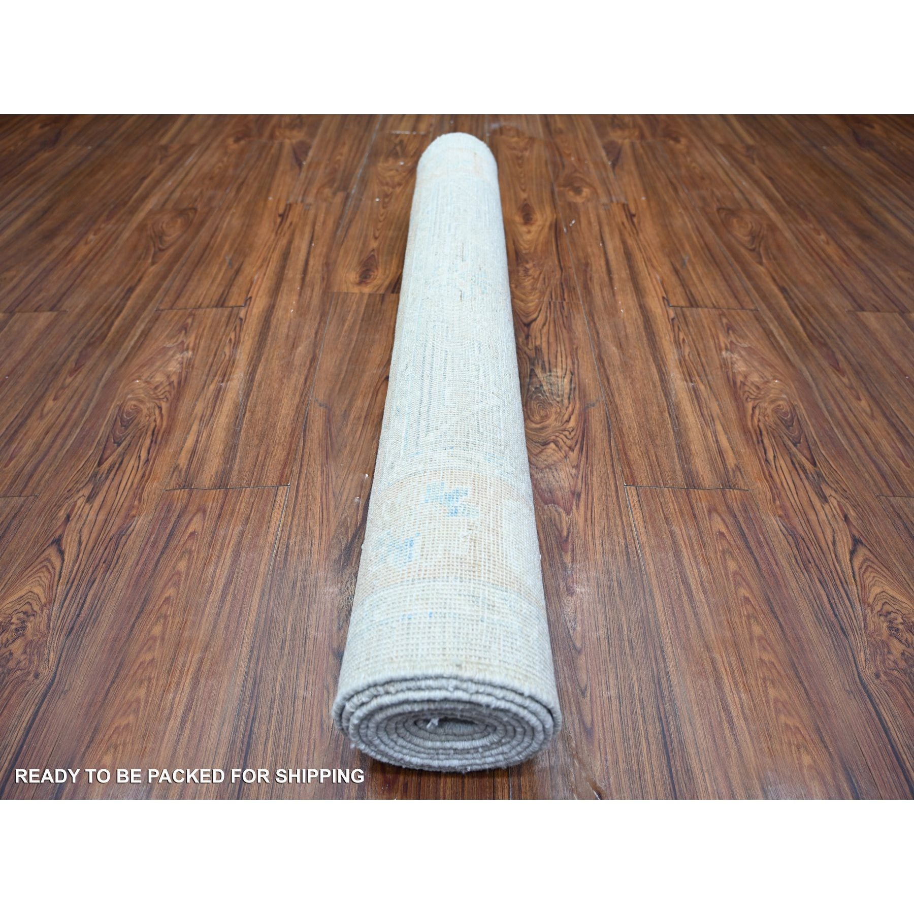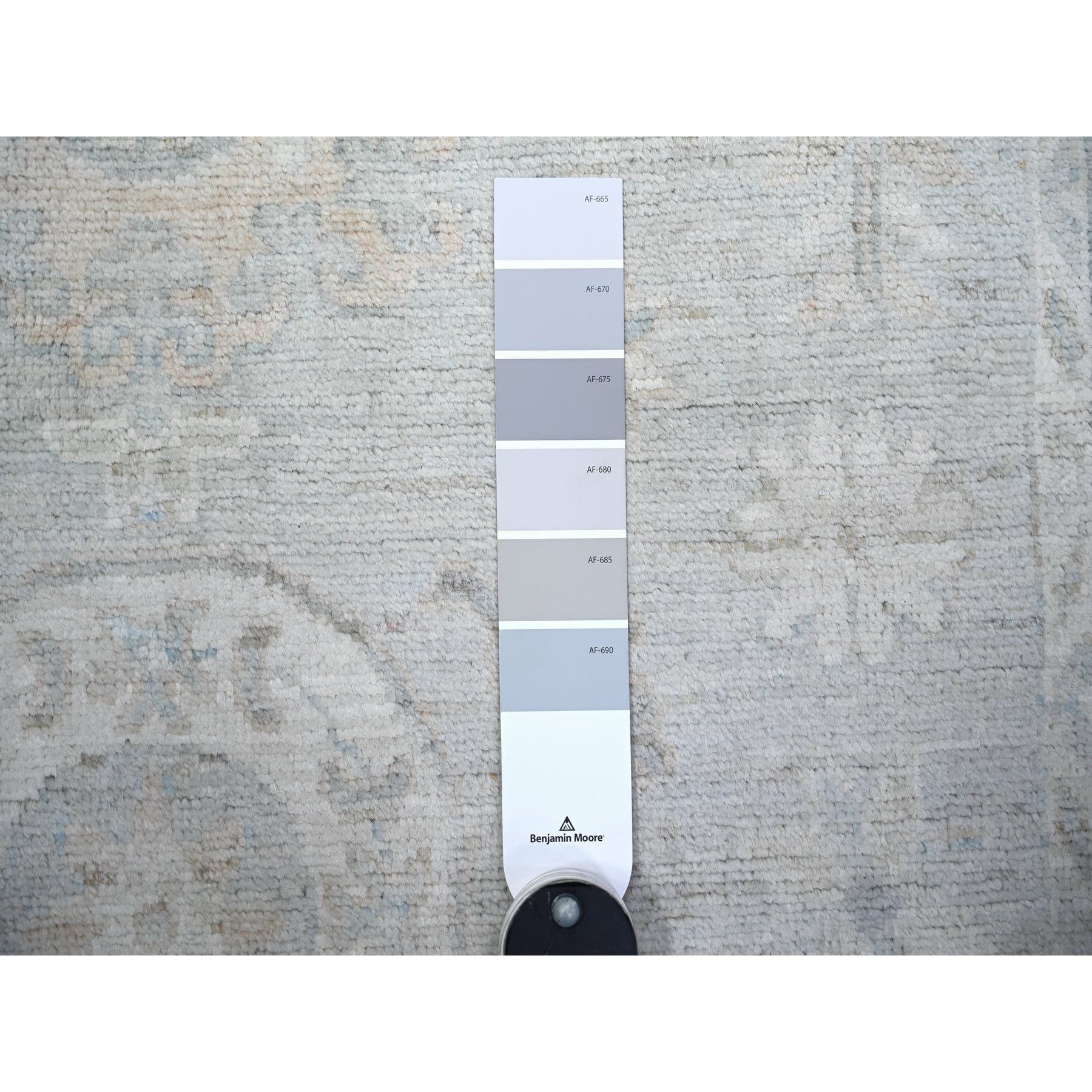 3'9"x9'7" Cadet Gray, Vegetable Dyes, White Wash Peshawar With Faded Colors, High Grade Wool, Hand Knotted, Wide Runner Oriental Rug FWR447456