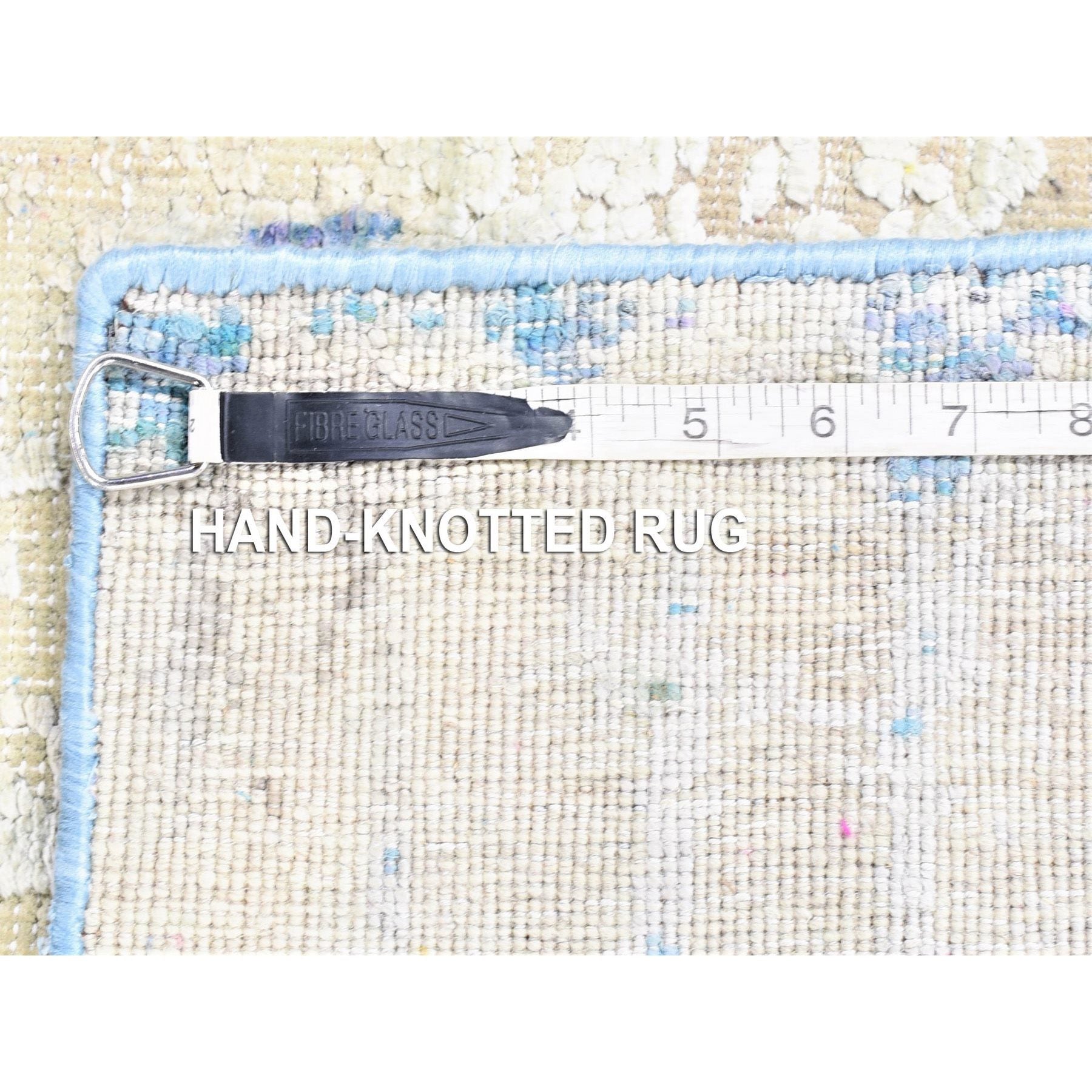 3'x10'1" Ivory, The Cardiac Design, Sari Silk With Textured Wool Hand Knotted, Wide Runner Oriental Rug FWR481506