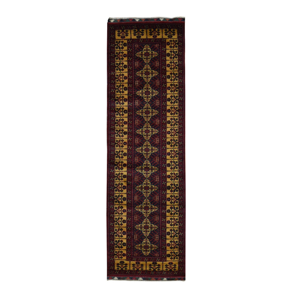 3'x10'2" Vermilion Red, Afghan Khamyab, Vegetable Dyes, Denser Weave, Shiny Wool, Hand Knotted, Runner Oriental Rug FWR525702
