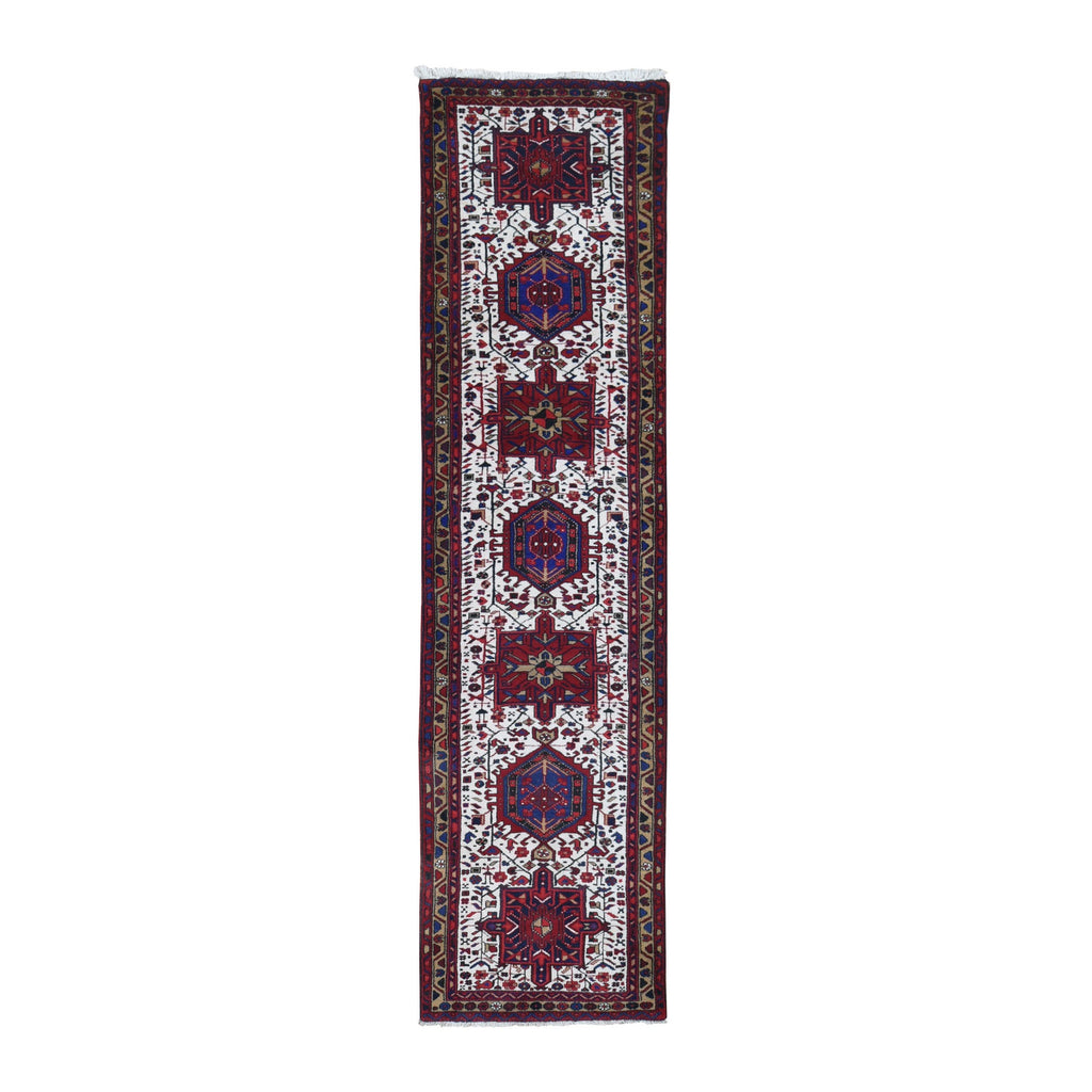 3'x11'4" Ivory Full Pile Tribal Weaving Vintage Persian Karajeh Excellent Condition Natural Wool Hand Knotted Runner Oriental Rug FWR480264