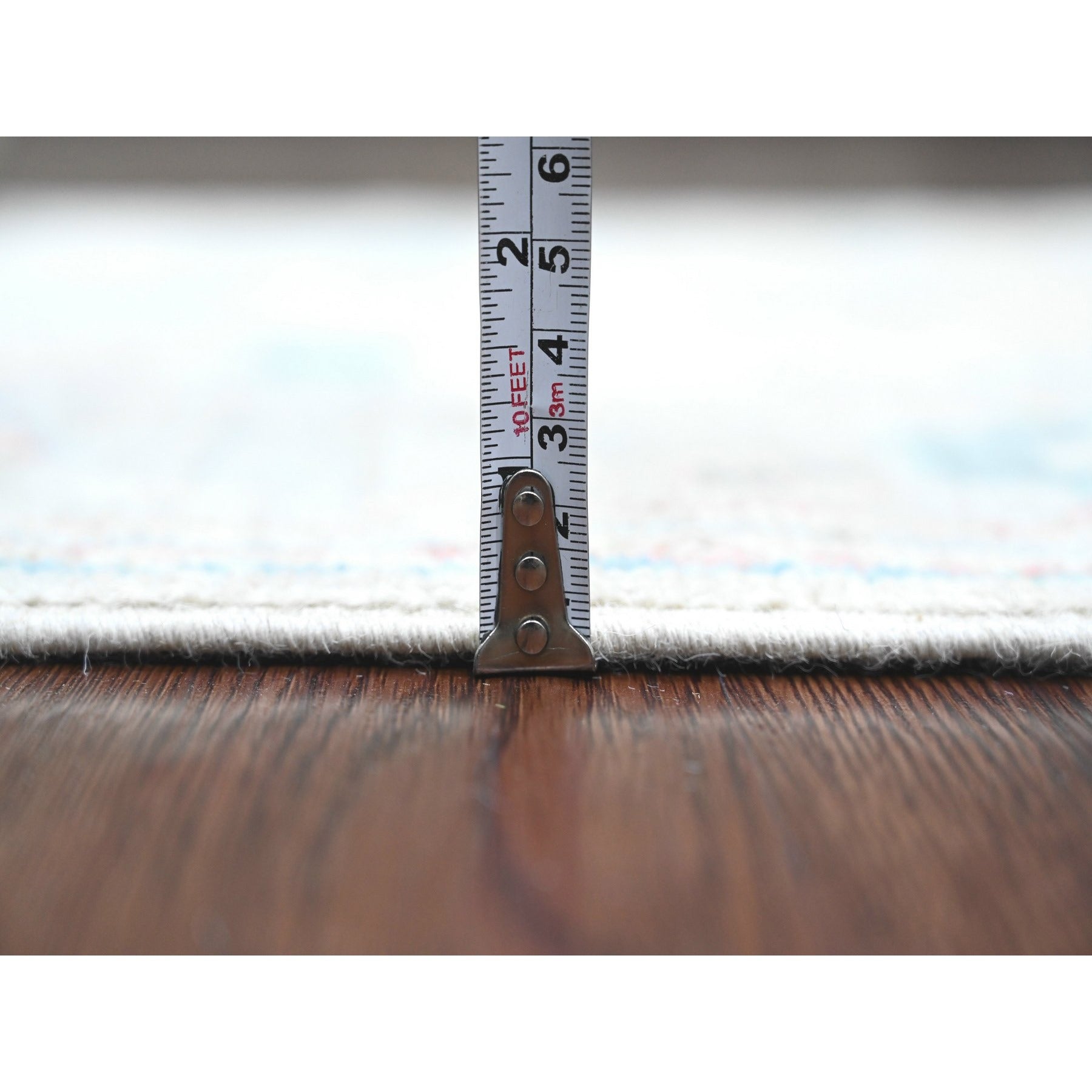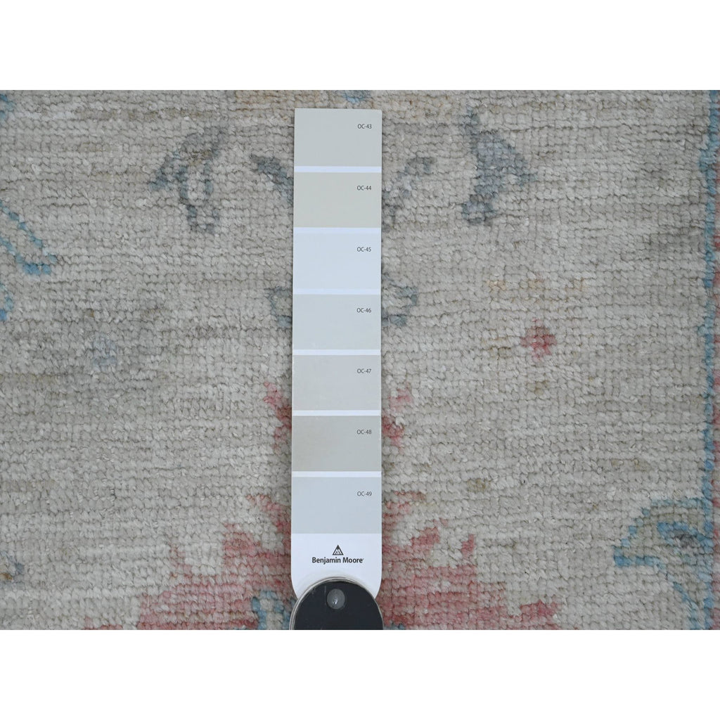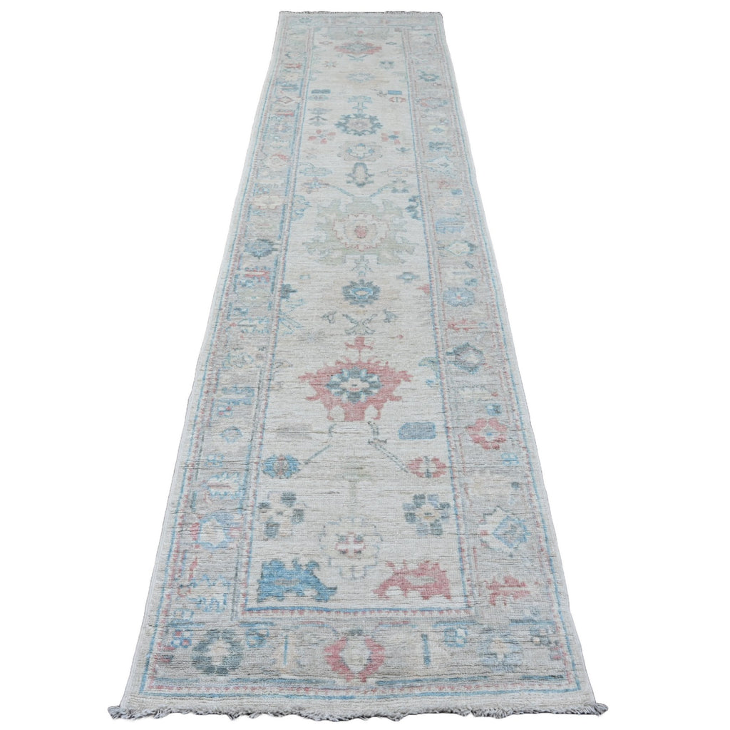 3'x11'8" Bone White, Afghan Angora Oushak With Floral Pattern, Hand Knotted, Veggie Dyes, Pure Wool, Runner, Oriental Rug FWR122436