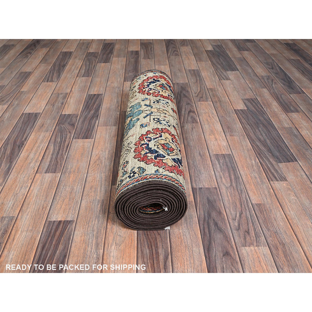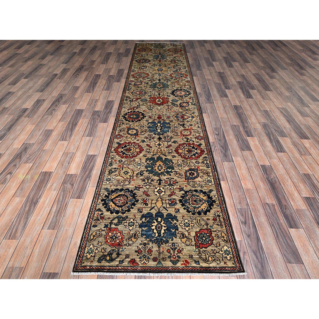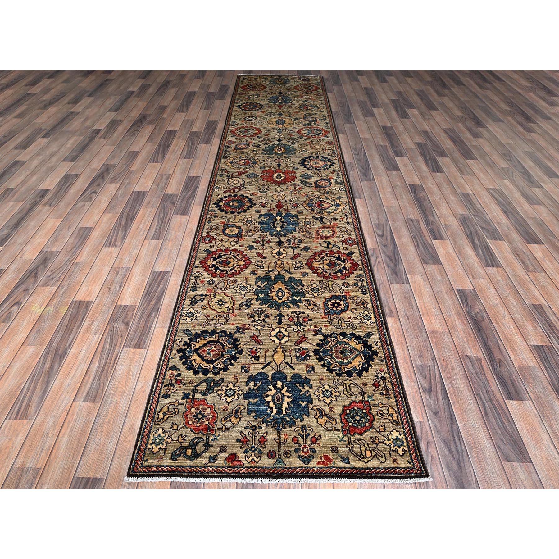 3'x13'10" Tan Brown, Northwest Persian All Over Design, Aryana Grade, Vegetable Dyes, Soft Pile, High Mountain Wool, Hand Knotted, Densely Woven, Runner, Oriental Rug Sh1122