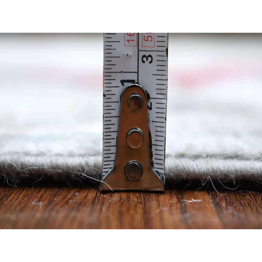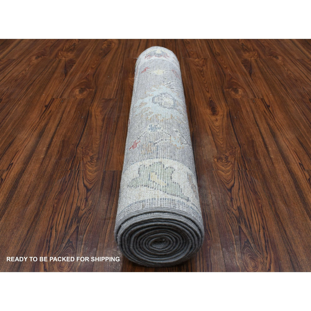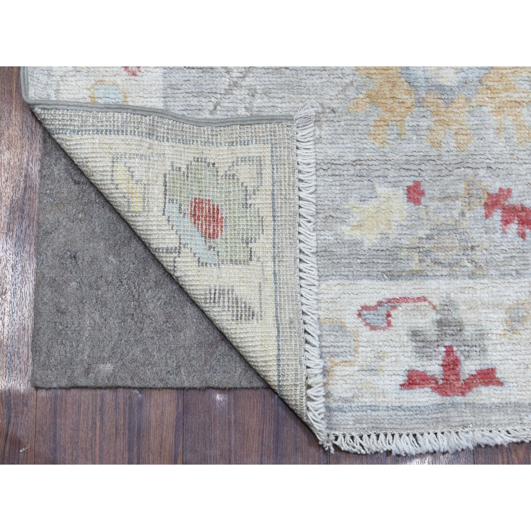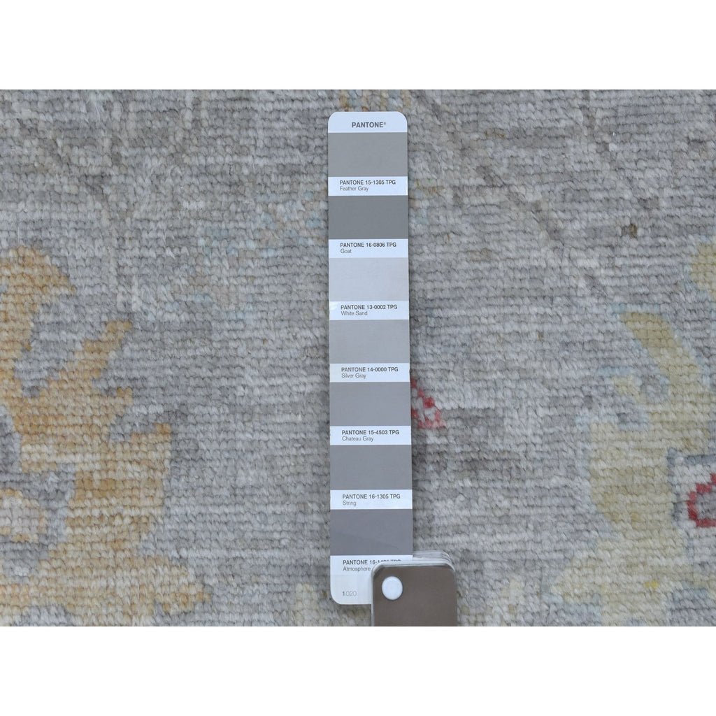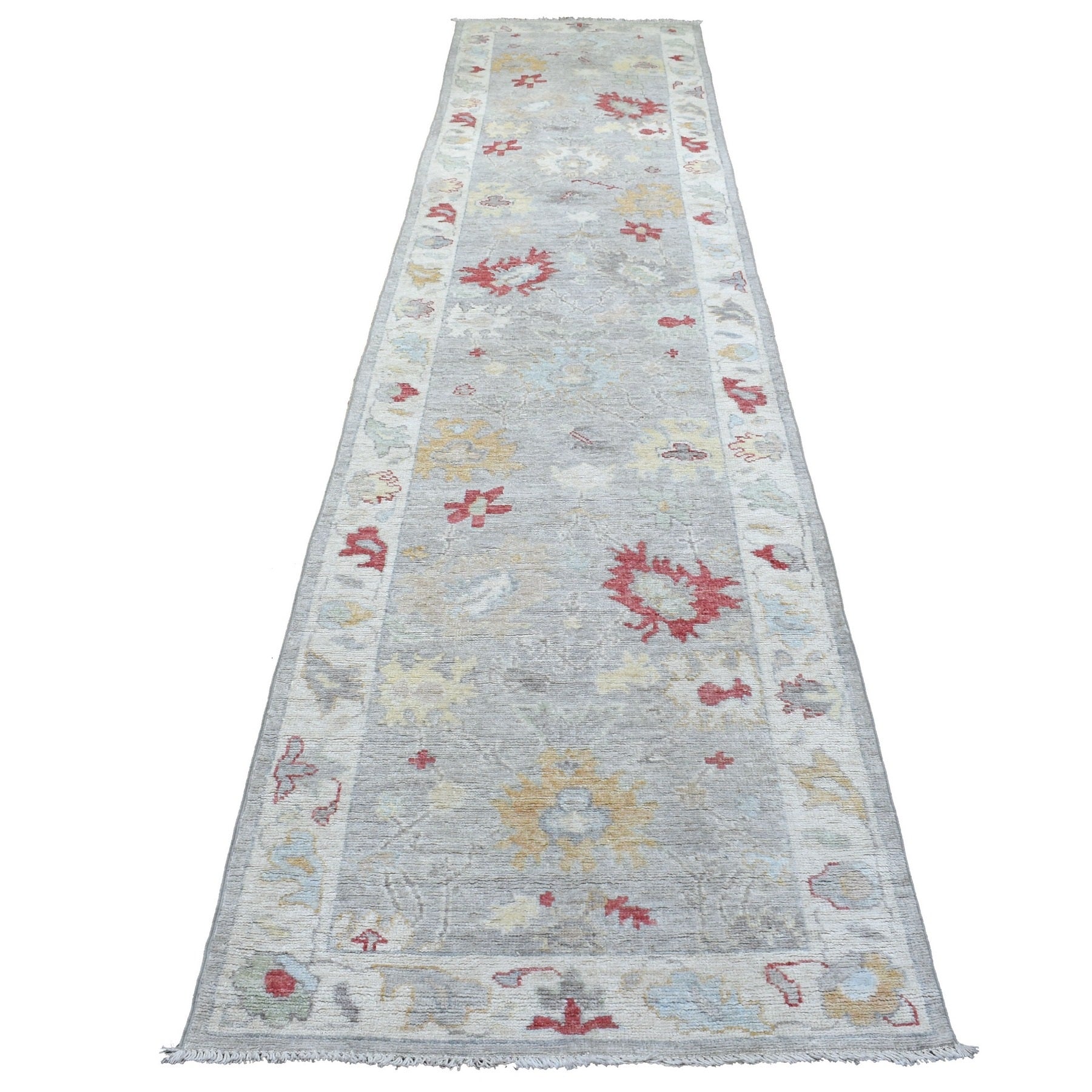 3'x13'5" Extra Soft Wool Gray Angora Oushak With Pop Of Red And Yellow Hand Knotted Oriental Wide Runner Rug FWR410376