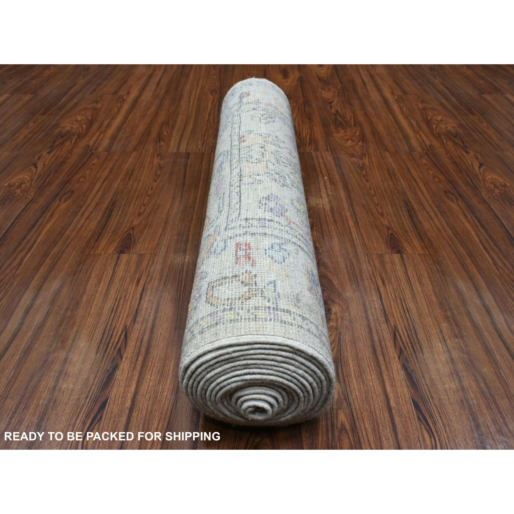 3'x15'10" Extra Soft Wool Hand Knotted Gray Angora Oushak With All Over Flower Design Oriental Xl Runner Rug FWR416274