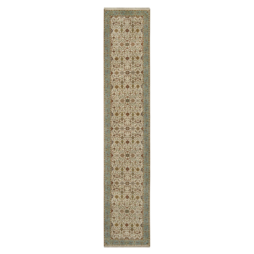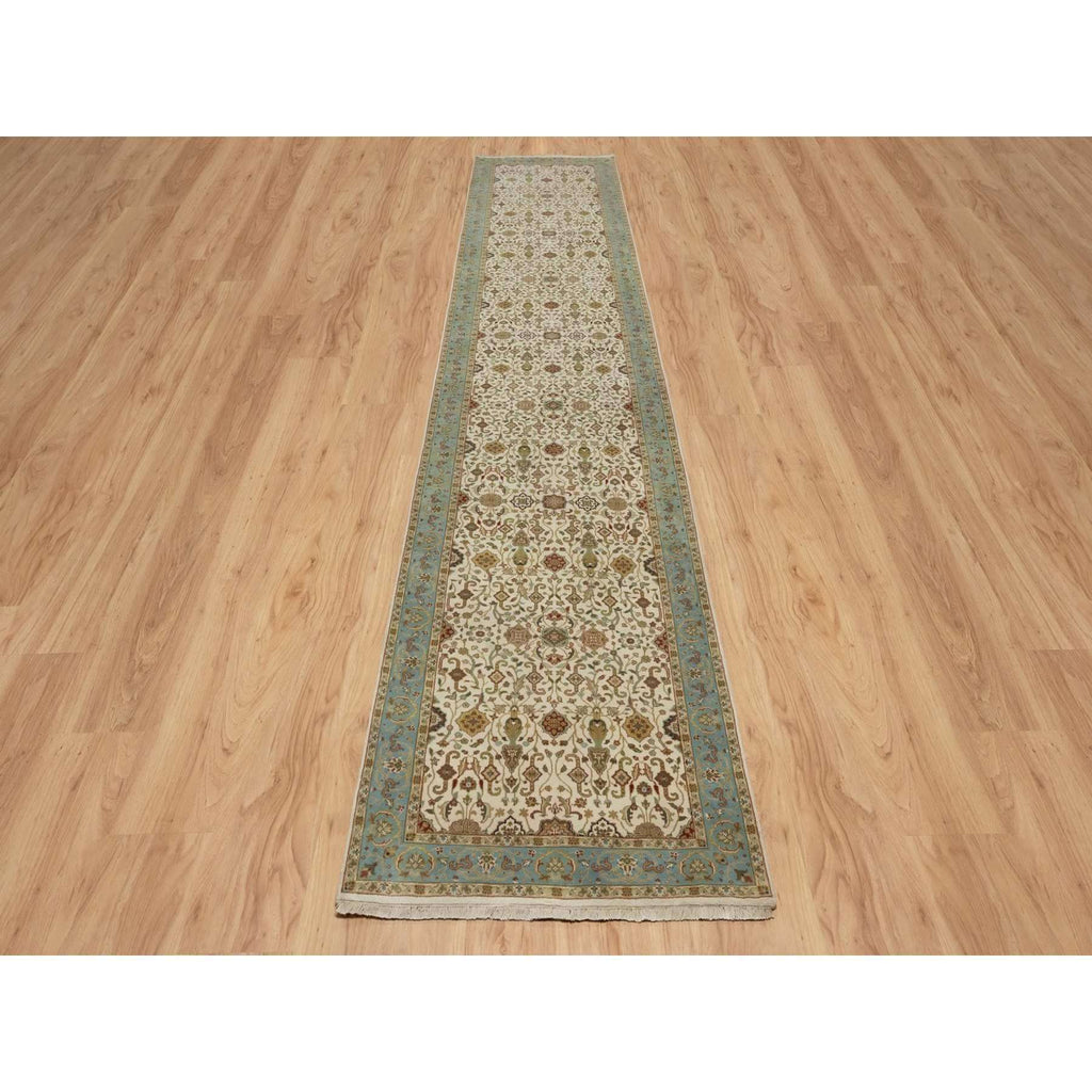 3'x15'6" Chiffon White, Kashan Design, 300 Kpsi, Hand Spun New Zealand Wool, Hand Knotted, Xl Runner, Oriental Rug FWR548844
