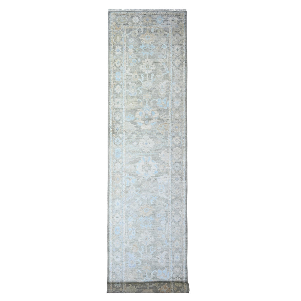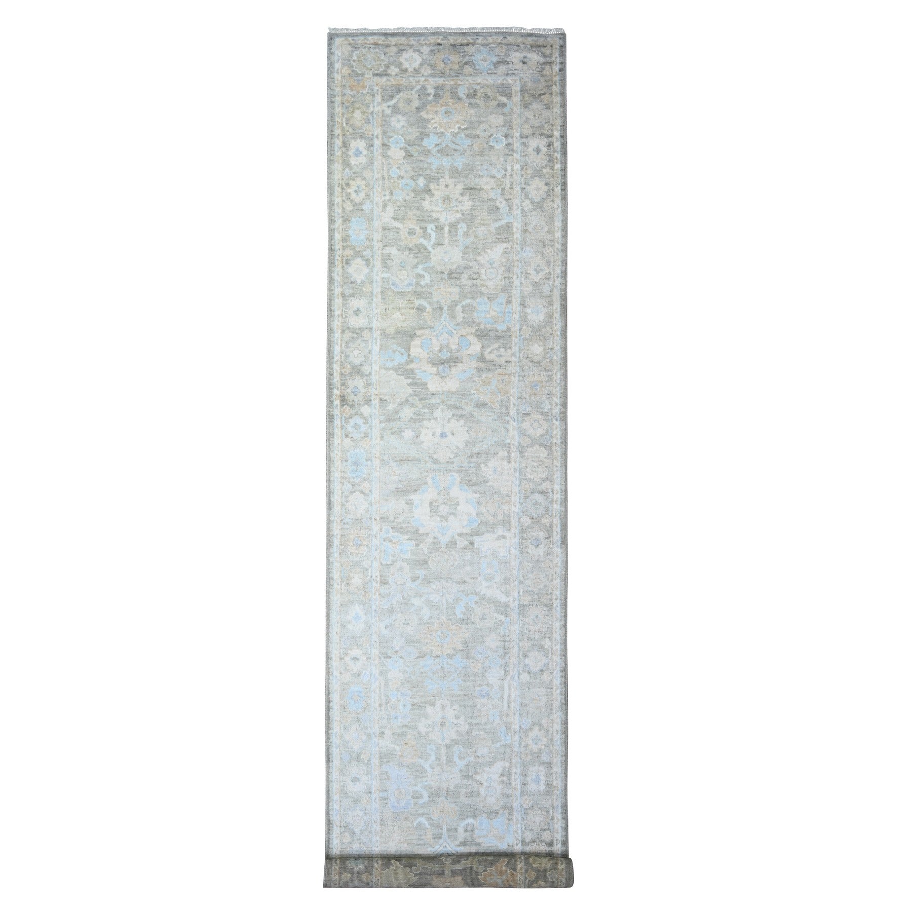 3'x15'9" Olive Gray, Hand Knotted Afghan Angora Oushak With All Over Motifs, Vegetable Dyes, Pure Wool, Xl Runner Oriental Rug FWR439800