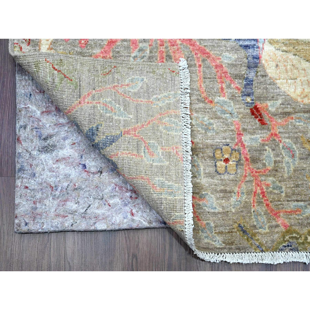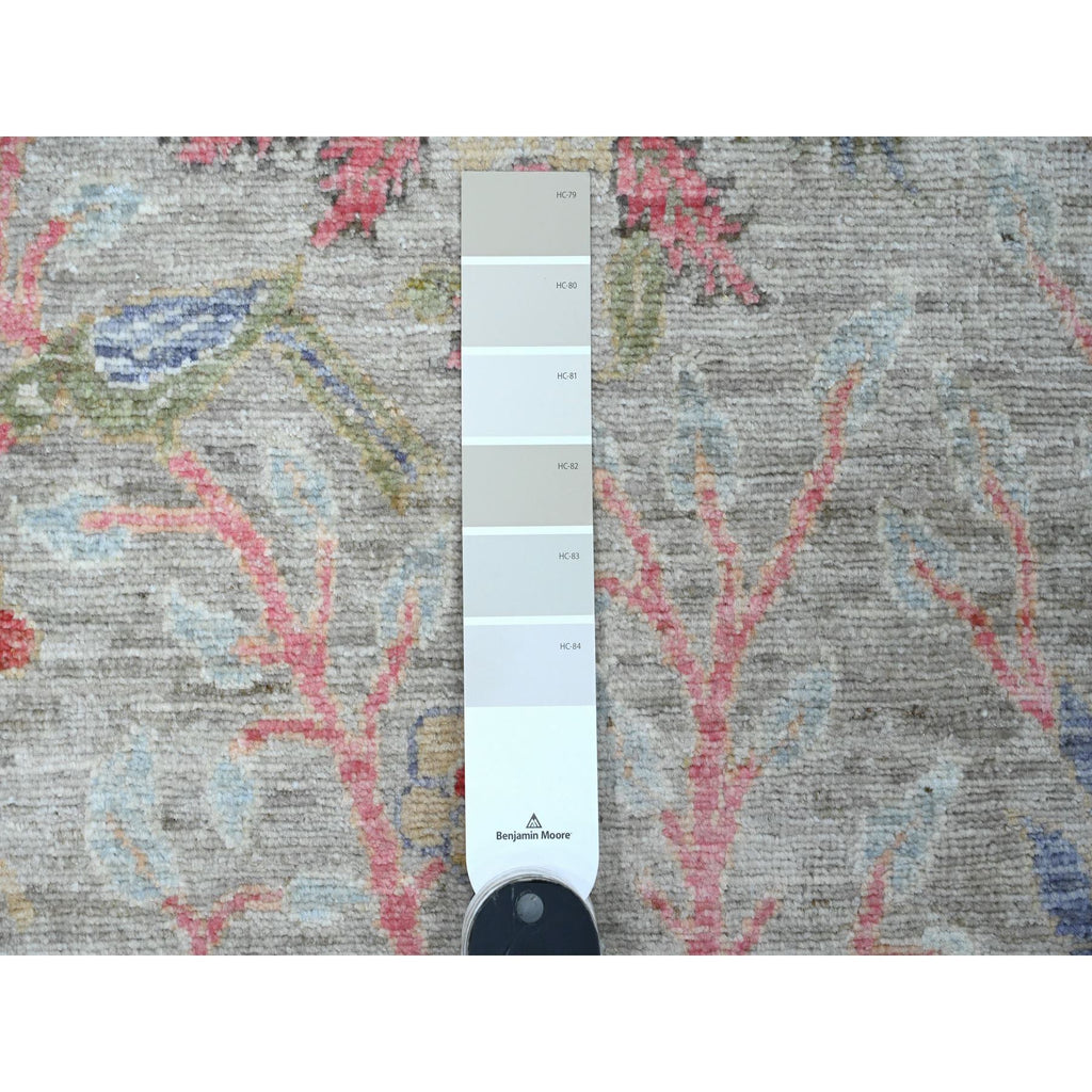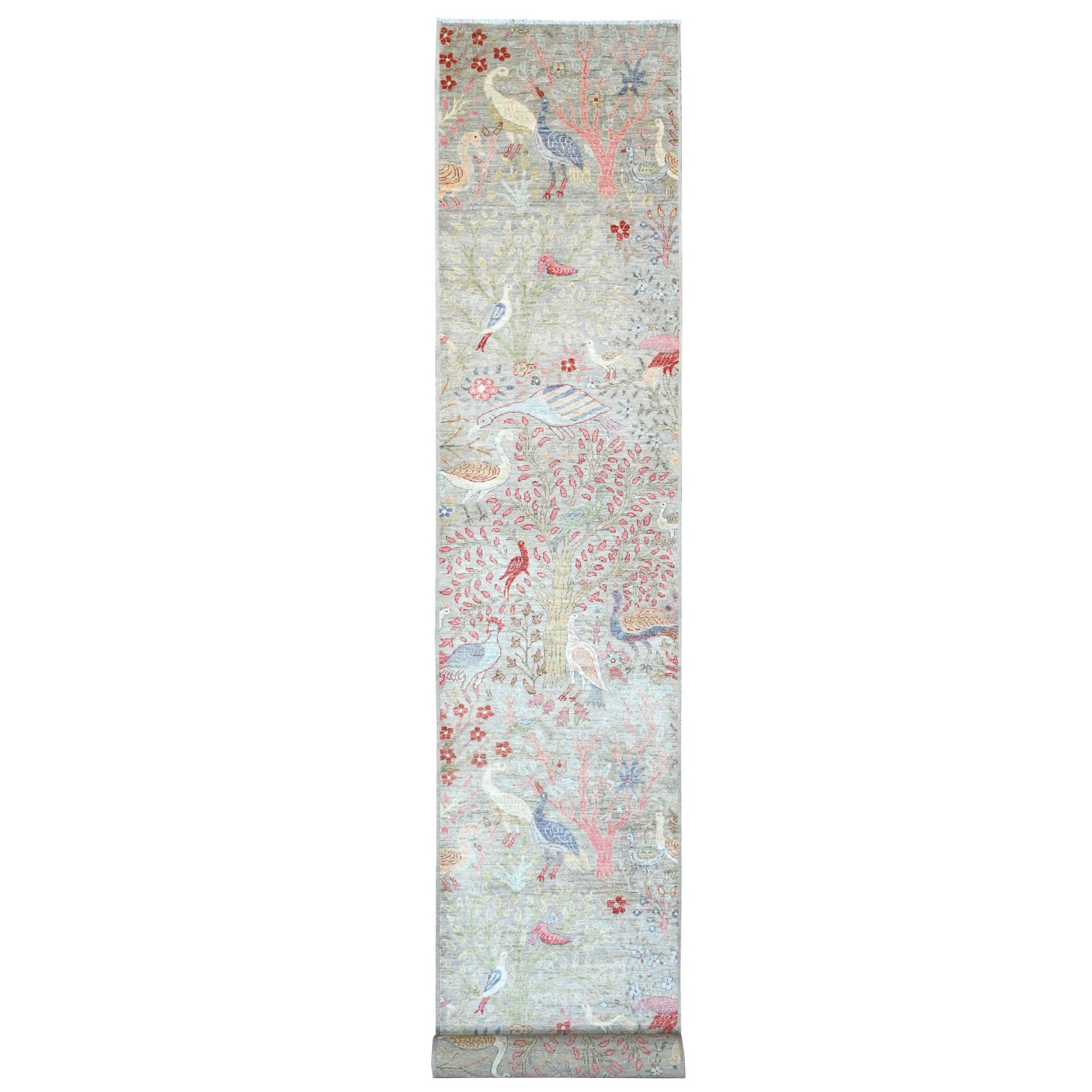3'x19'5" Medium Gray, Afghan Peshawar With Birds Of Paradise Design, Vegetable Dyes, Hand Knotted, Soft Wool, Xl Runner, Oriental Rug FWR539022