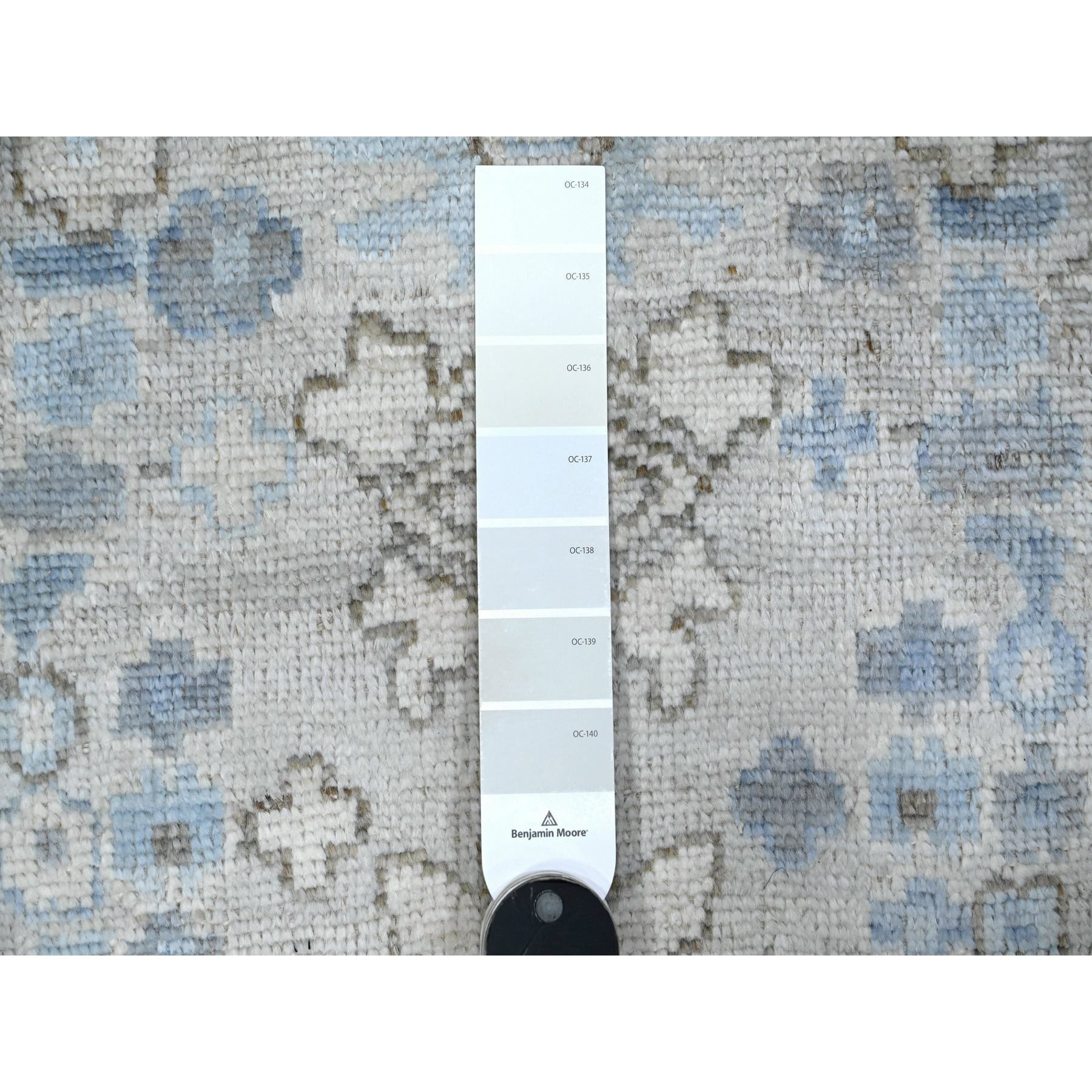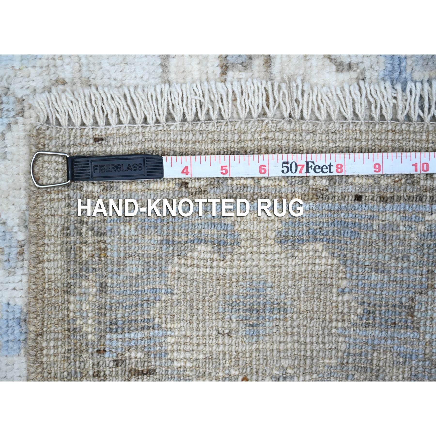 3'x19'5" Powder Blue, Soft Afghan Wool Weft, Hand Knotted, Angora Oushak, Natural Dyes, Tribal All Over Flower And Leaf Design, Xl Runner Oriental Rug FWR534822