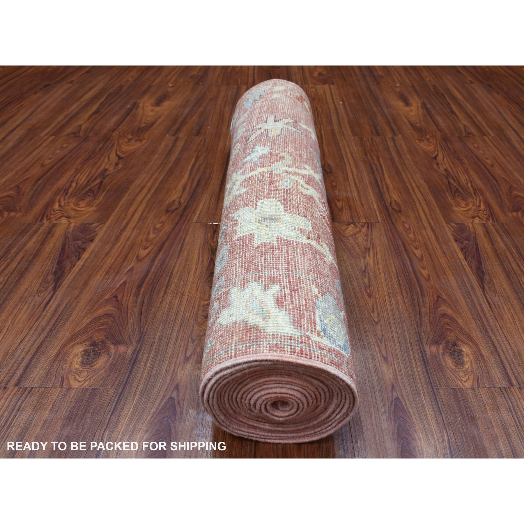 3'x19'9" Coral Pink Hand Knotted Angora Oushak With All Over Leaf Design Pure Wool Oriental Xl Runner Rug FWR415926