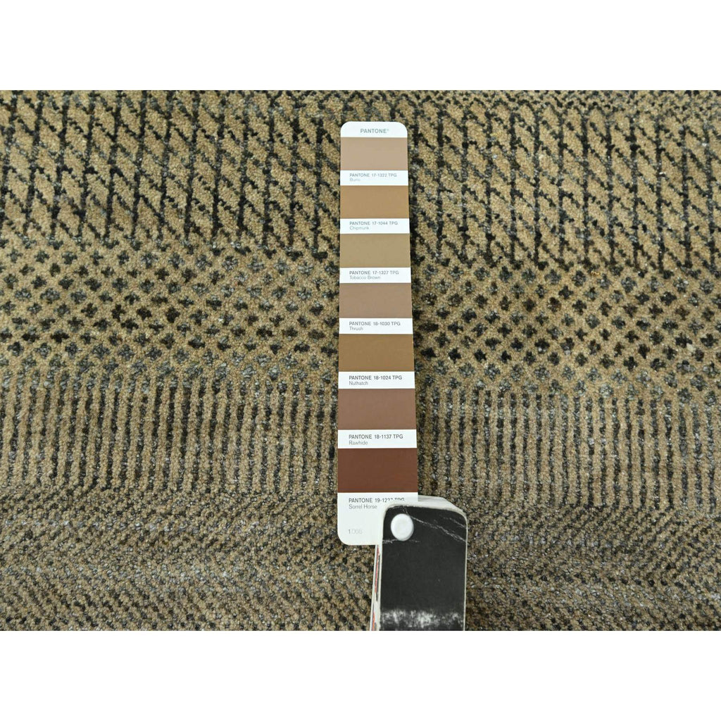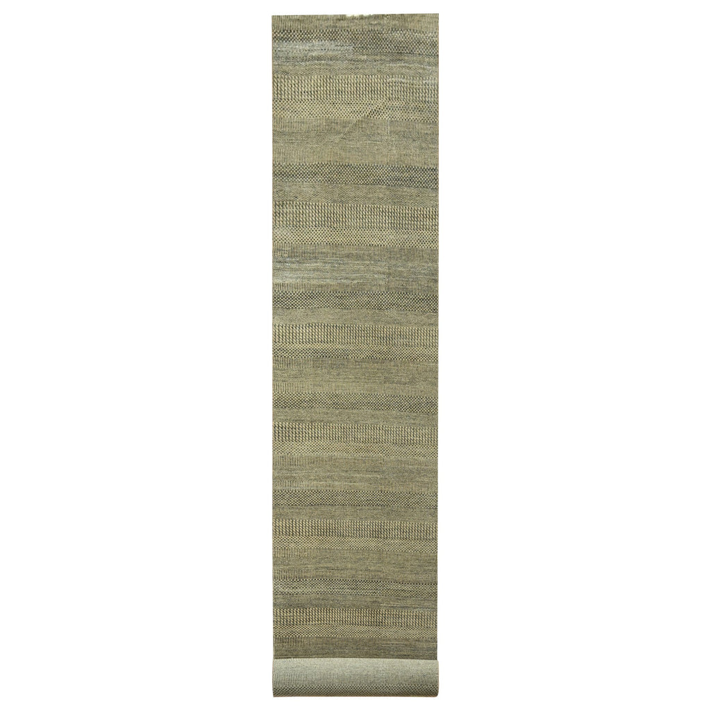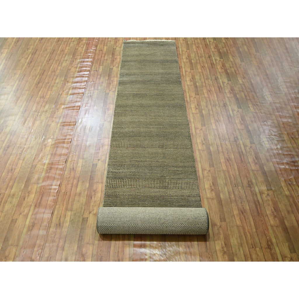 3'x21'10" Dark Vanilla Brown, Modern Grass Design, Wool And Silk, Hand Knotted, Borderless, Denser Weave, Tone On Tone, Lush And Plush, Xl Runner, Oriental Rug FWR458100