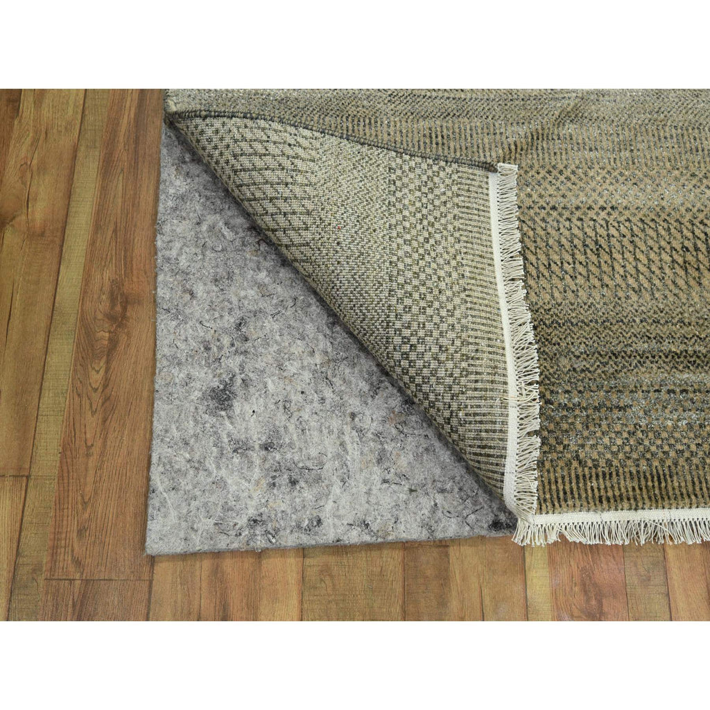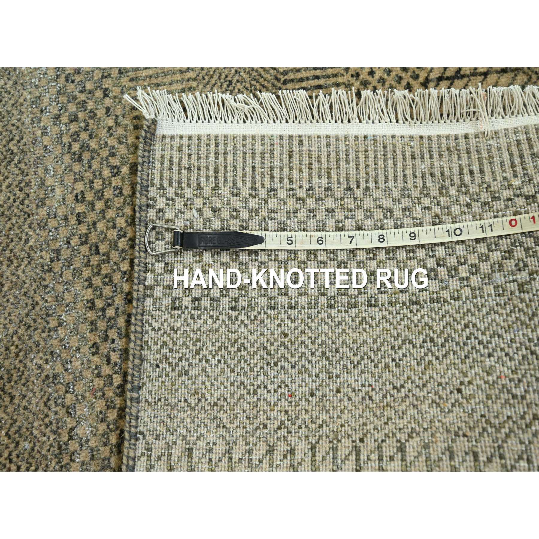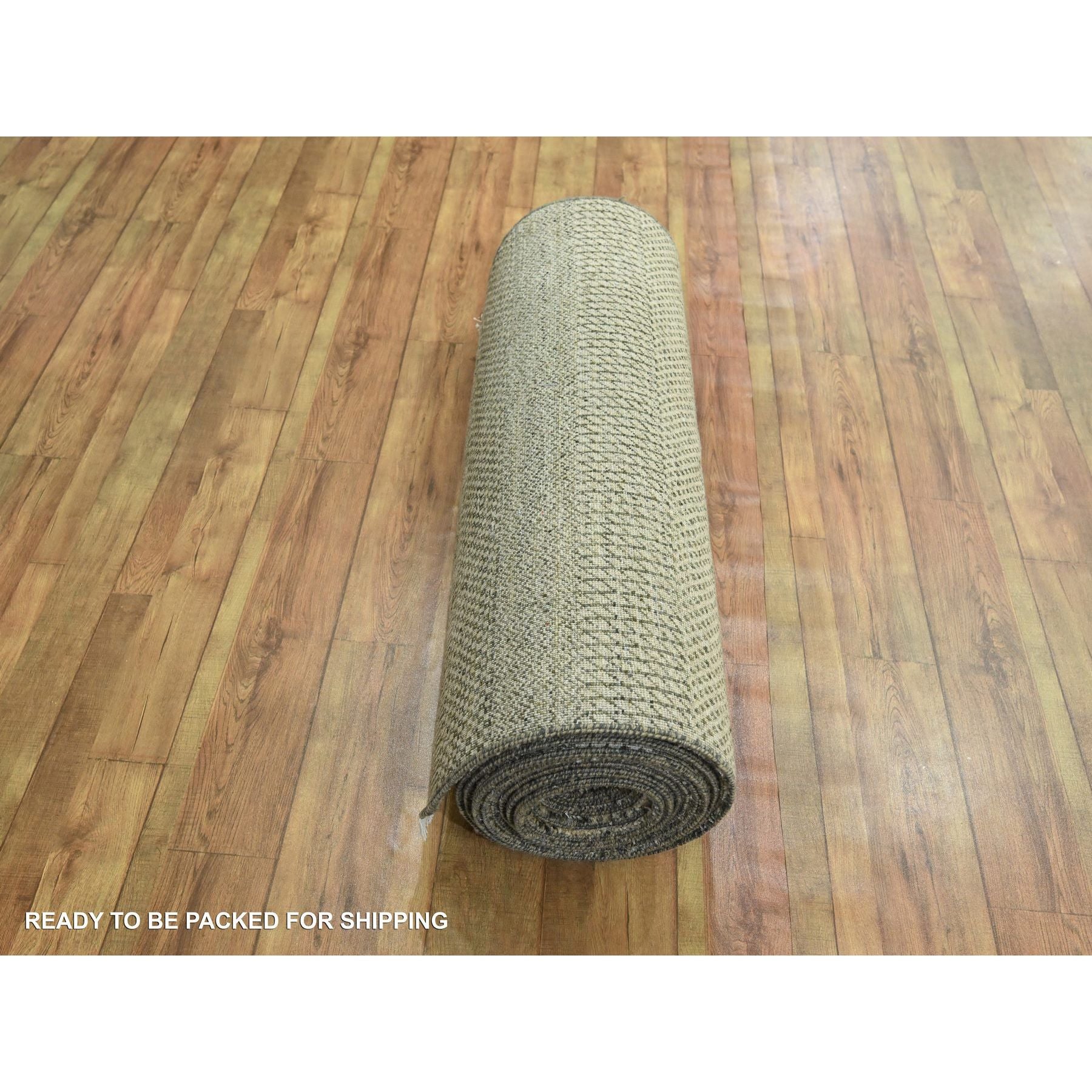3'x21'10" Dark Vanilla Brown, Modern Grass Design, Wool And Silk, Hand Knotted, Borderless, Denser Weave, Tone On Tone, Lush And Plush, Xl Runner, Oriental Rug FWR458100