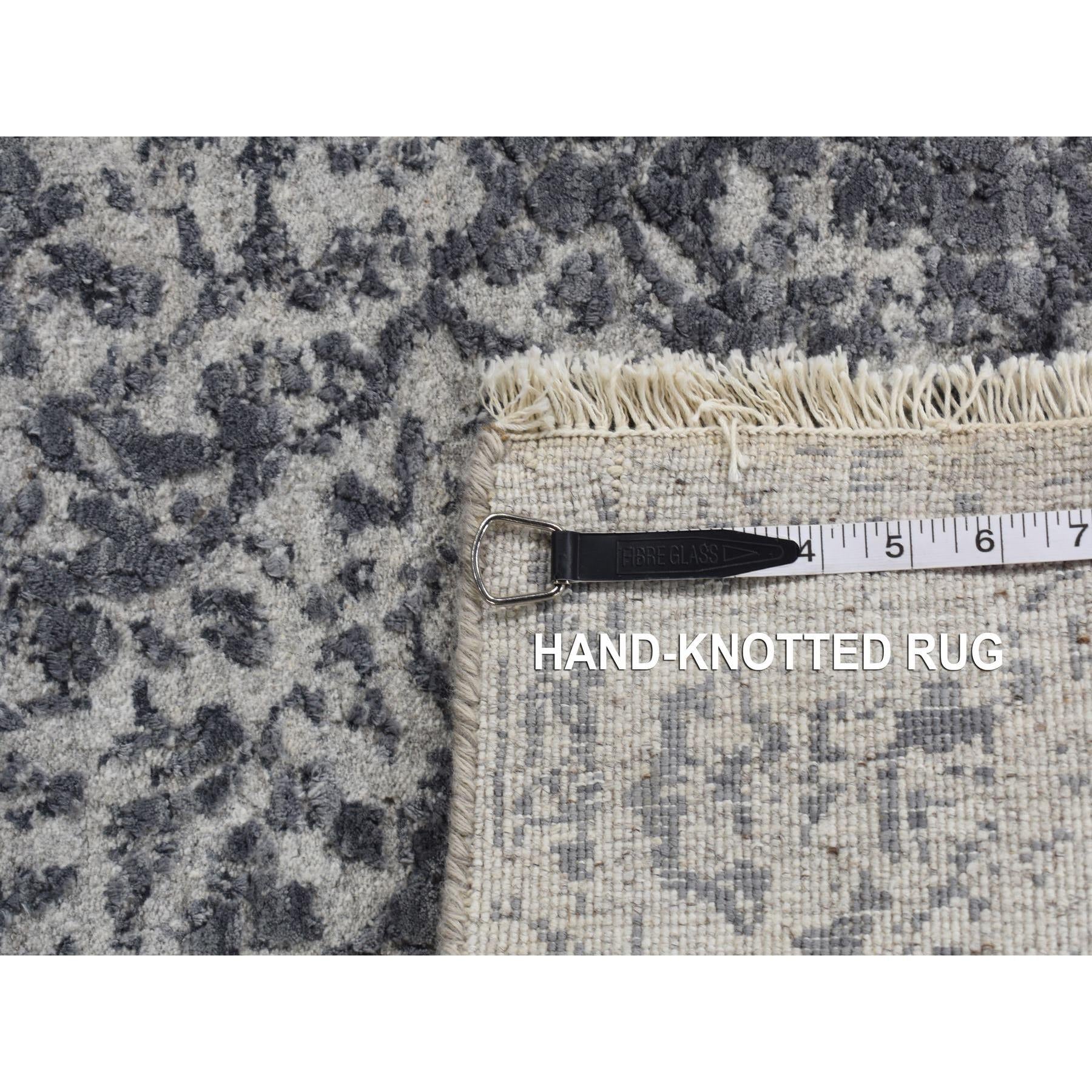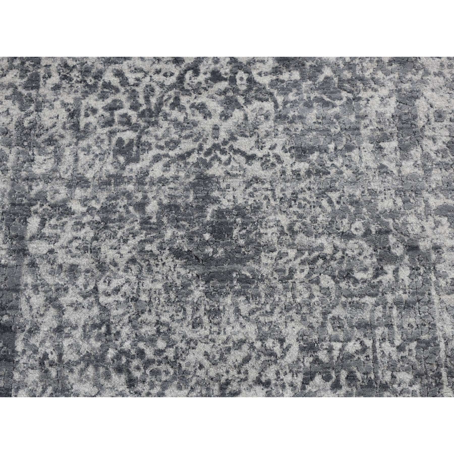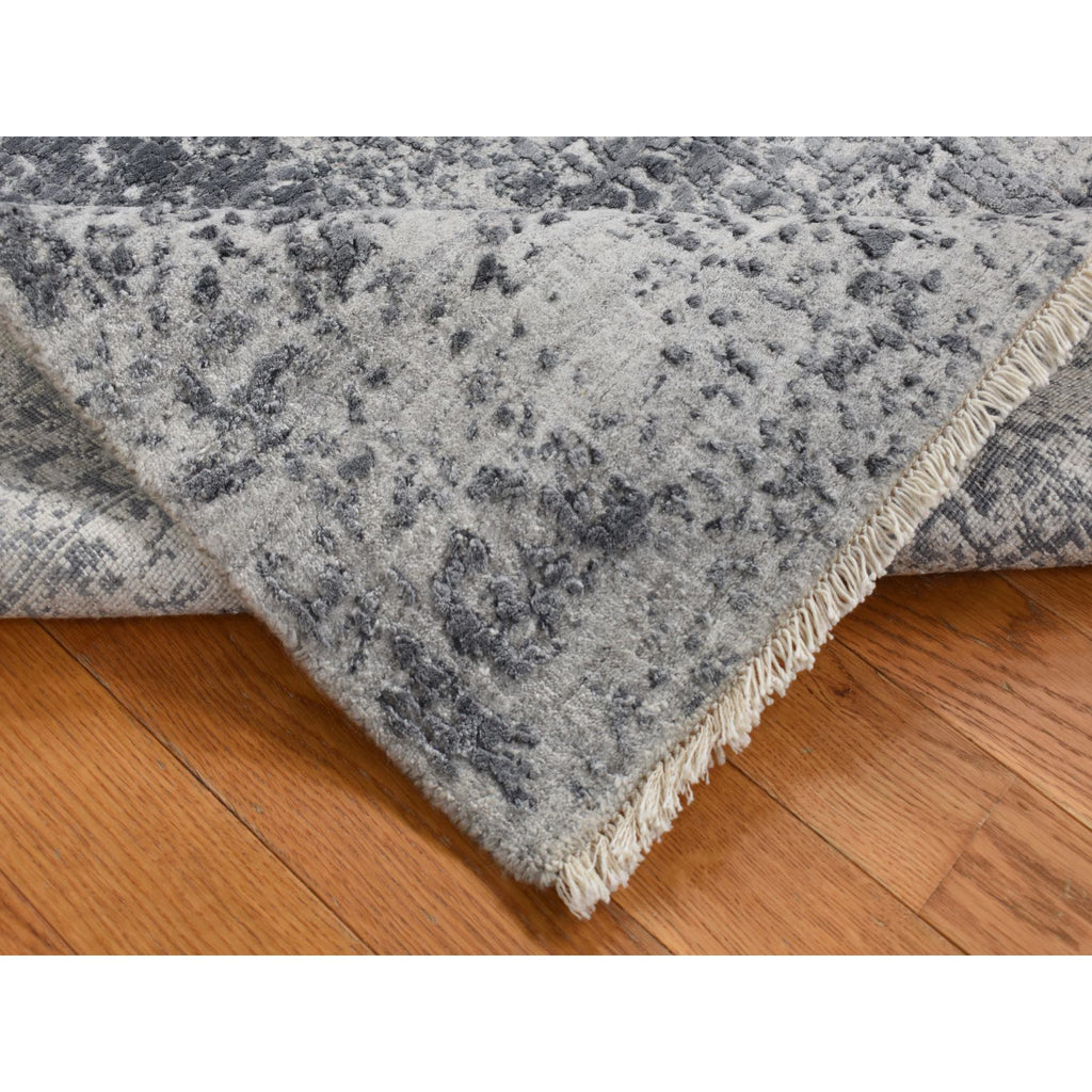 3'x4'10" Arsenic Gray, Broken And Erased Persian Design, Wool And Pure Silk, Hand Knotted, Oriental Rug FWR525630