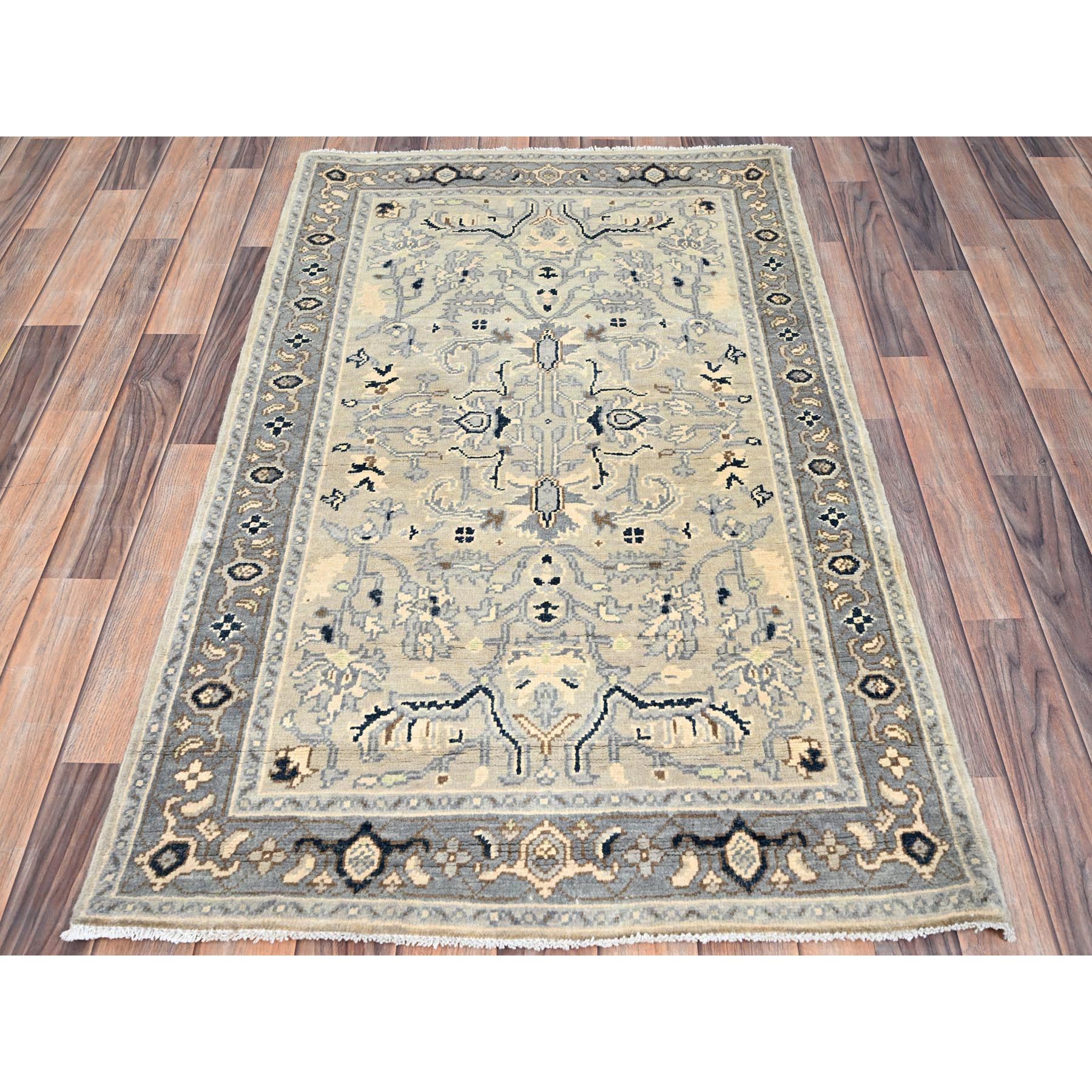 3'x4'10" Winter White, Densely Woven Natural Dyes Hand Knotted Afghan Serapi Heriz Design, Oriental 100% Wool Rug FWR518334