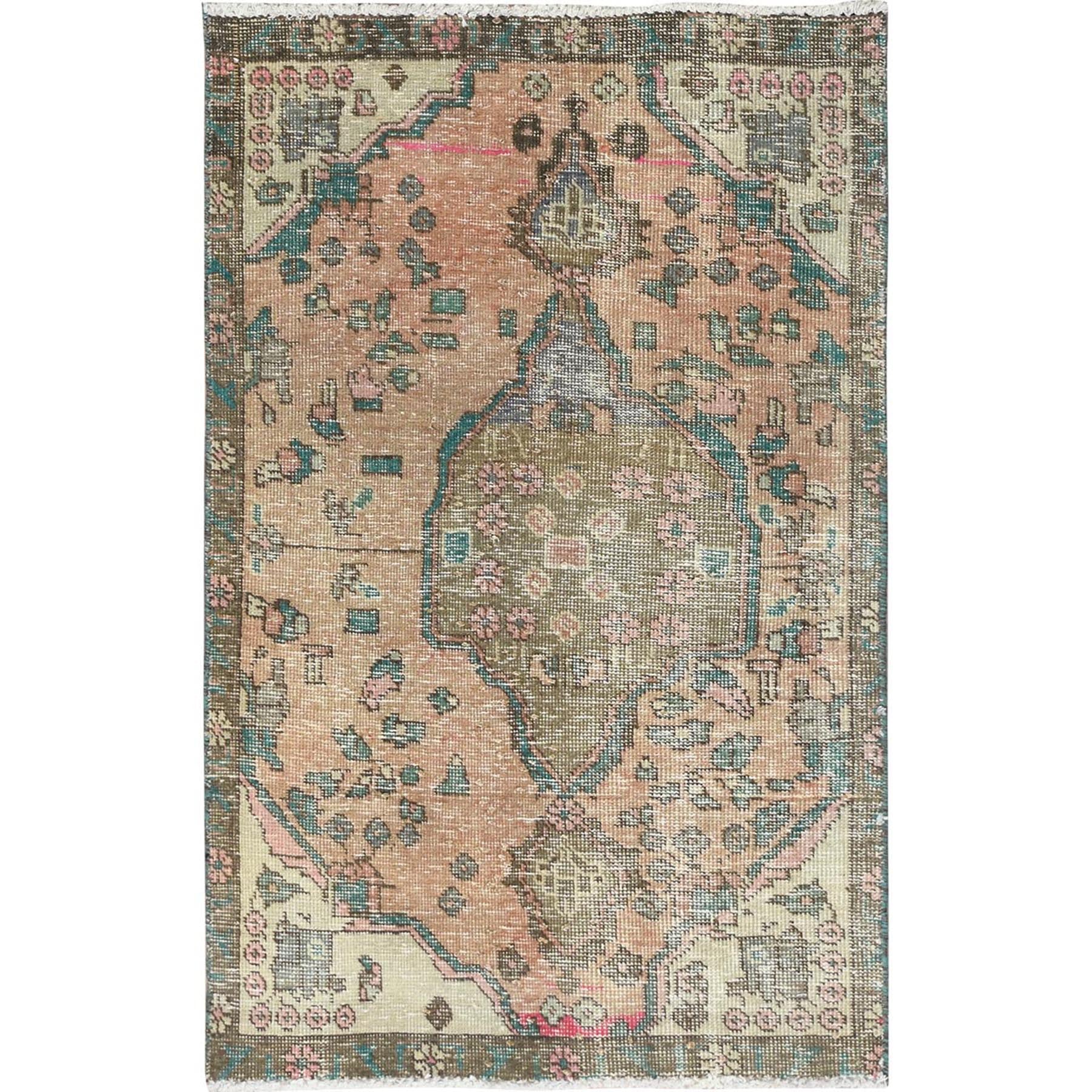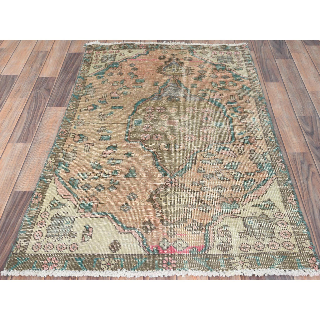 3'x4'5" Cafe Au Lait Brown, Sheared Low, Worn Wool, Hand Knotted, Bohemian Vintage Persian Tabriz, Oriental Rug FWR496728