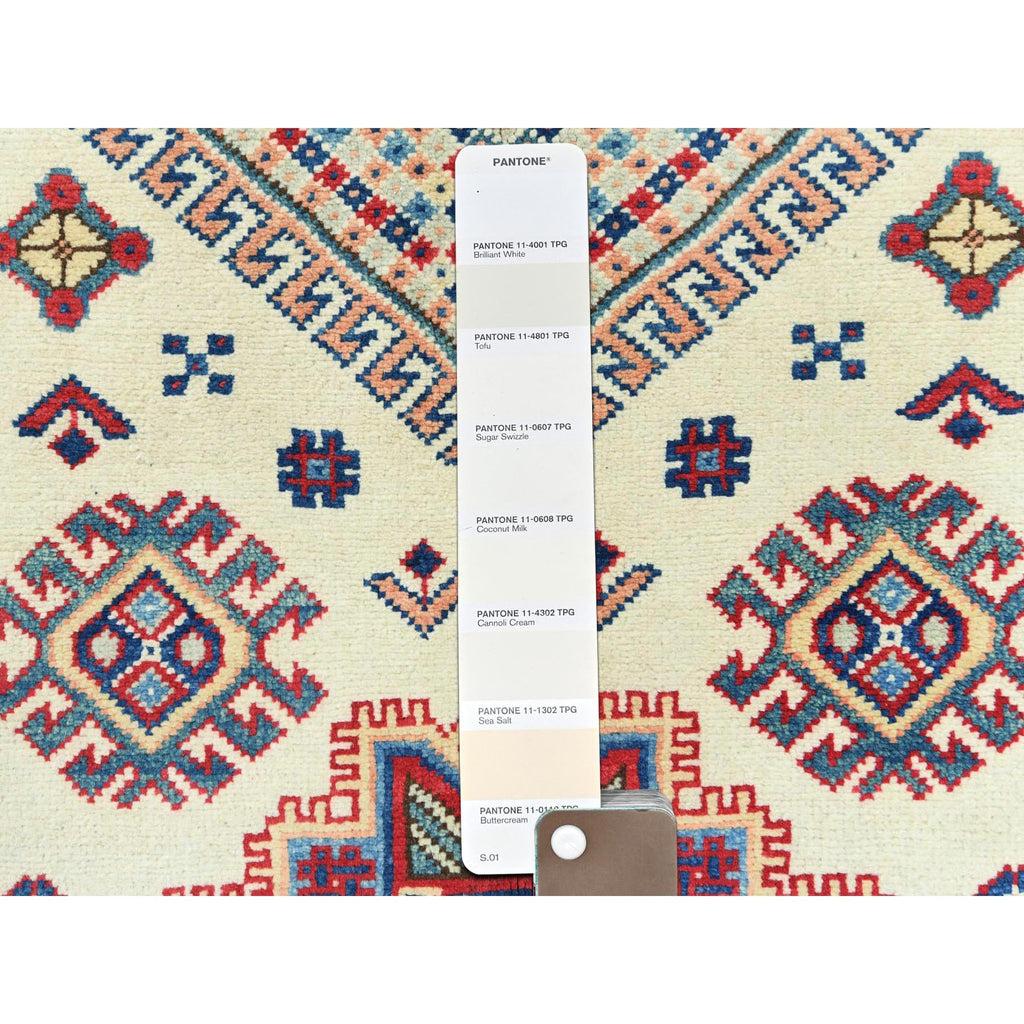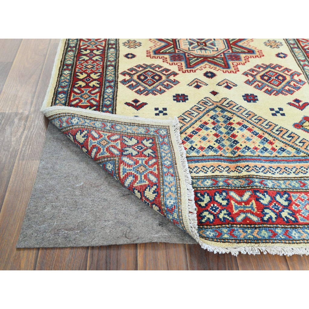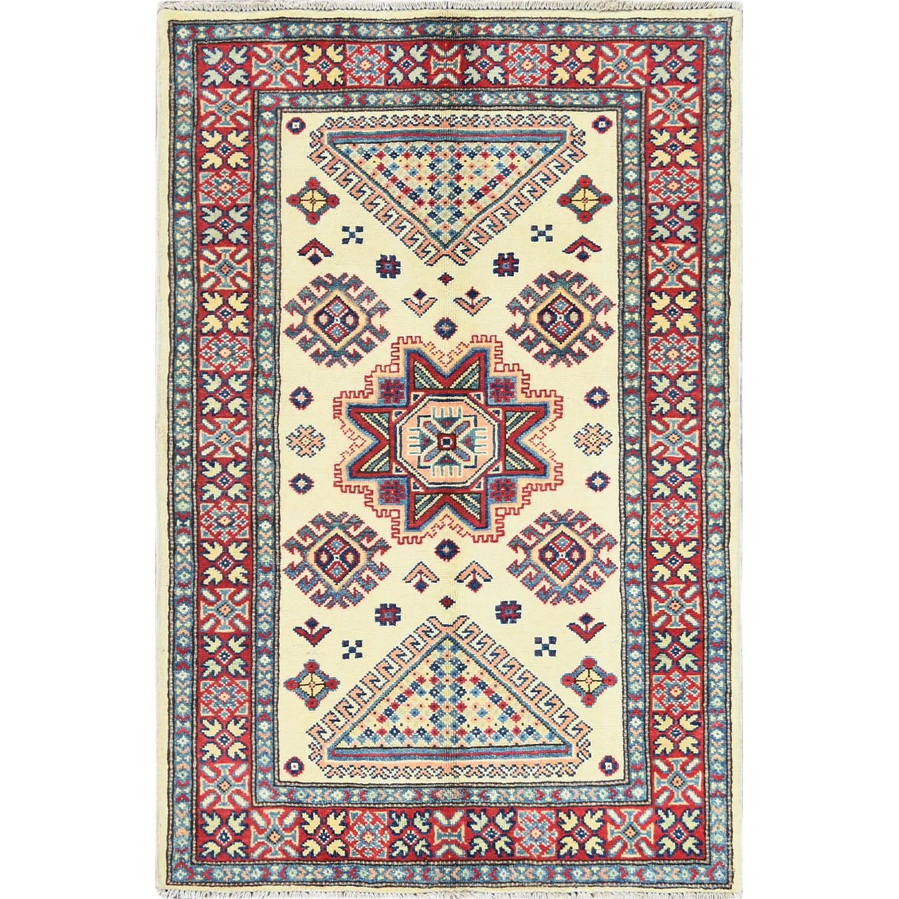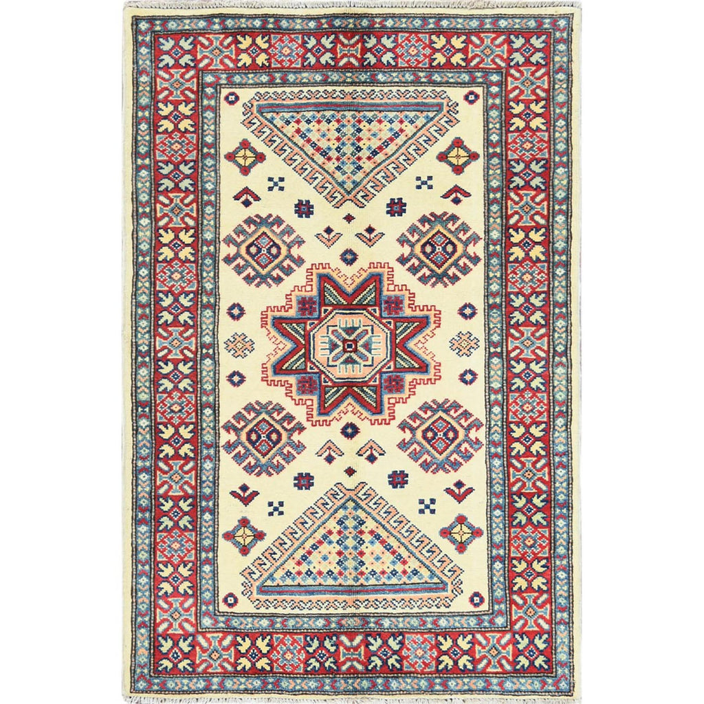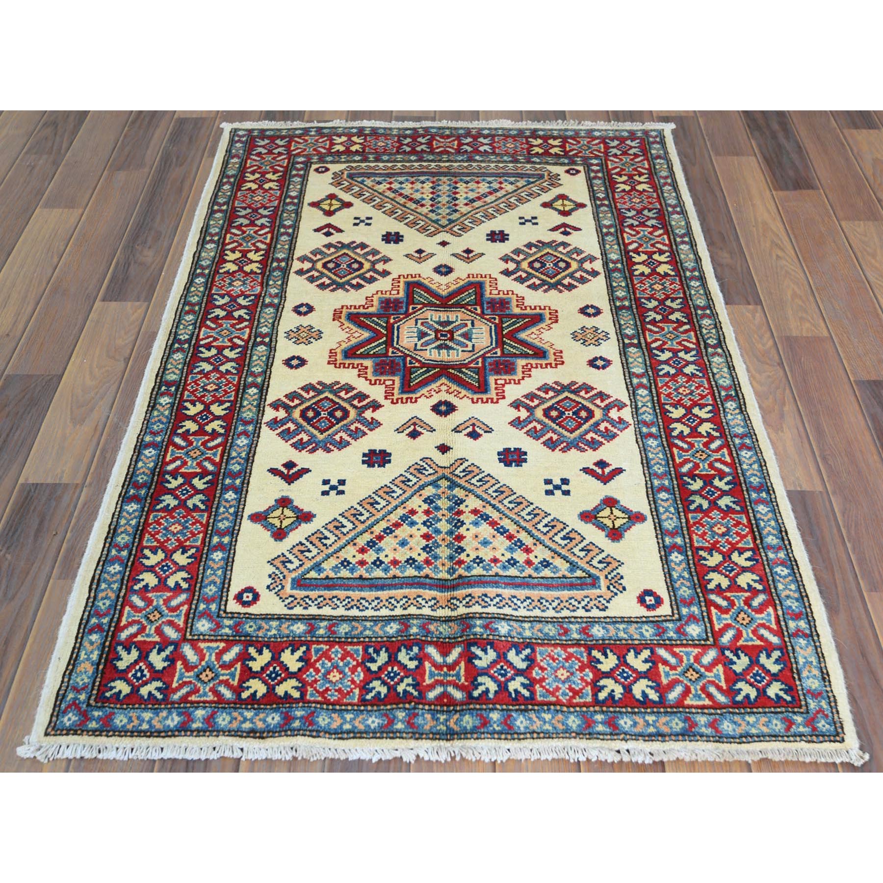 3'x4'8" Caucasian Design, Afghan Special Kazak With Large Medallion, Shiny Wool, Hand Knotted, Ivory, Oriental Rug FWR370860