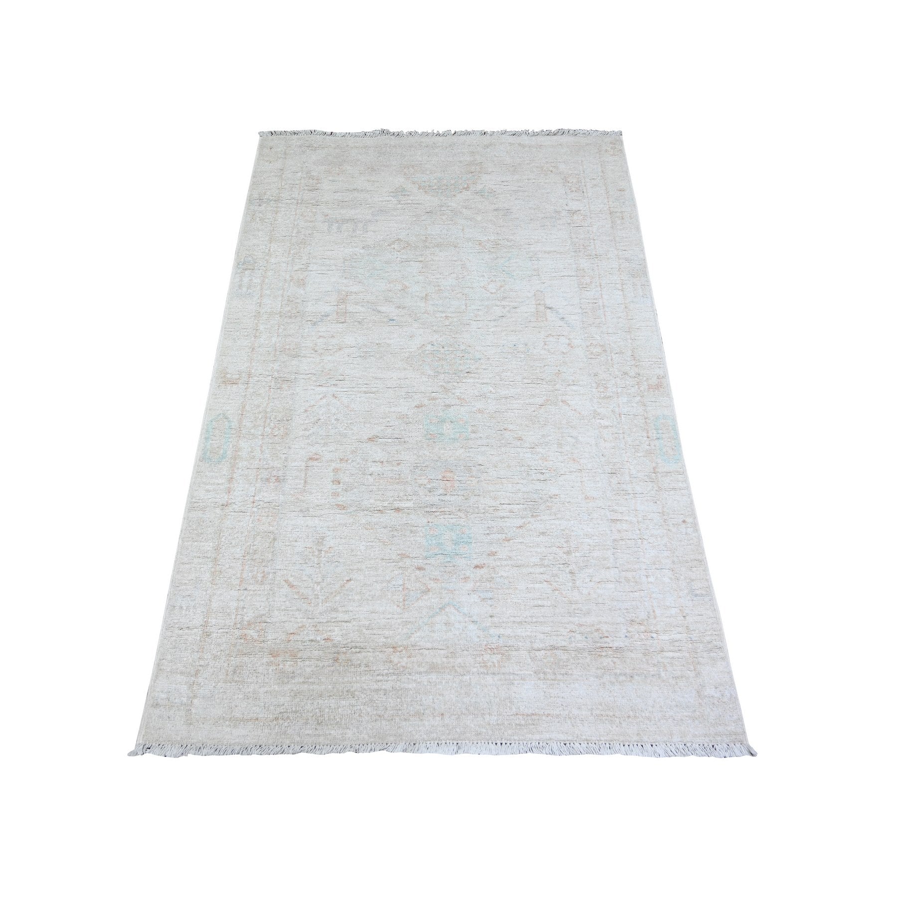 3'x4'9" Cascading White, White Wash Peshawar With Faded Colors, Pure Wool, Hand Knotted, Vegetable Dyes, Oriental Rug FWR446814