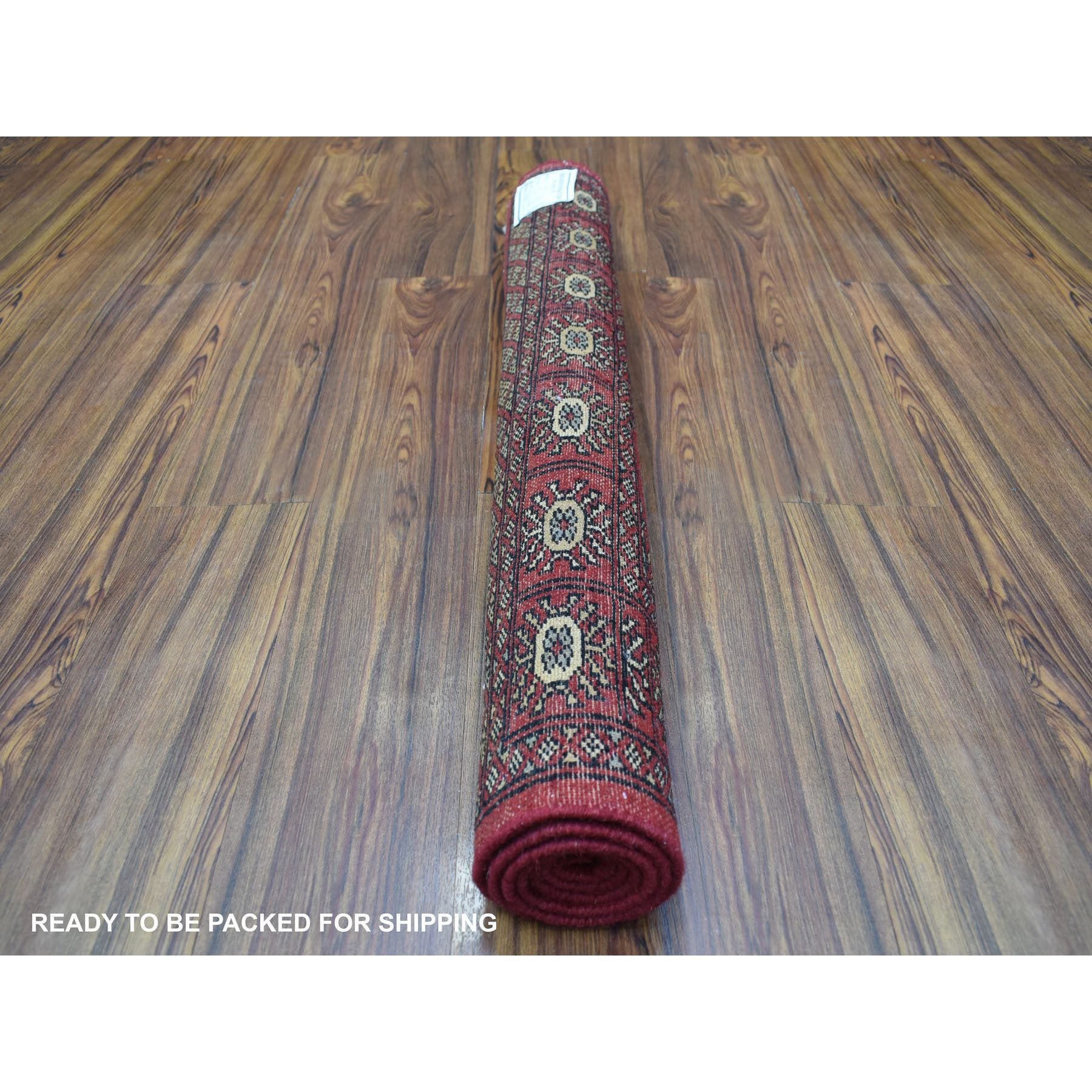 3'x4'9" Rich Red Pure Wool Hand Knotted Mori Bokara With Geometric Medallions Design Oriental Rug FWR415350