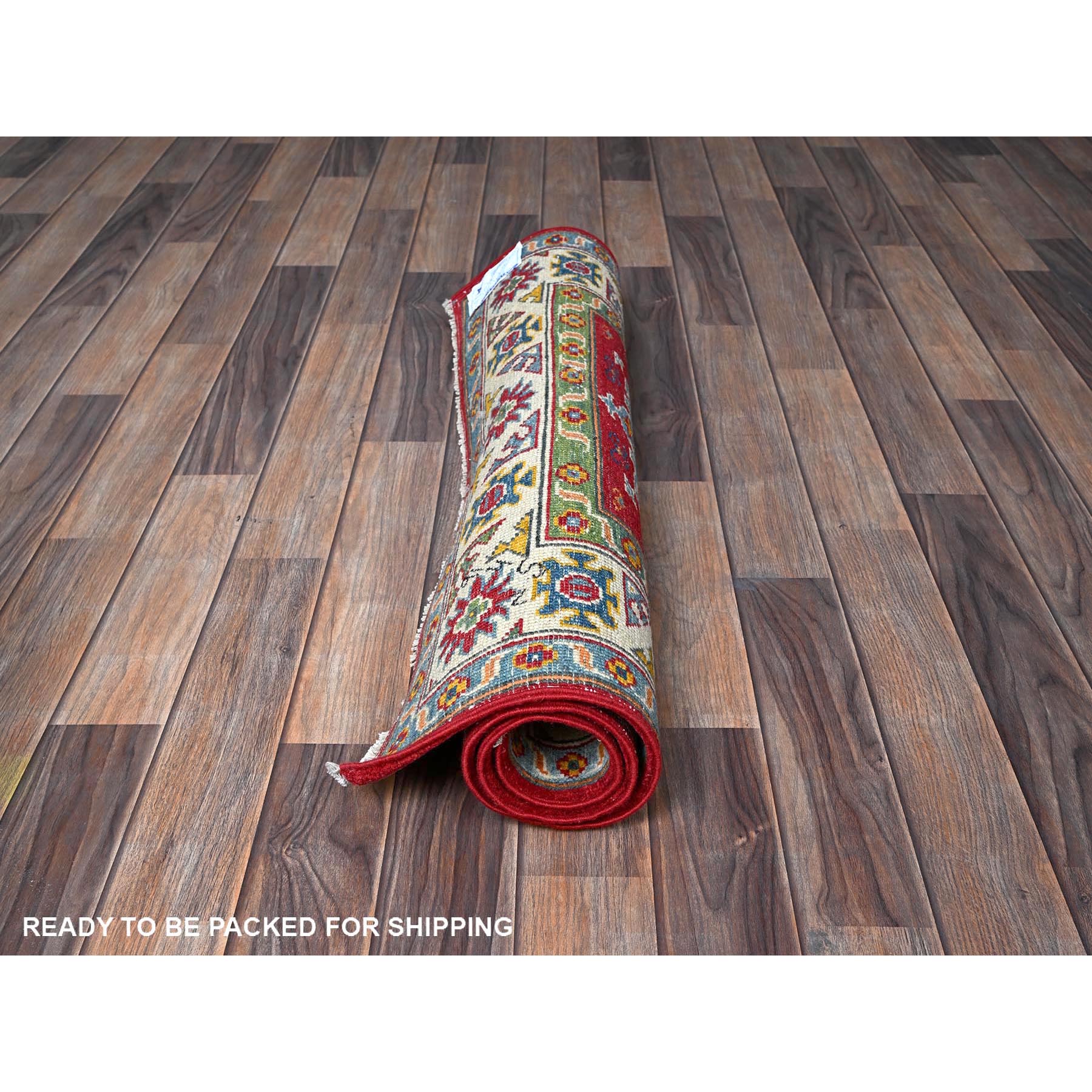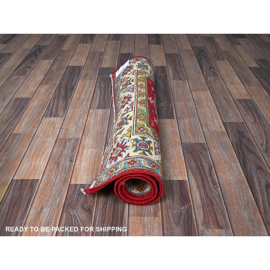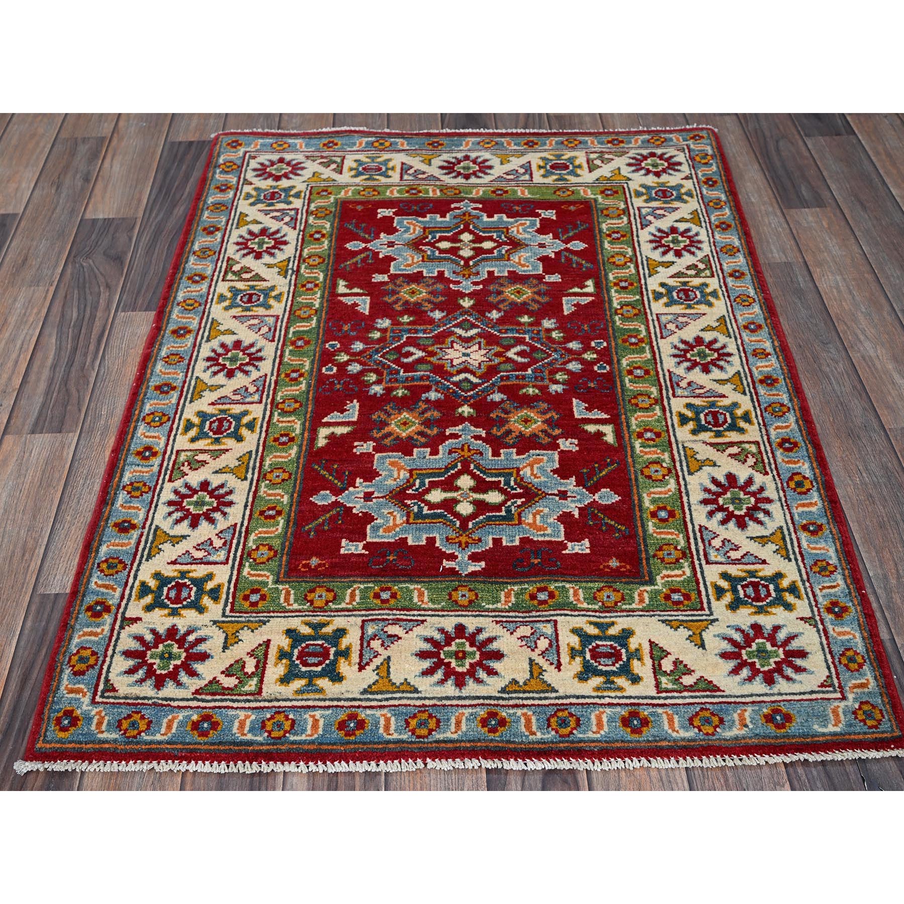 3'x4' Crimson Red, Kazak With Geometric Medallions Design, Hand Knotted, Soft And Velvety Wool, Natural Dyes, Denser Weave, Oriental Rug FWR2460