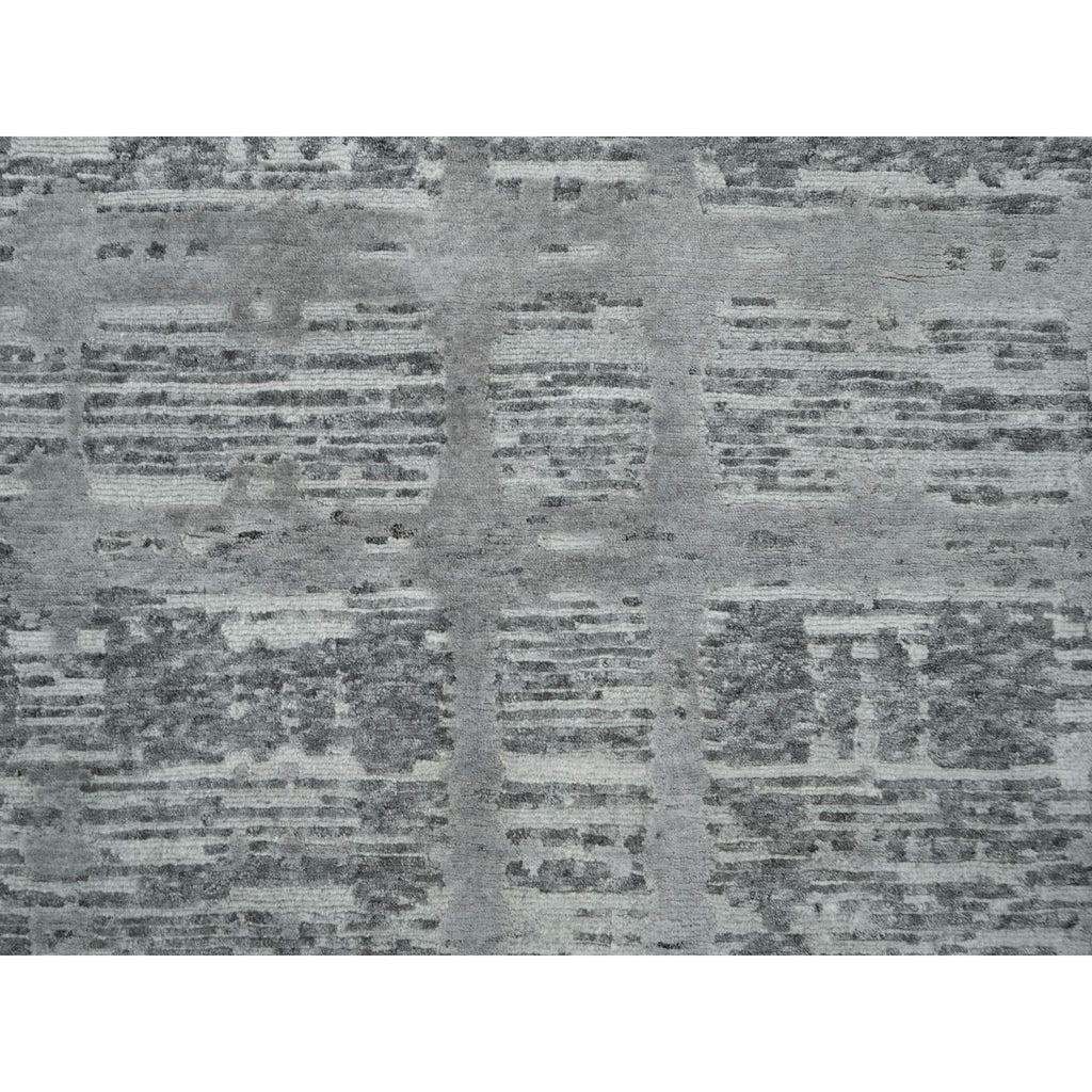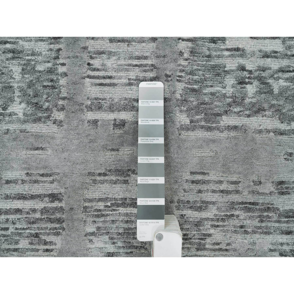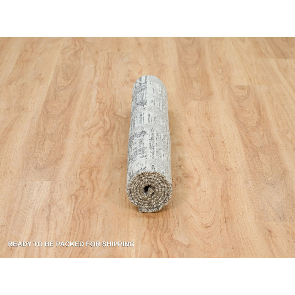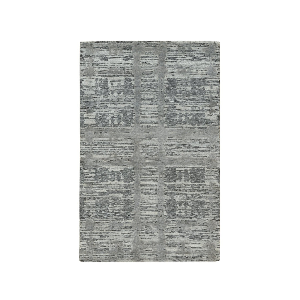 3'x5'1" Ash Gray, Modern Criss Cross Erased Design, Hand Spun Undyed Natural Wool, Hand Knotted, Oriental Rug FWR395766