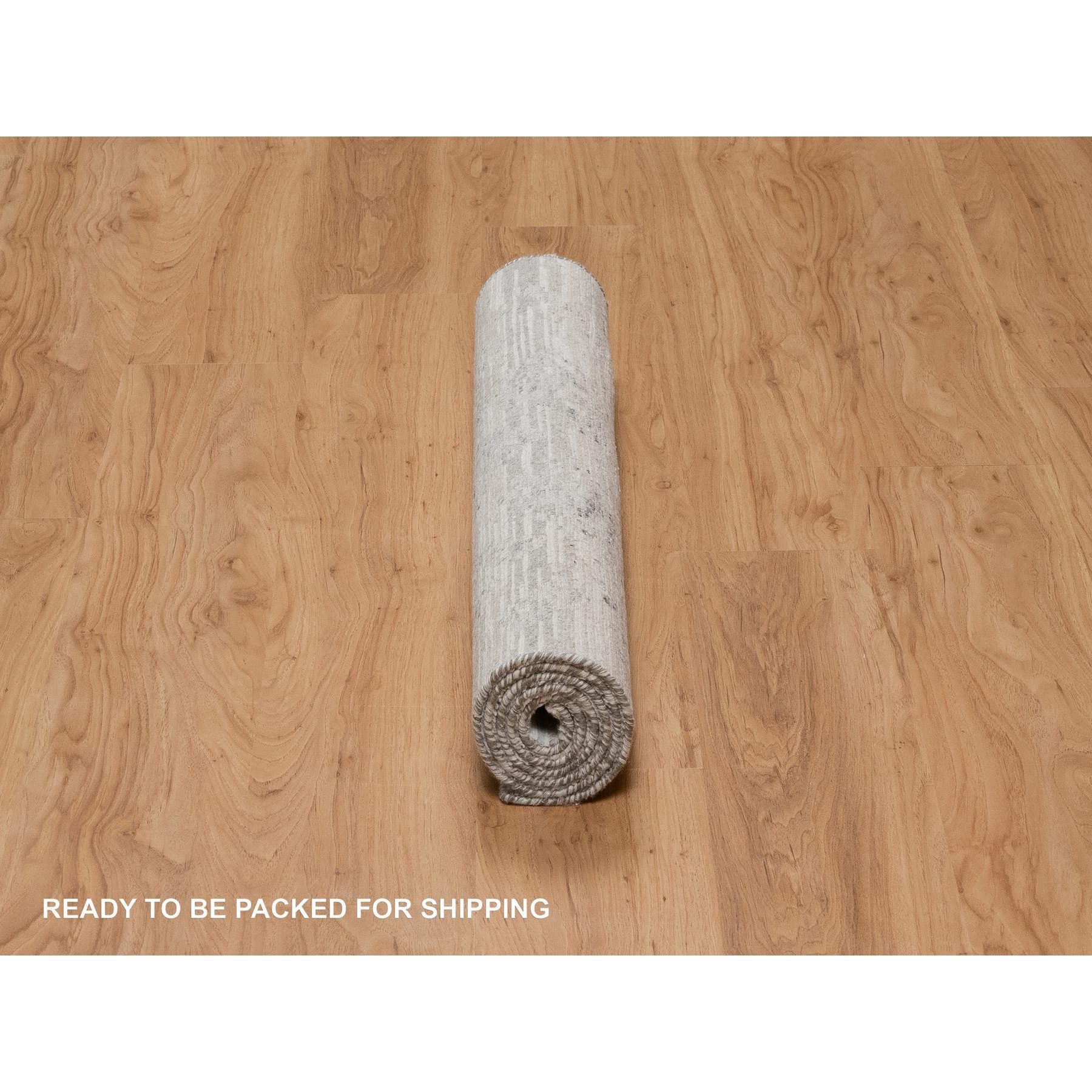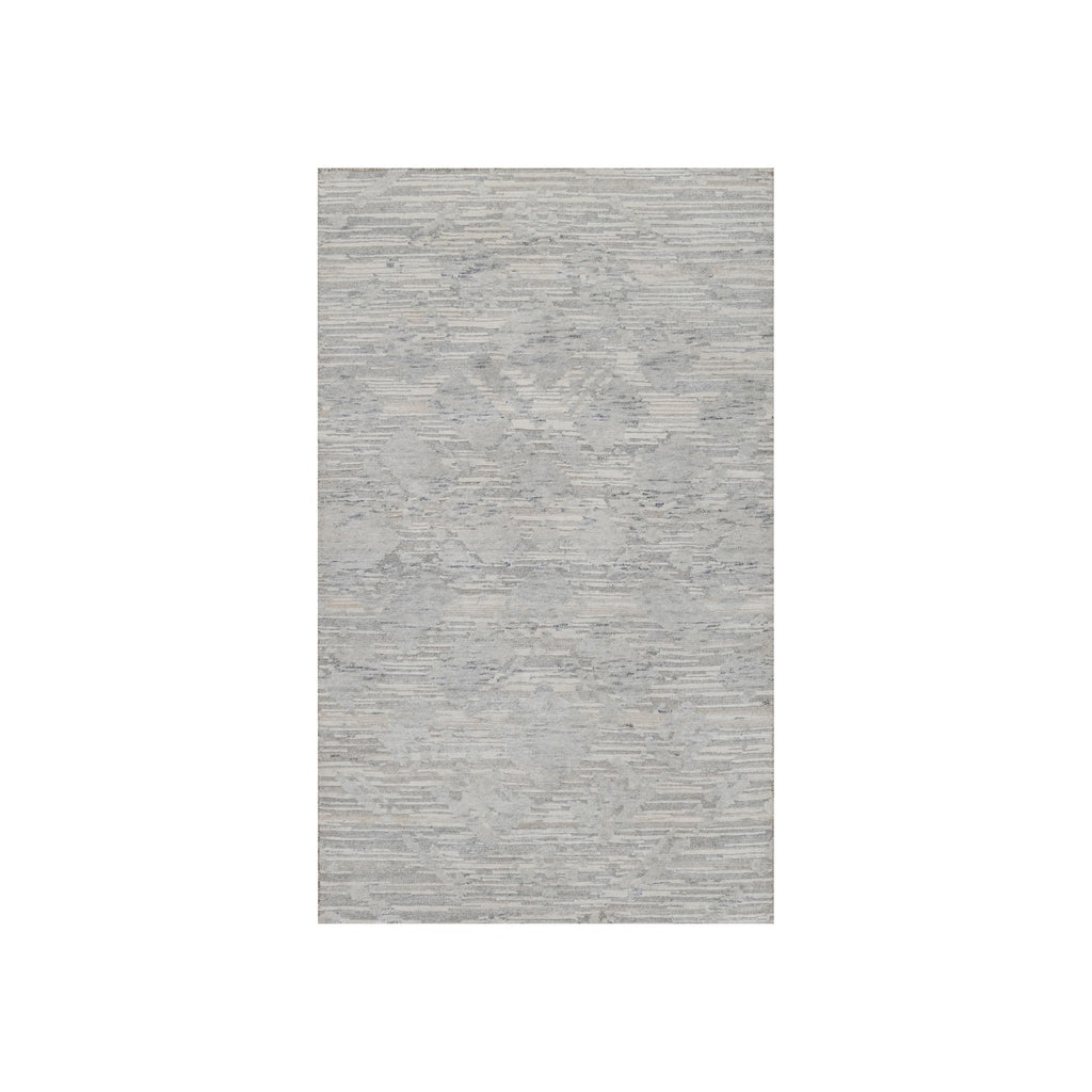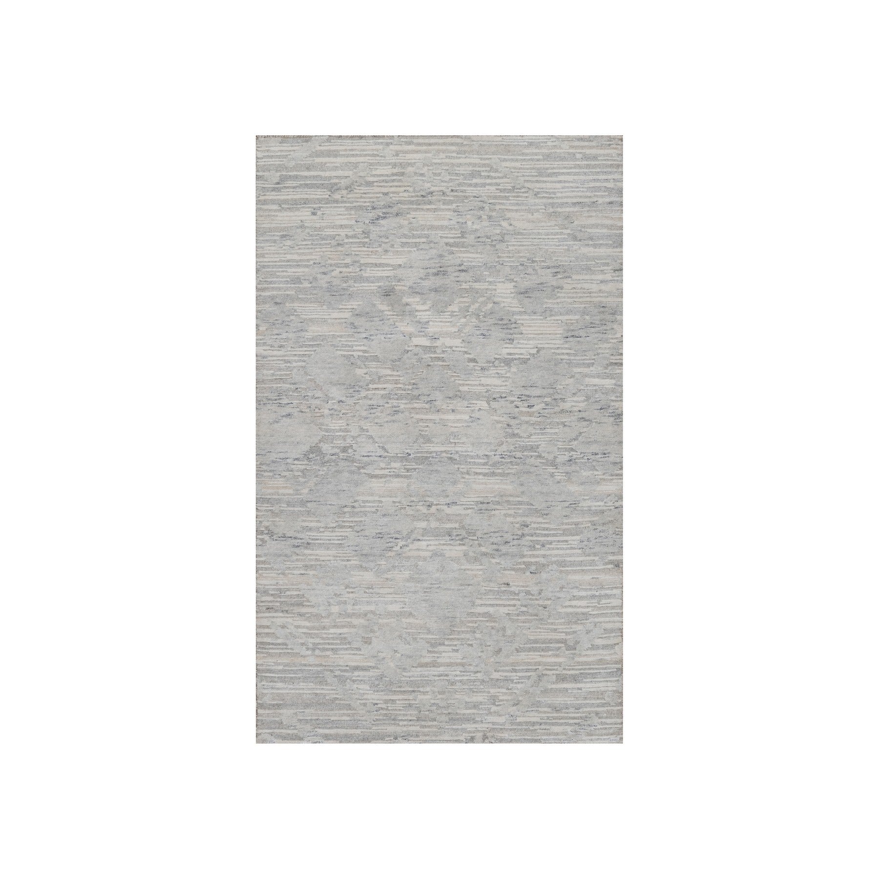 3'x5'1" Cloud Gray, Modern Design, Hand Spun Undyed Natural Wool, Cut And Loop Pile, Hand Knotted, Oriental Rug FWR547680