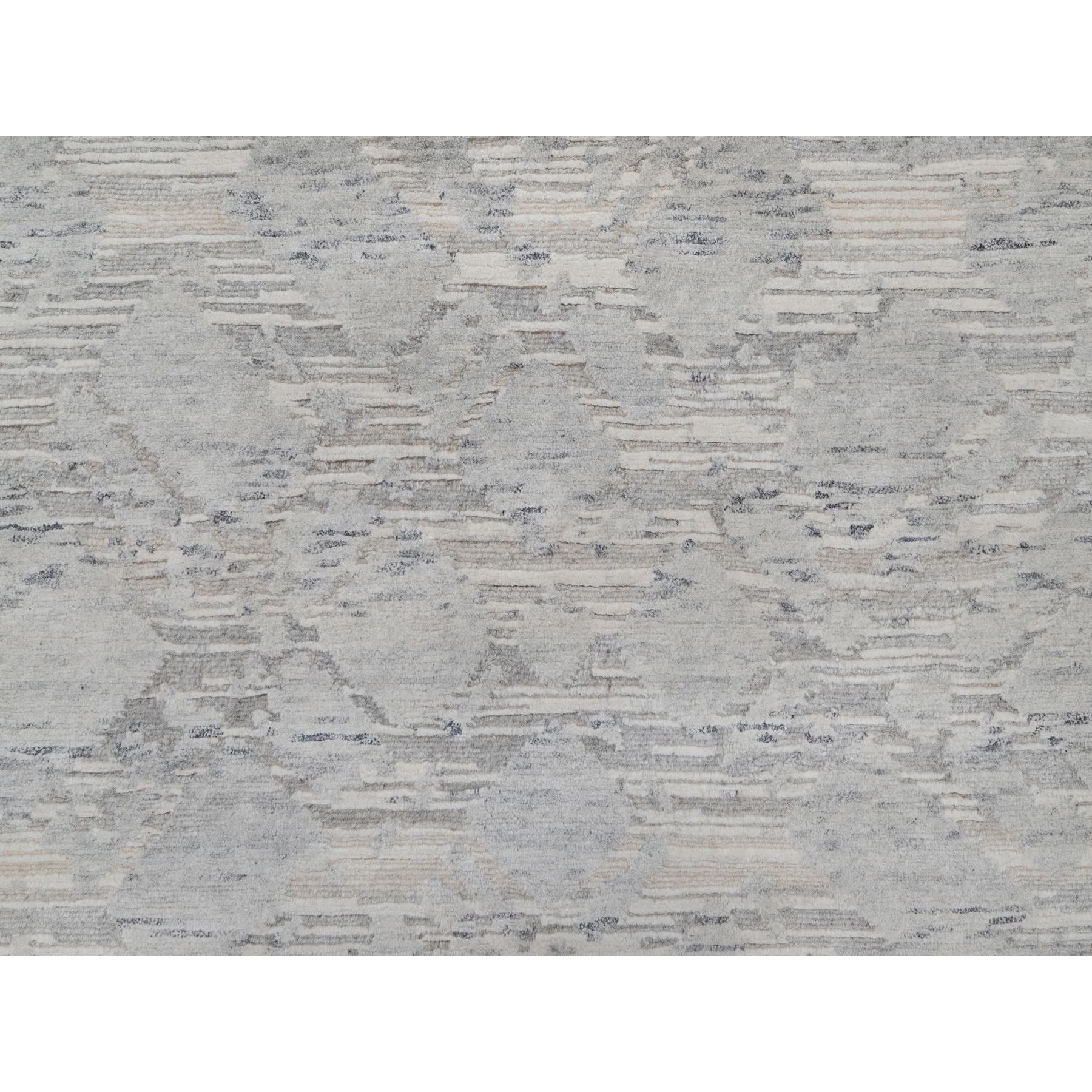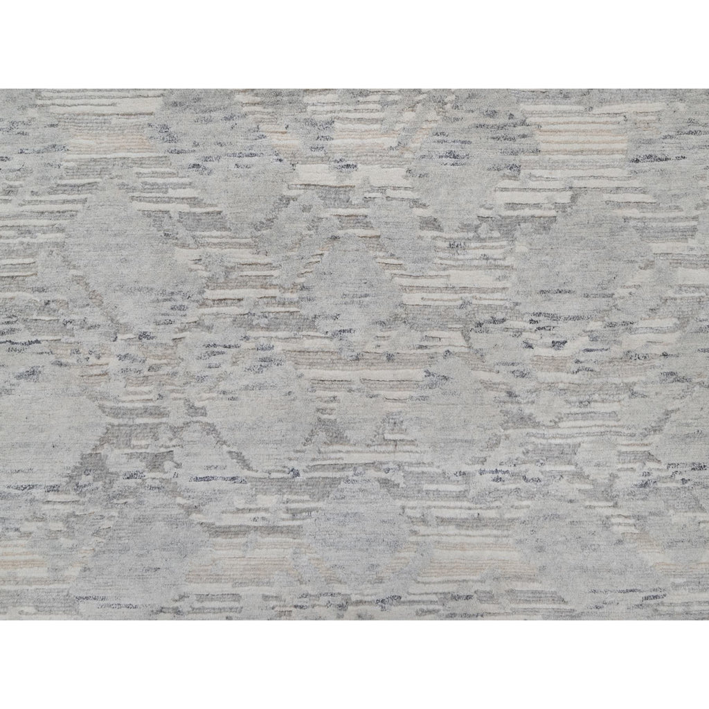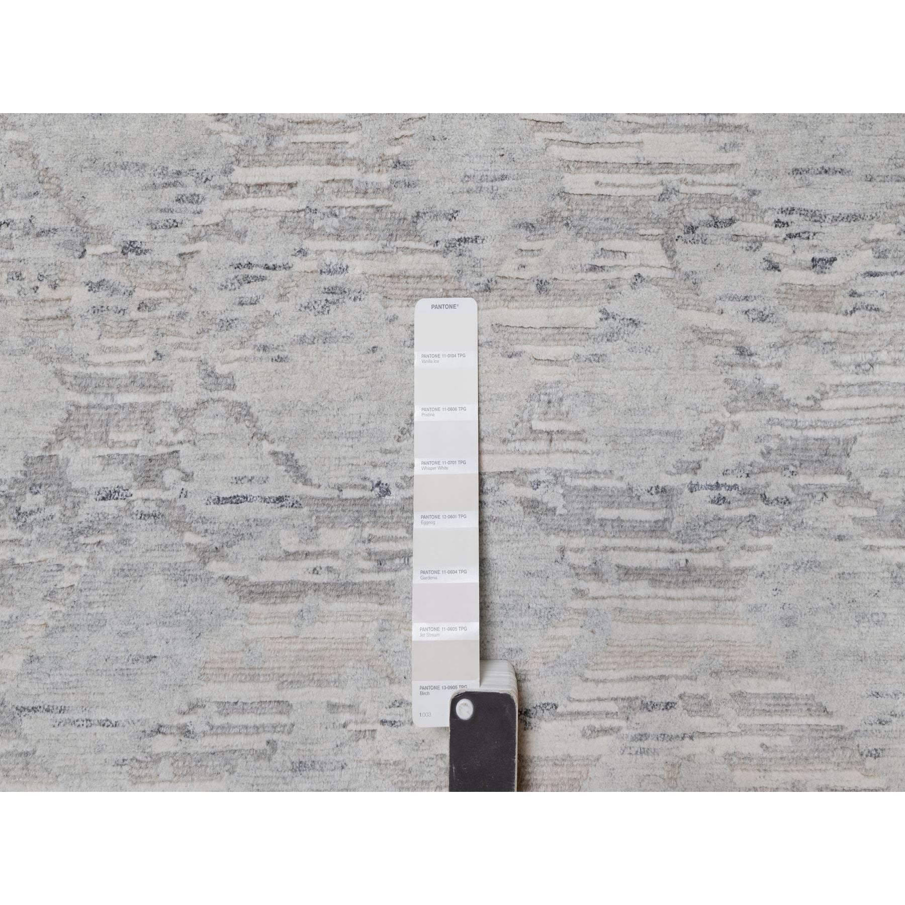 3'x5'1" Cloud Gray, Modern Design, Hand Spun Undyed Natural Wool, Cut And Loop Pile, Hand Knotted, Oriental Rug FWR547680