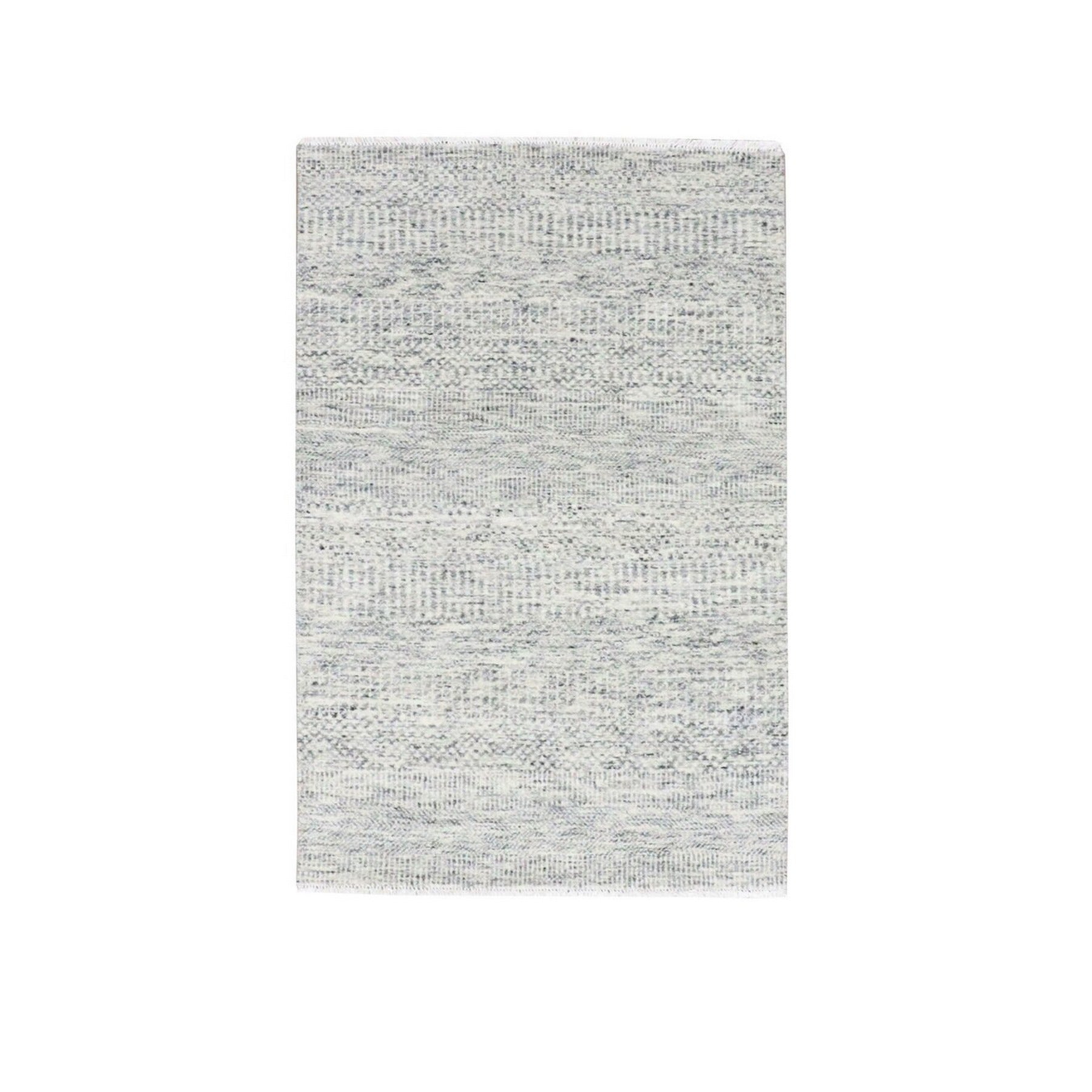 3'x5'1" Gainsboro Gray, Modern Tone On Tone Grass Design, Hand Knotted, Undyed Organic Wool, Oriental Rug FWR477144