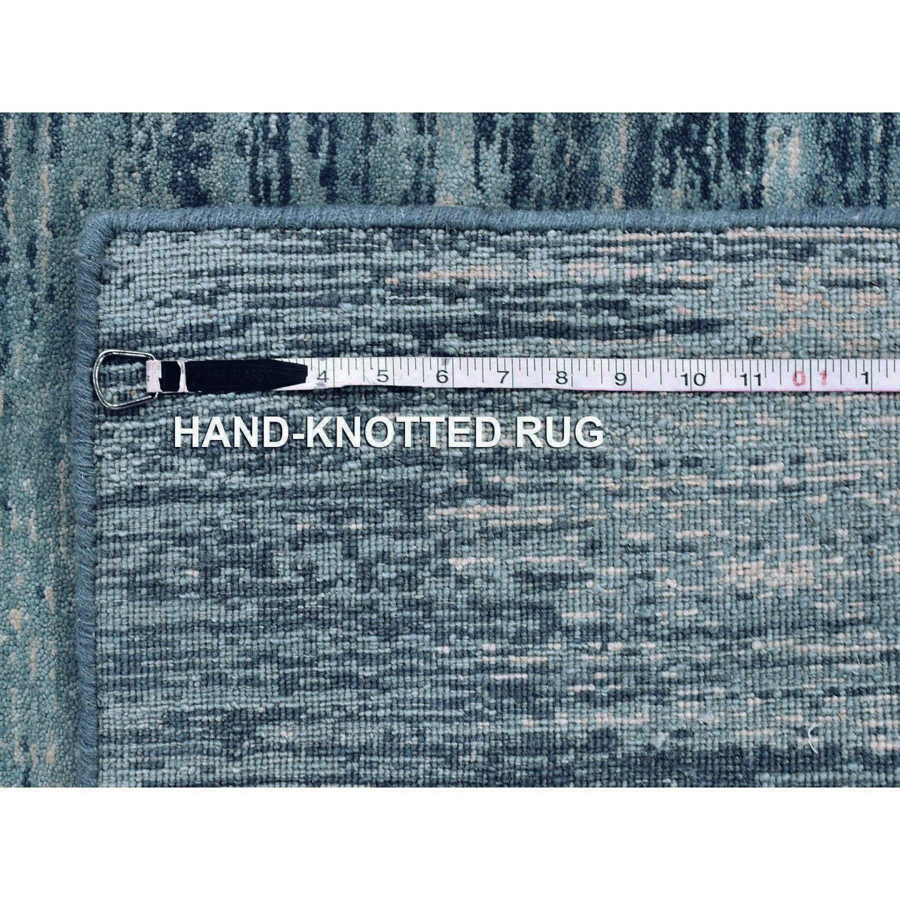 3'x5'2" Blue Oceanic Zero Pile Pure Wool Horizontal Ombre Design Hand Knotted Scatter Size Oriental Rug FWR401142
