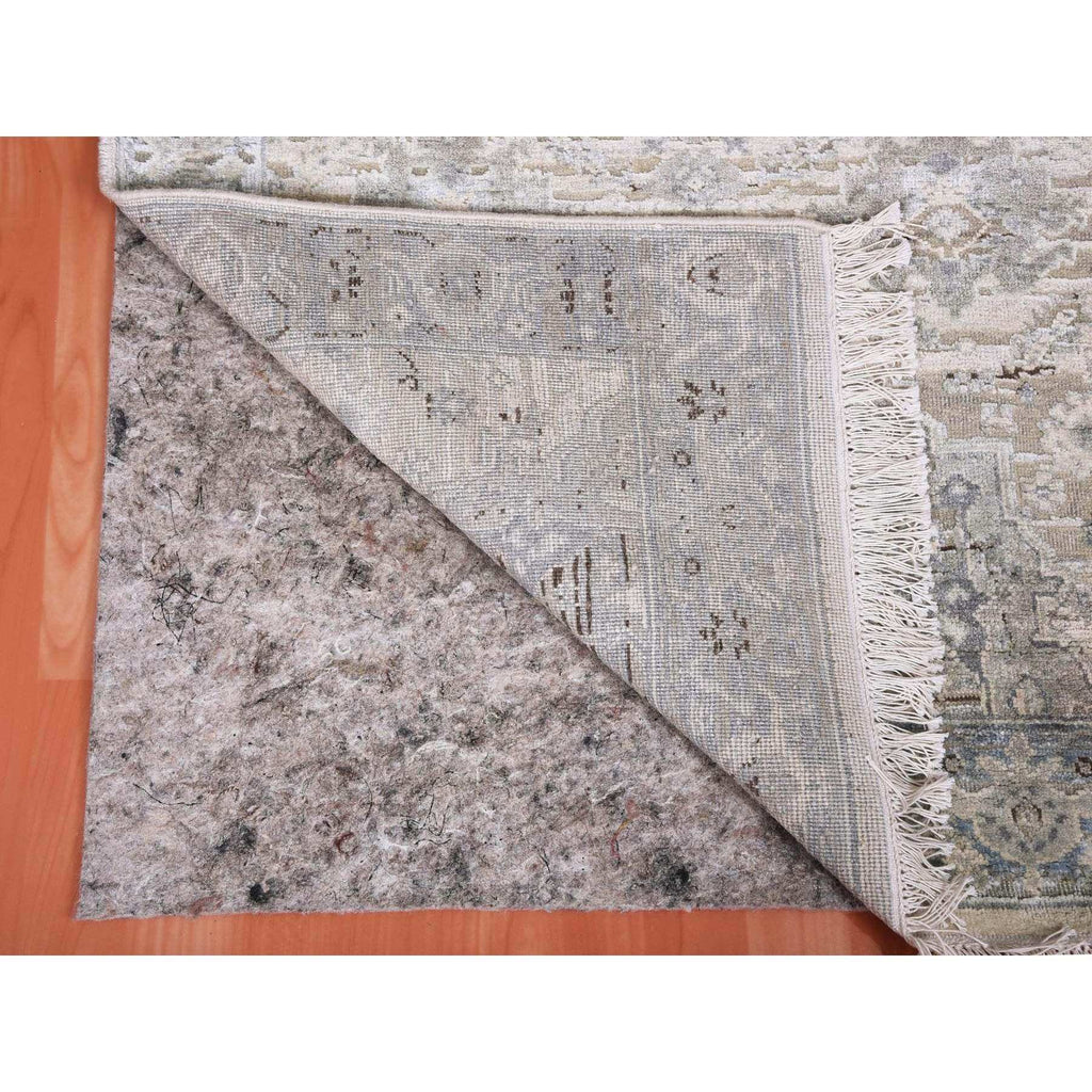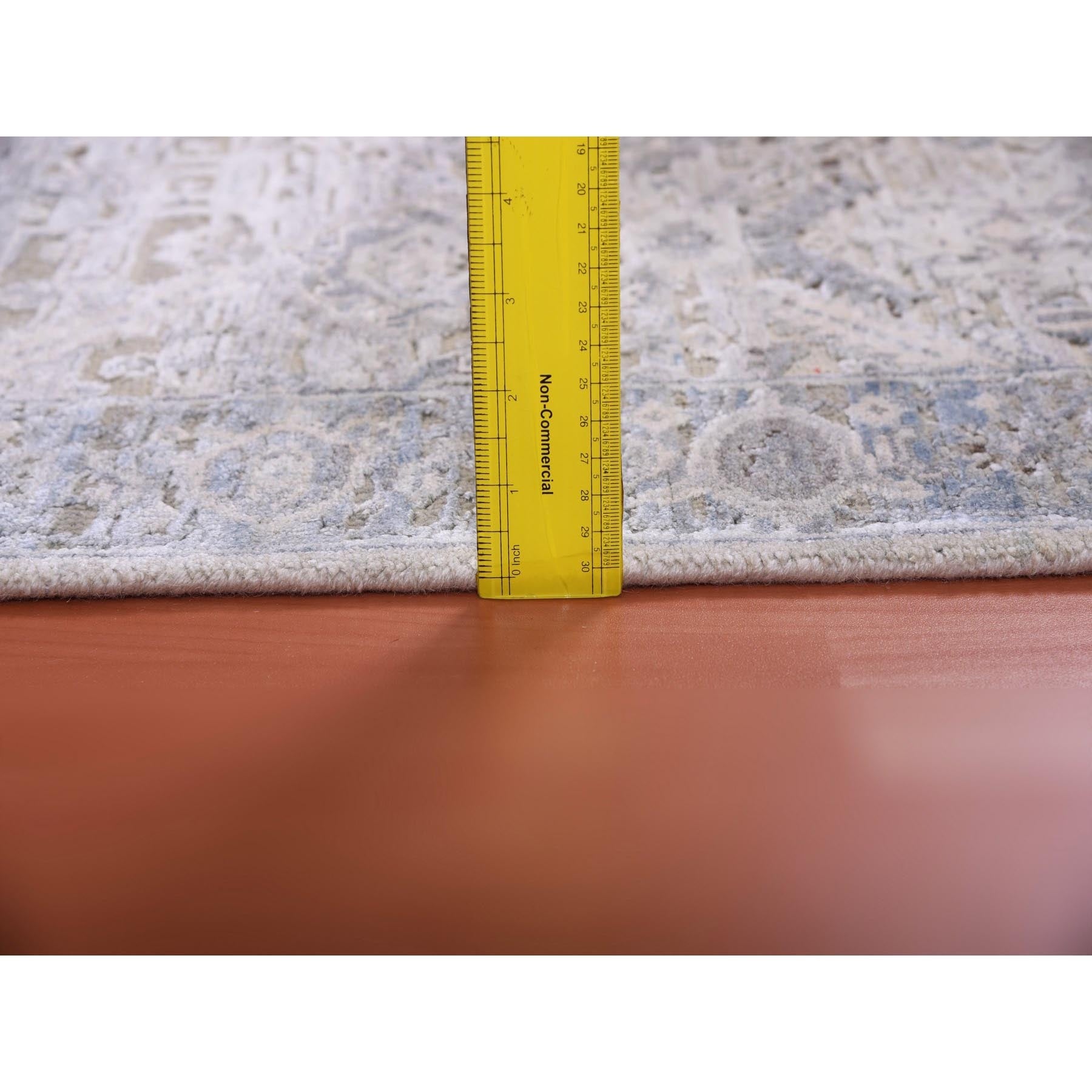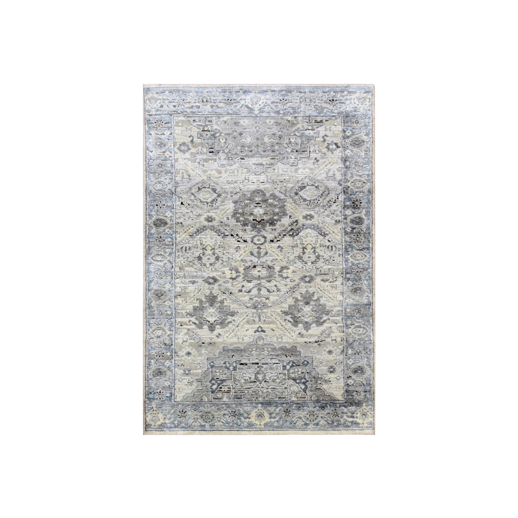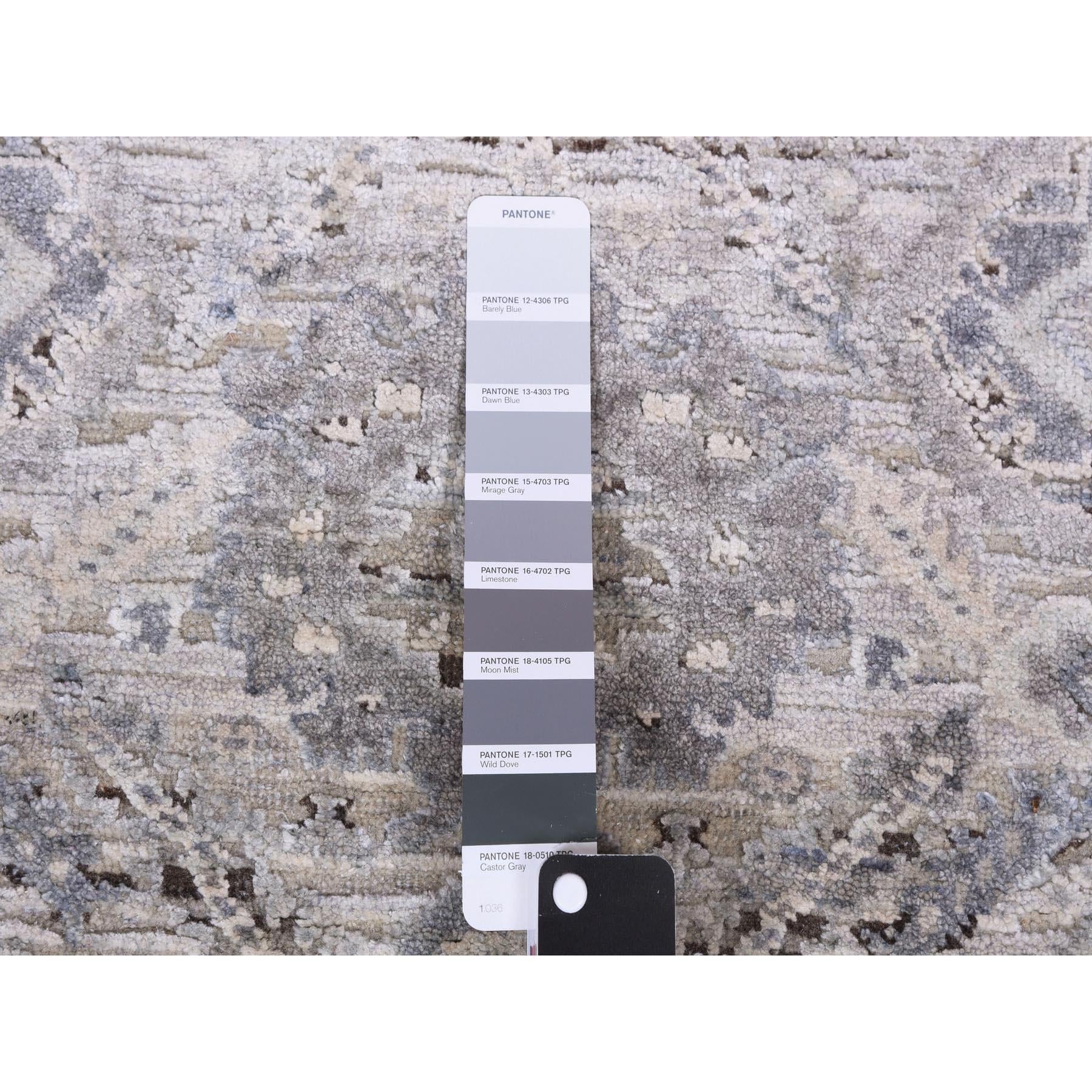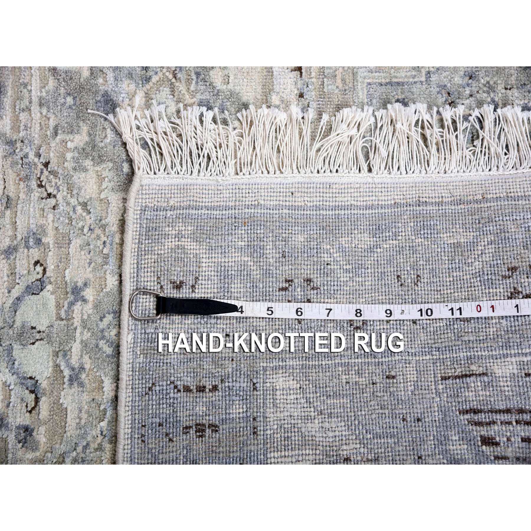3'x5'2" Gray, Hand Knotted Oushak With Geometric Motif, Pure Silk And Textured Wool, Oriental Rug FWR450222