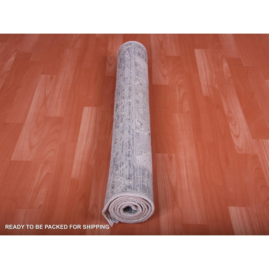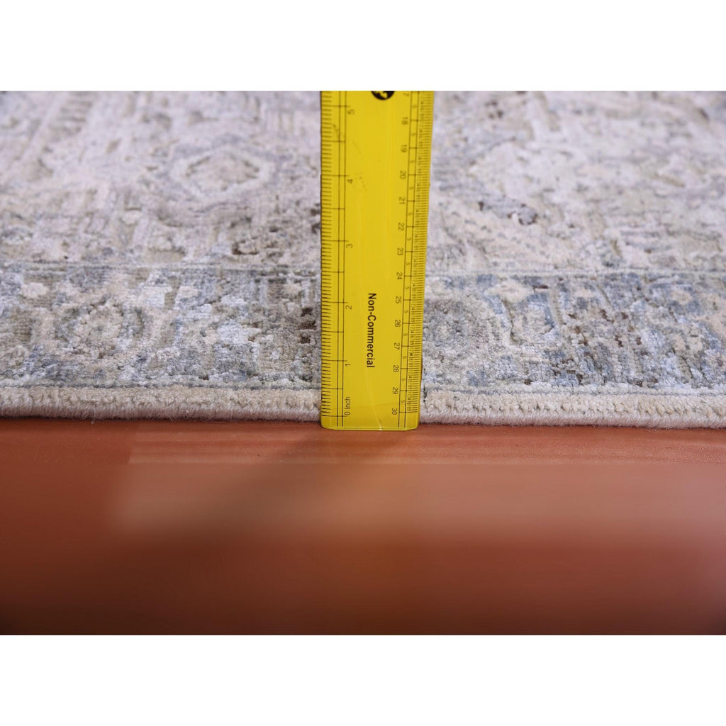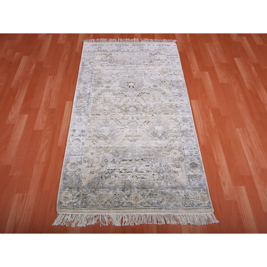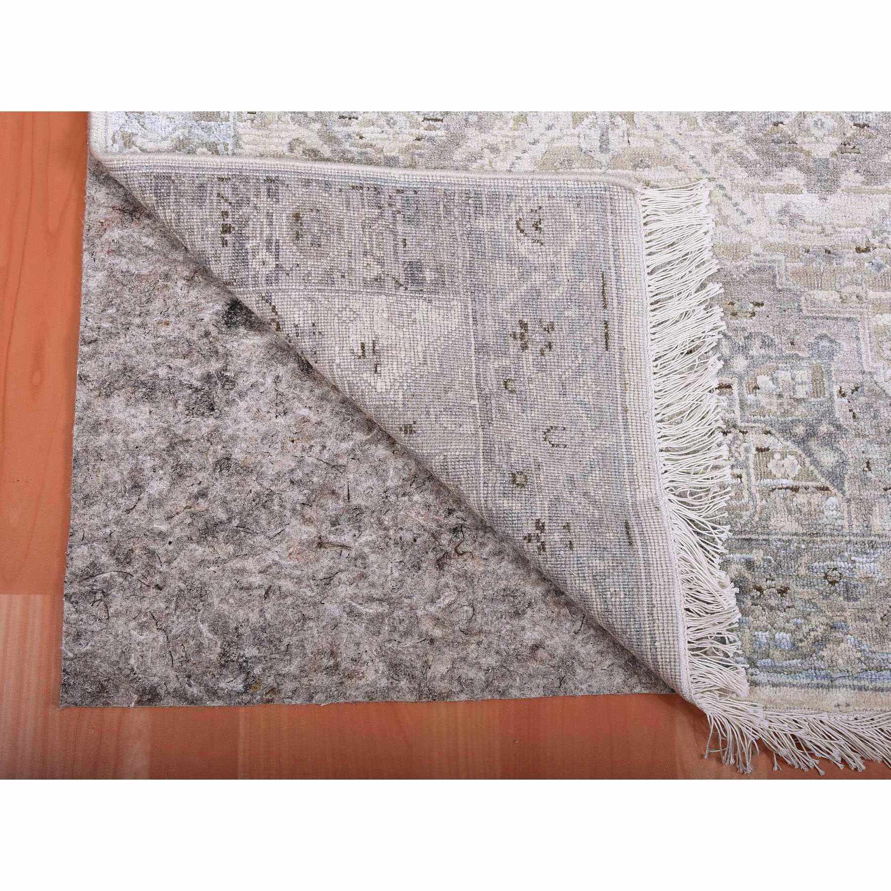 3'x5'2" Gray, Pure Silk And Textured Wool Hand Knotted, Oushak With Geometric Motif, Oriental Rug FWR450240