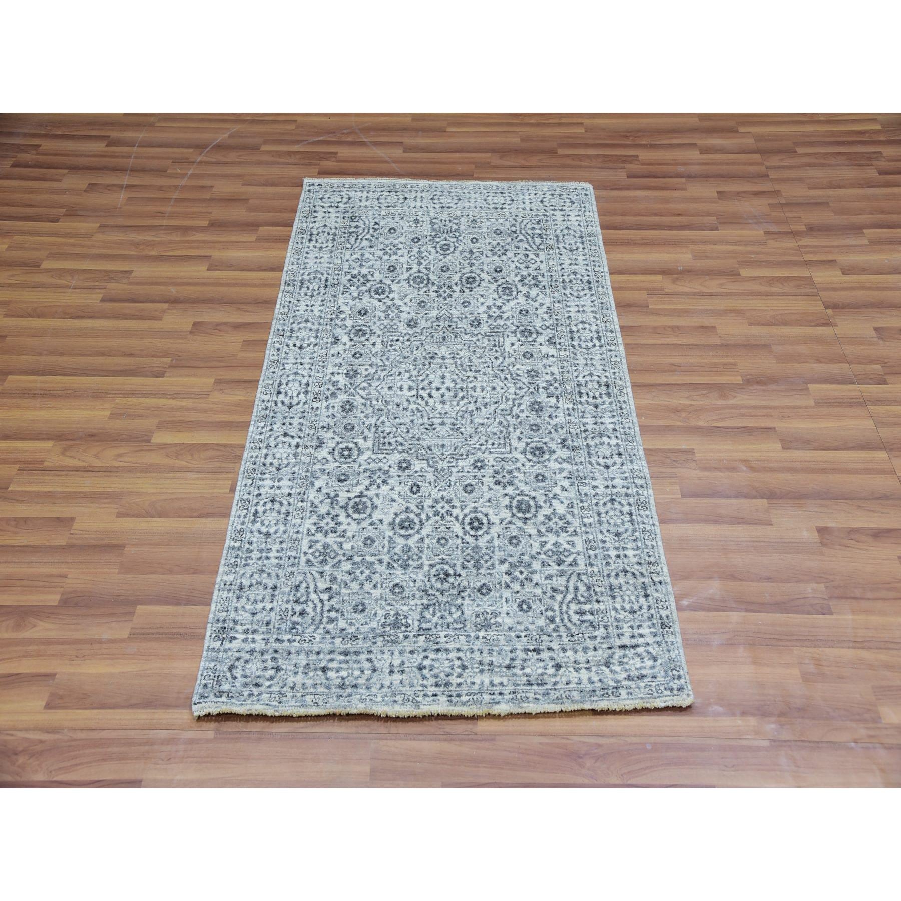 3'x5'3" Azureish White, Hand Knotted, Mamluk Design, Tone On Tone Design, Undyed 100% Wool, Oriental Rug FWR478860