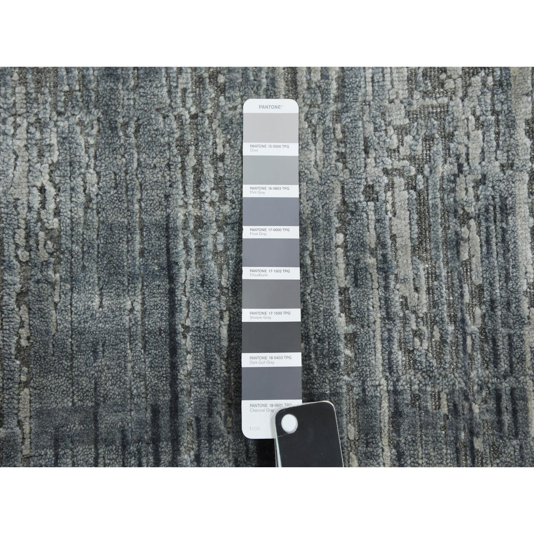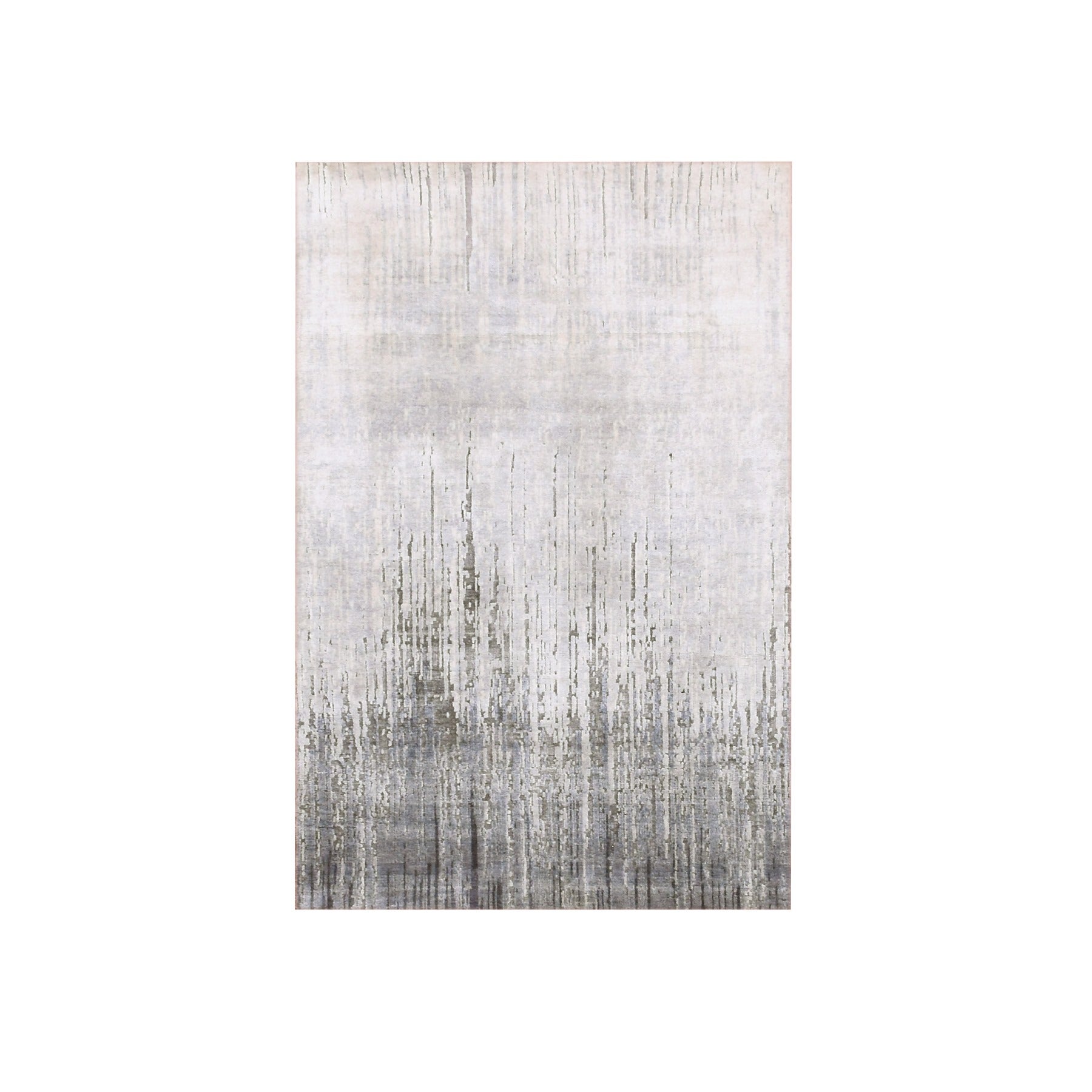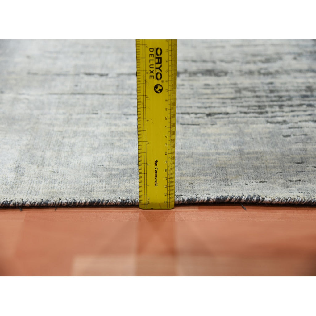 3'x5'3" Charcoal Gray, Hand Knotted Modern Vertical Ombre Design, Pure Silk With Textured Wool, Oriental Rug FWR451572