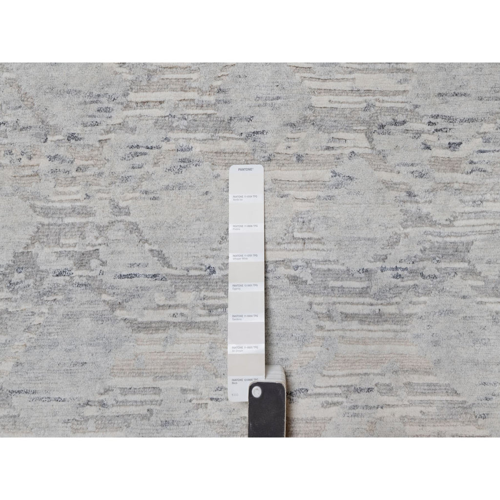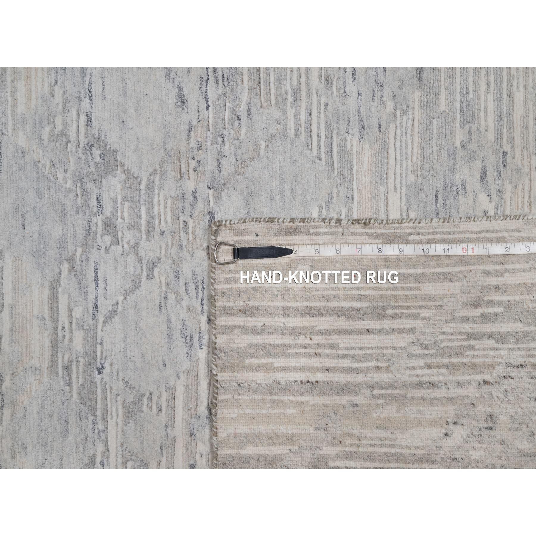 3'x5'3" Light Gray, Hand Knotted, Cut And Loop Pile, Modern Design, Hand Spun Undyed Natural Wool, Oriental Rug FWR547614