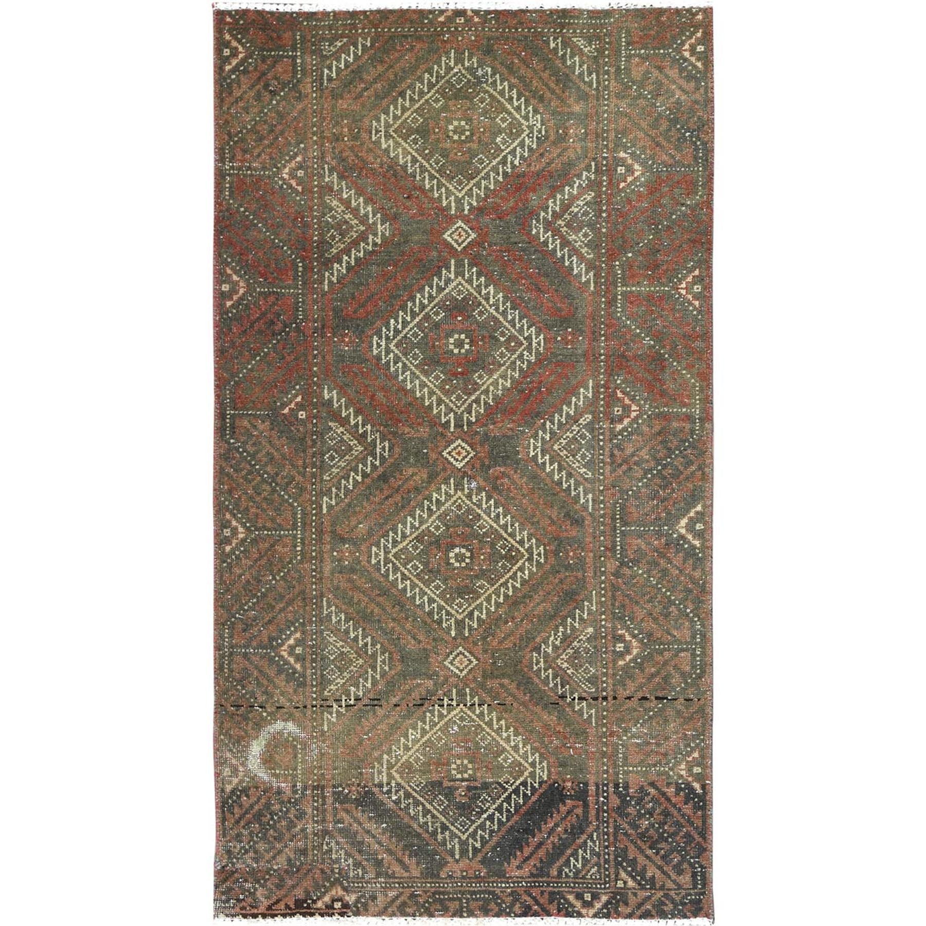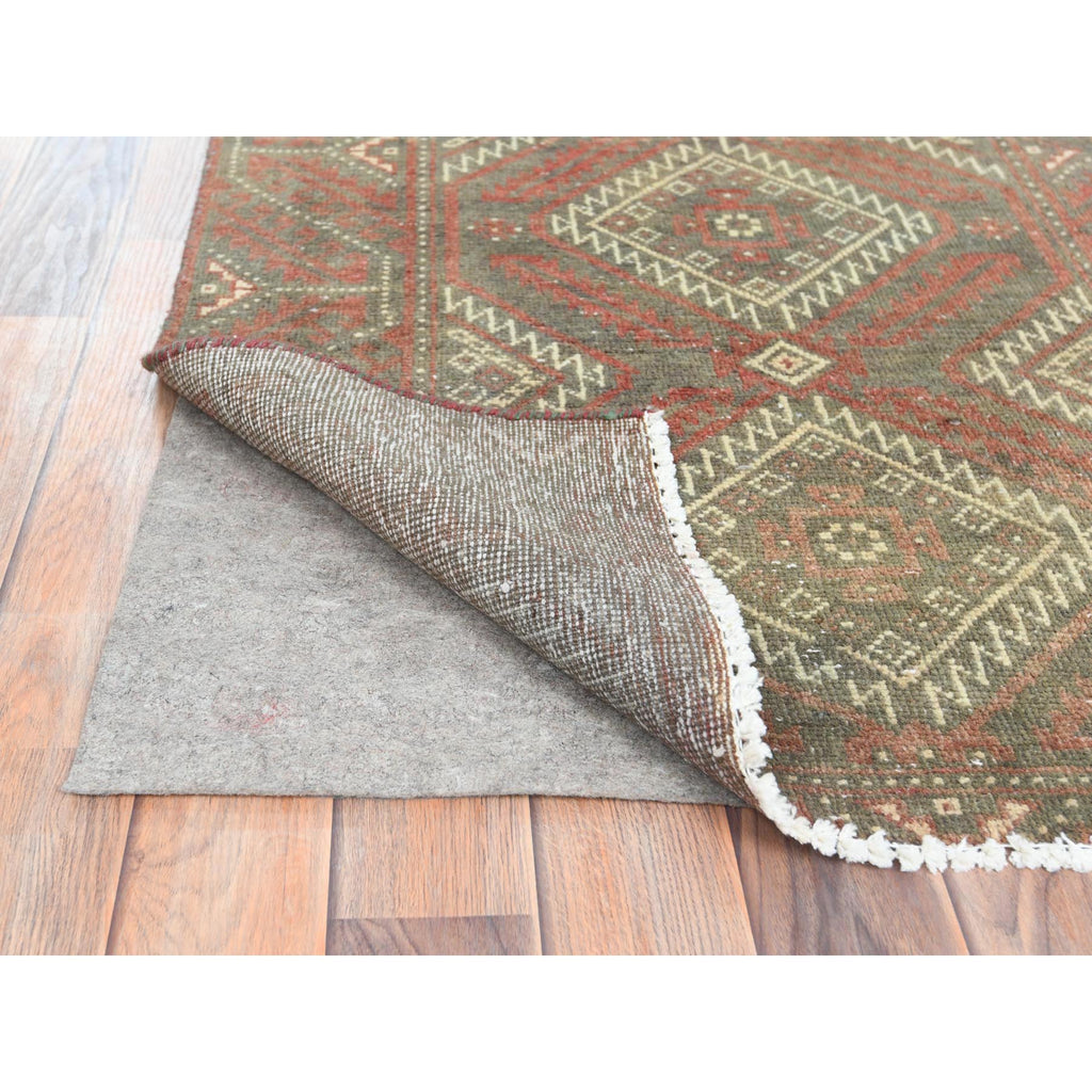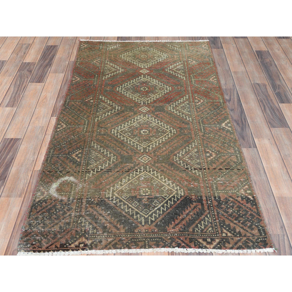3'x5'5" Burnt Umber Brown, Bohemian Vintage Persian Baluch, Sheared Low, Worn Wool, Hand Knotted Oriental Rug FWR496836