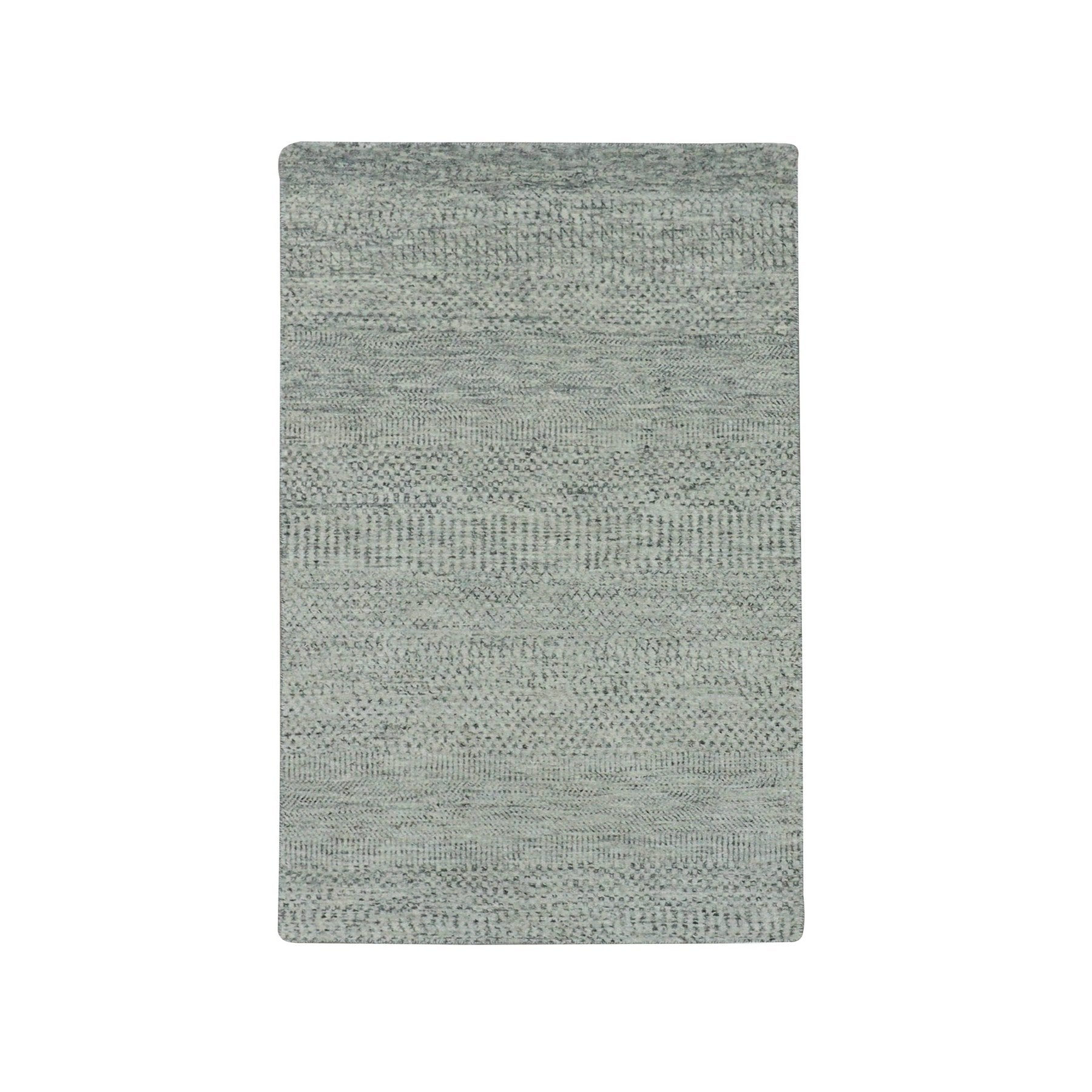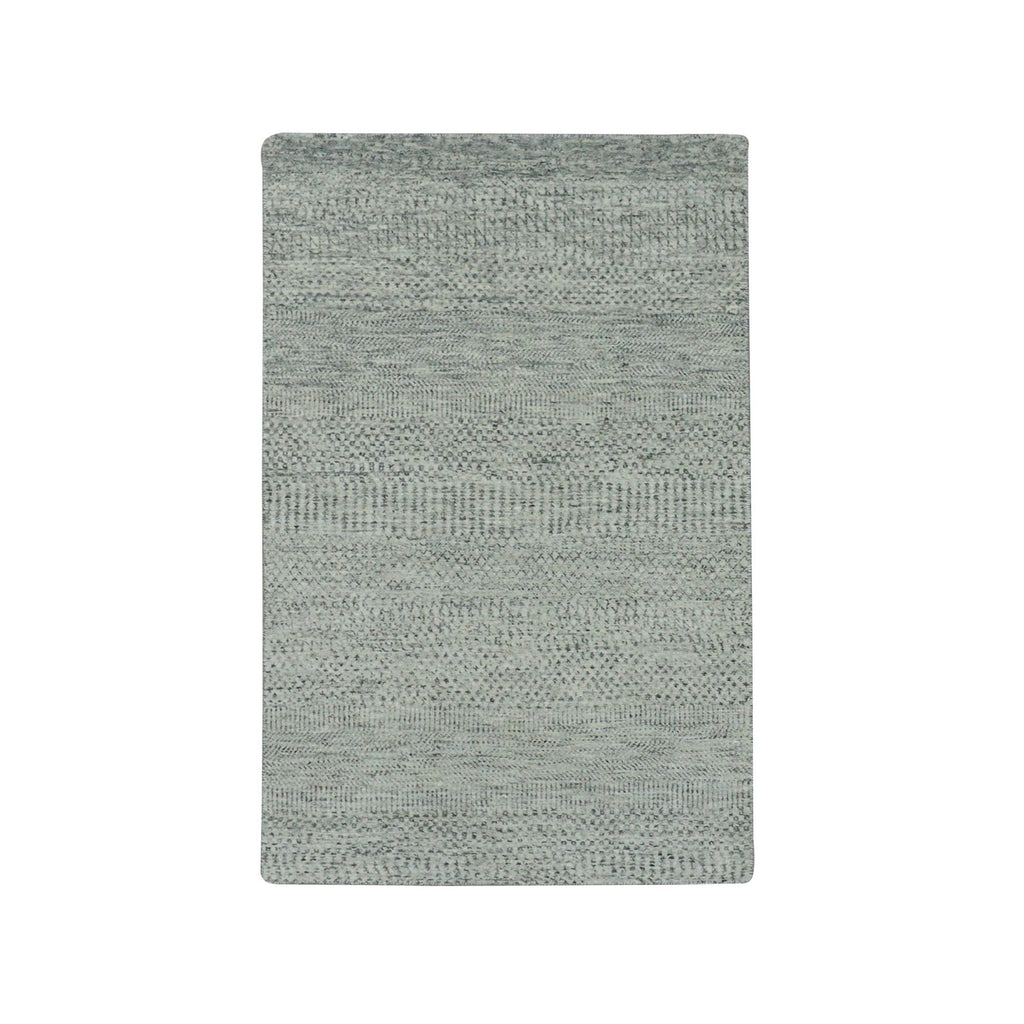 3'x5'6" Medium With Light Slate Gray, Hand Knotted, Modern Tone On Tone Grass Design, Undyed Pure Wool, Oriental Rug FWR478494