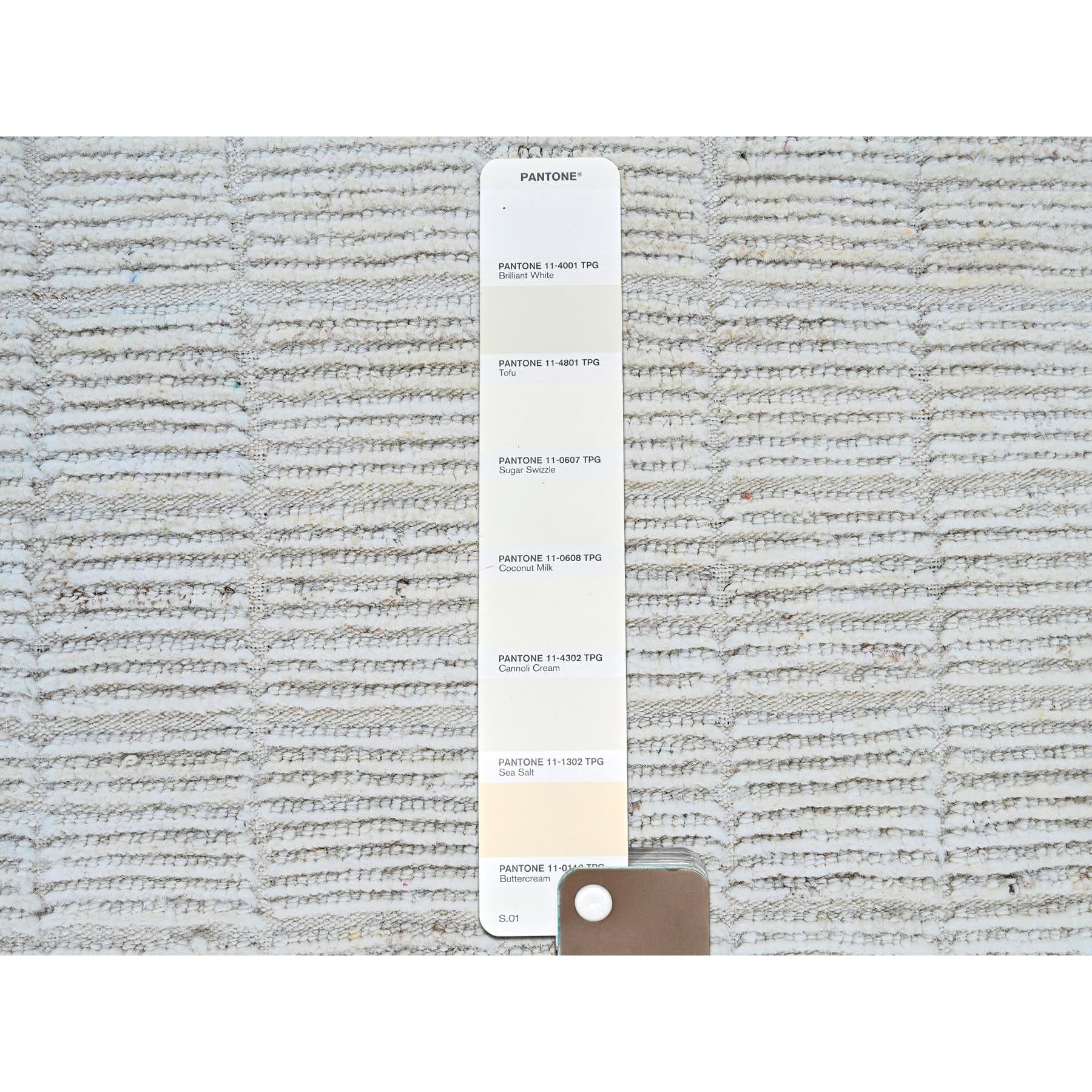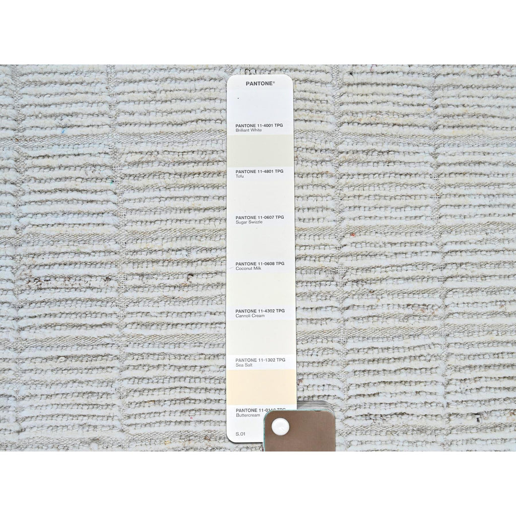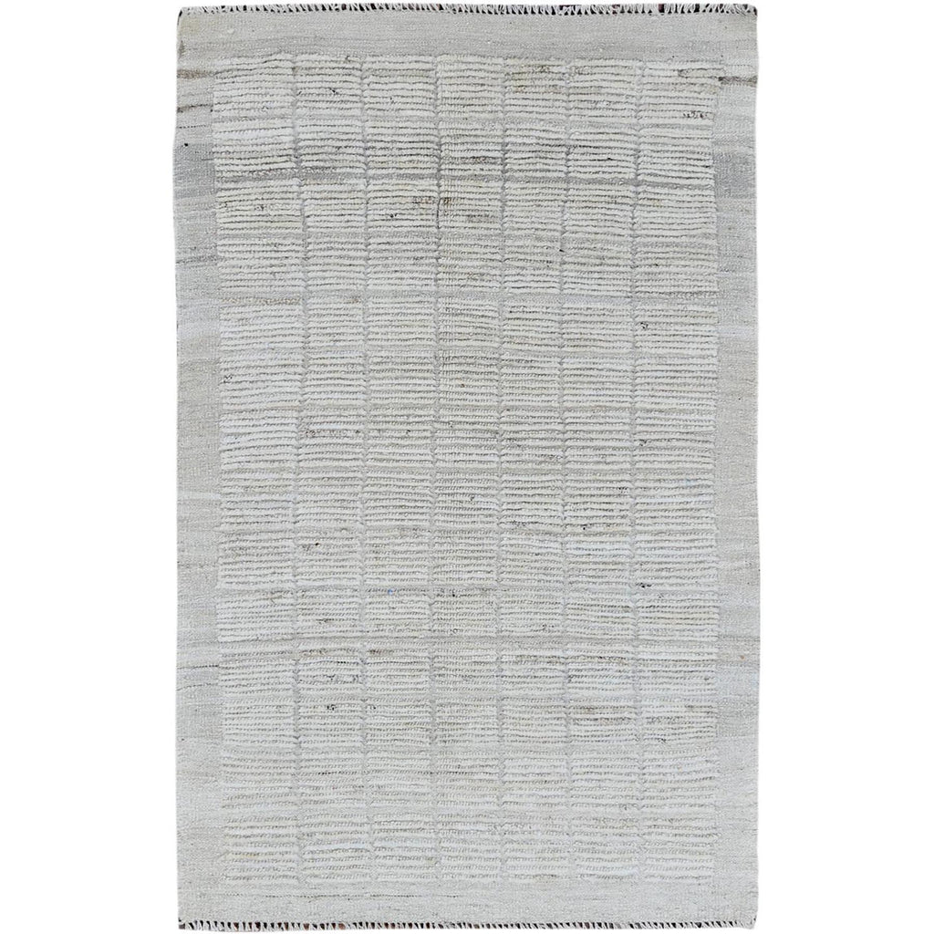 3'x5' Alabaster White, Moroccan Weave With Grid Design, Tone On Tone, Undyed Natural Wool, Textured Pile, Hand Knotted, Oriental Rug FWR8292