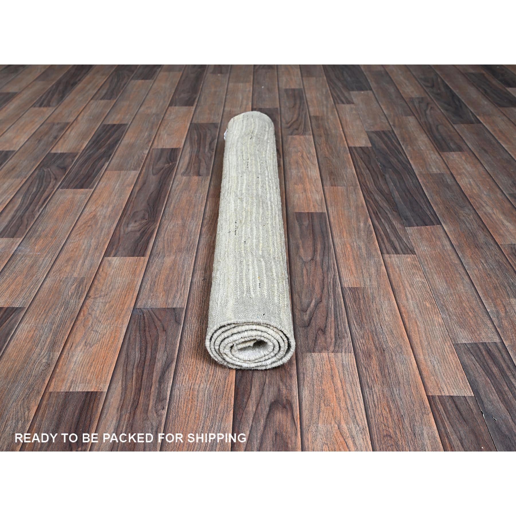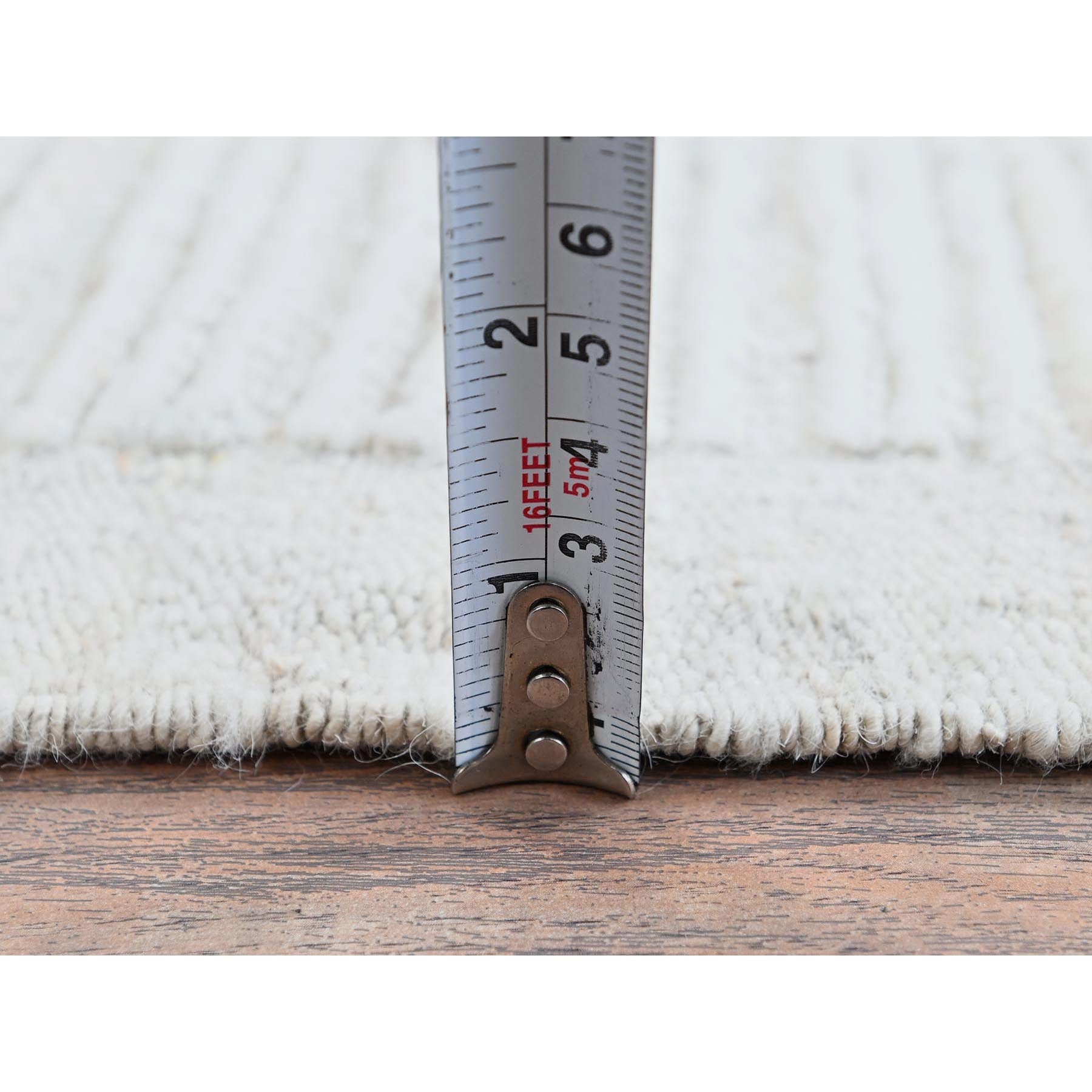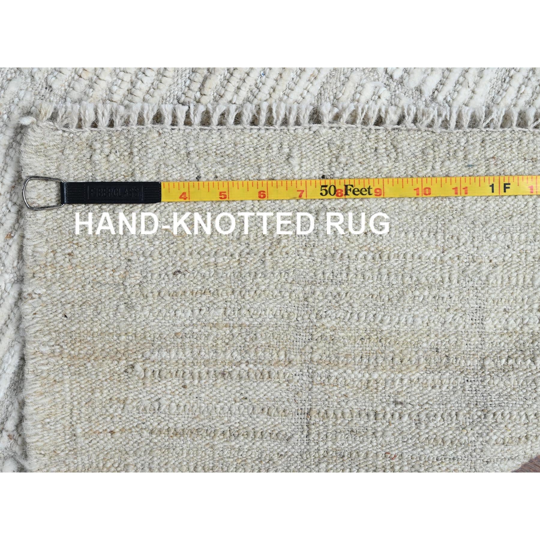 3'x5' Alabaster White, Moroccan Weave With Grid Design, Tone On Tone, Undyed Natural Wool, Textured Pile, Hand Knotted, Oriental Rug FWR8292