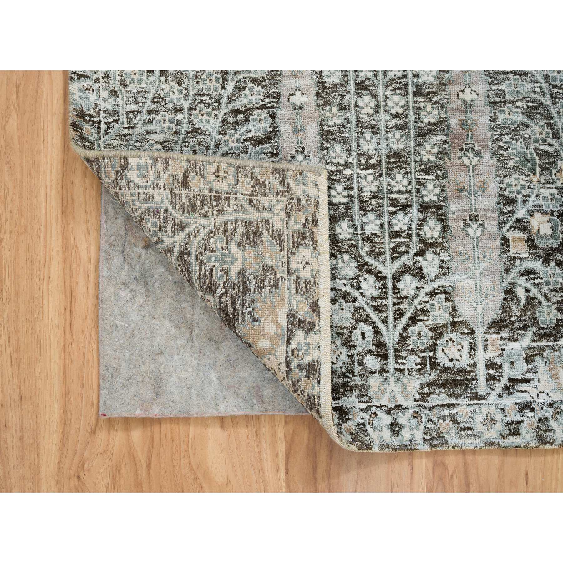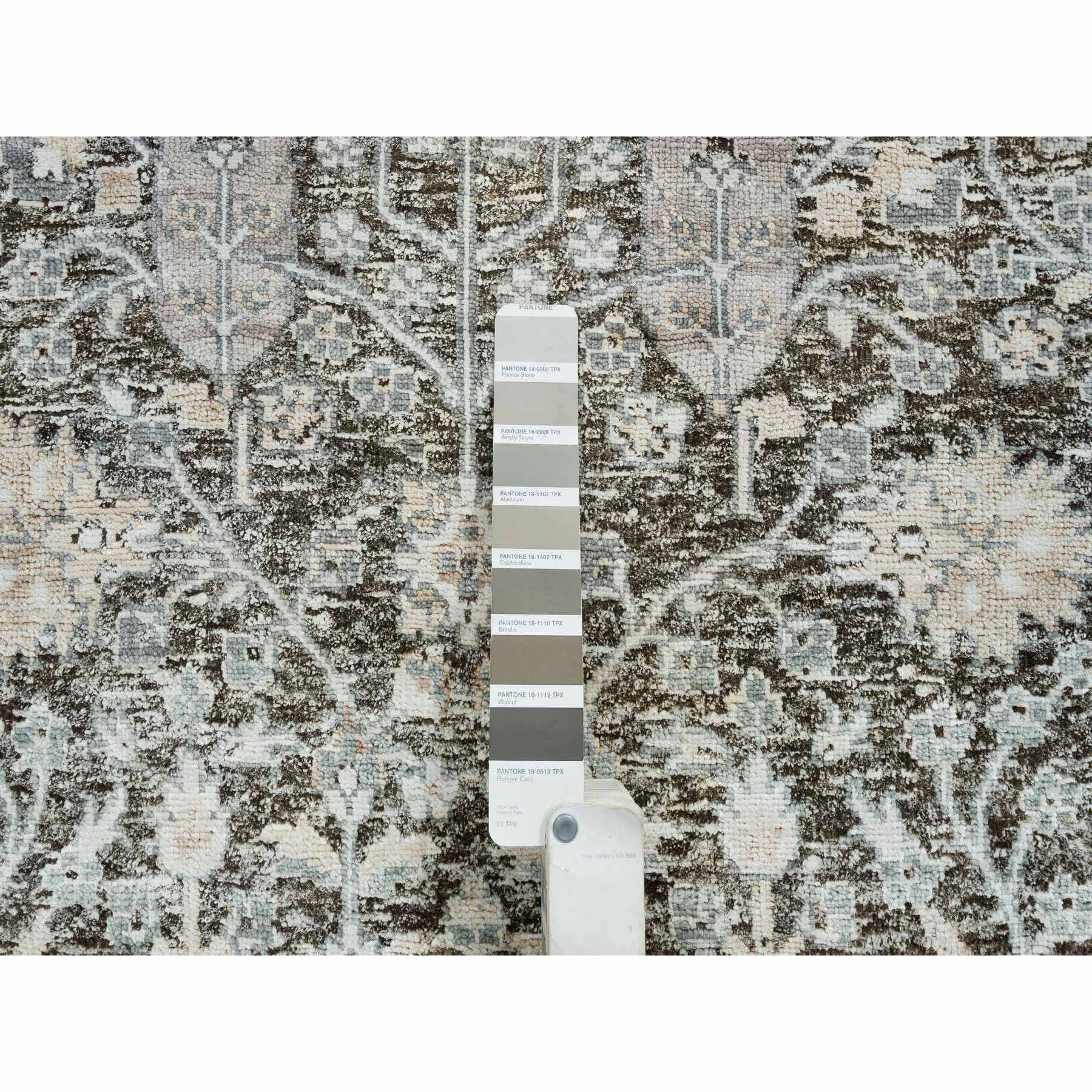 3'x5' Black And Silver, Willow And Cypress Tree Design, Silk With Textured Wool, Hand Knotted, Oriental Rug FWR391086
