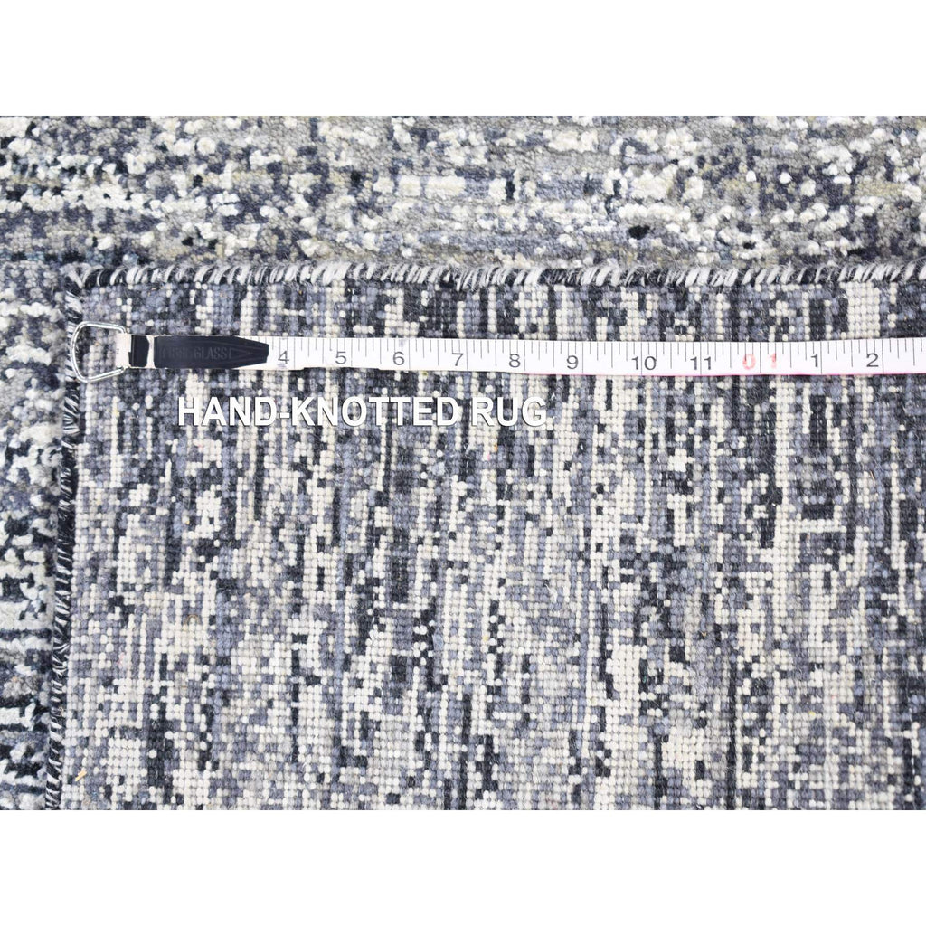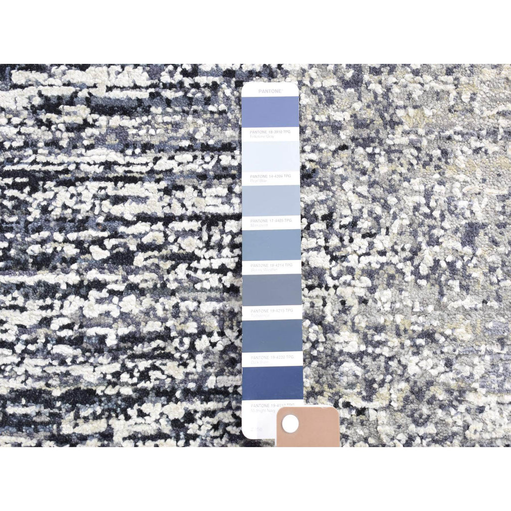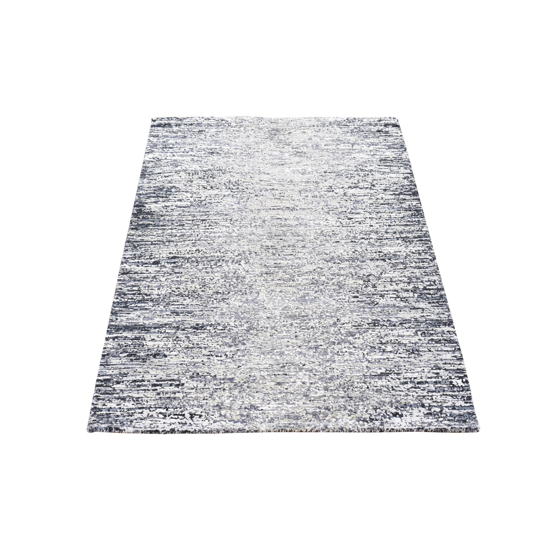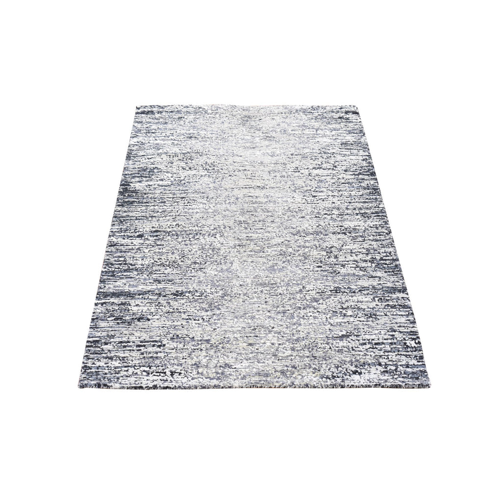 3'x5' Black Pure Silk And Wool Modern Design Hand Knotted Oriental Mat Rug FWR401802