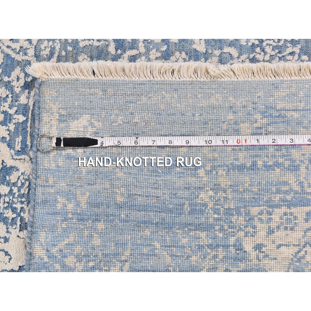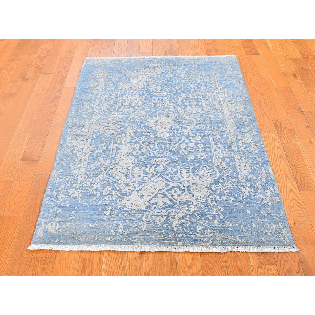 3'x5' Blue Broken Persian Design Wool And Pure Silk Hand Knotted Oriental Rug FWR357456
