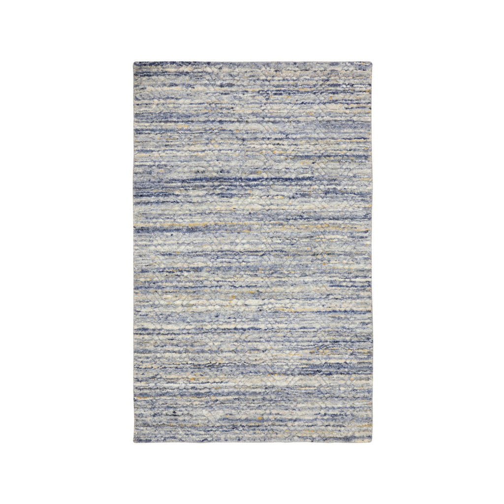 3'x5' Blue Variegated Textured Design Hand Loomed Pure Wool Modern Oriental Rug FWR350370