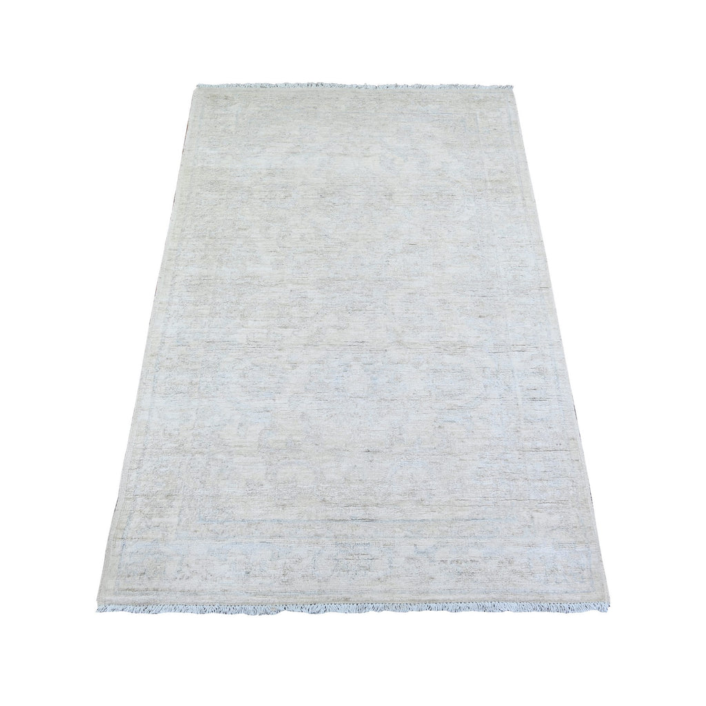 3'x5' Delicate White, 100% Wool, Hand Knotted, Washed Out Peshawar With Faded Design, Natural Dyes, Oriental Rug FWR447084