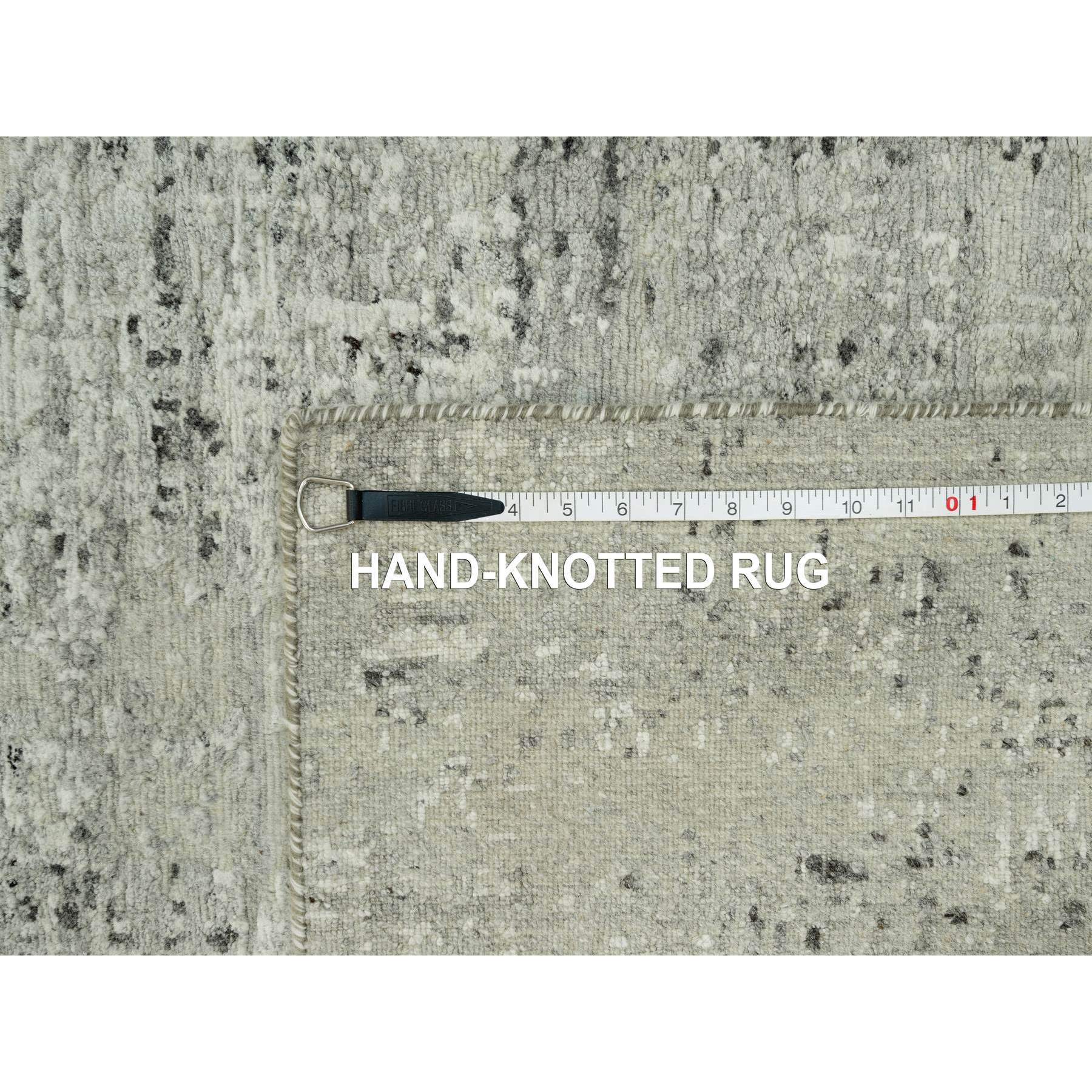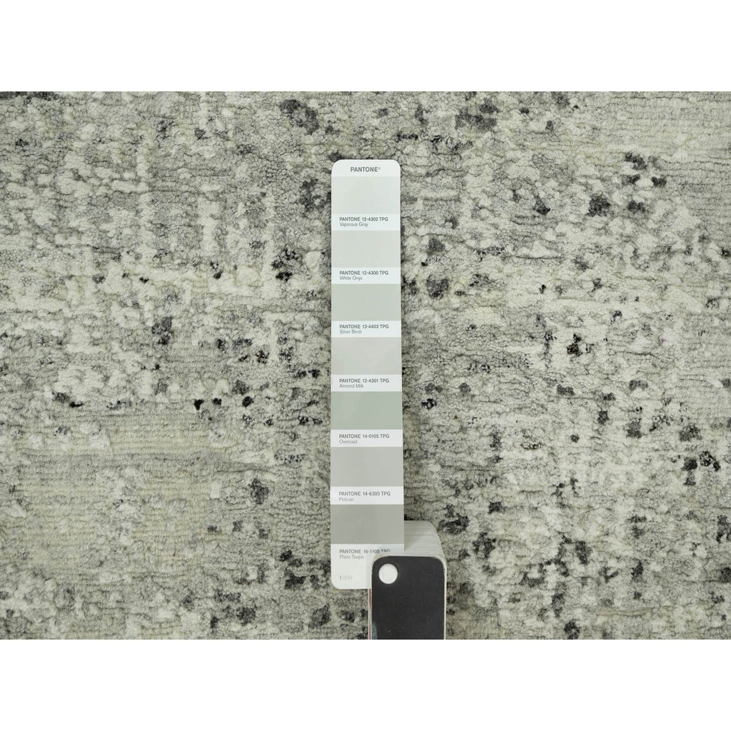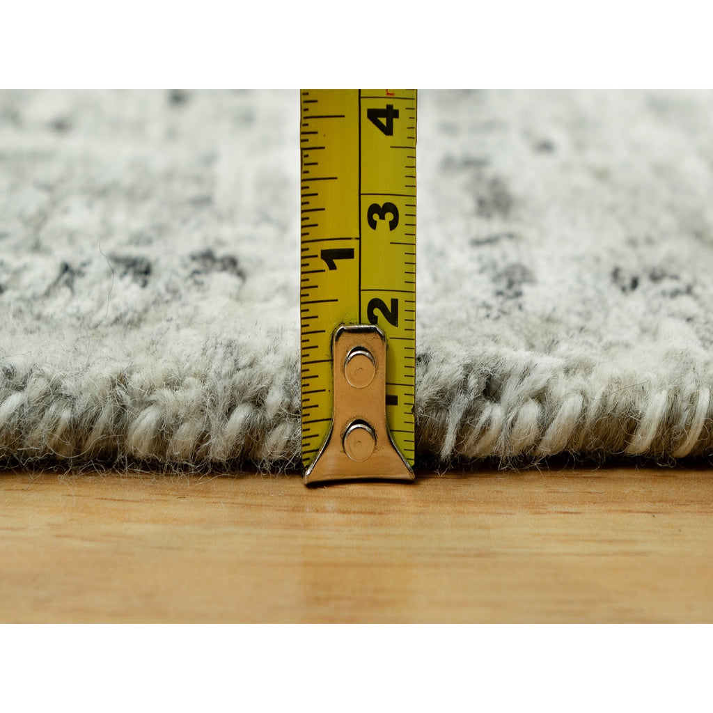 3'x5' Vaporous Gray, Undyed Pure Wool, Modern Hand Spun Design, Cut And Loop Pile, Hand Knotted Oriental Rug FWR542544
